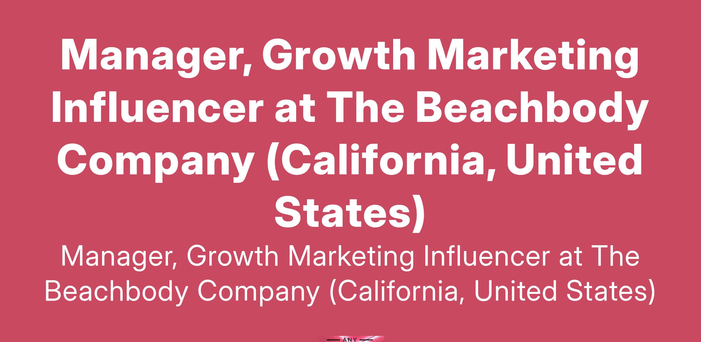 Manager, Growth Marketing Influencer at The Beachbody Company (California, United States)