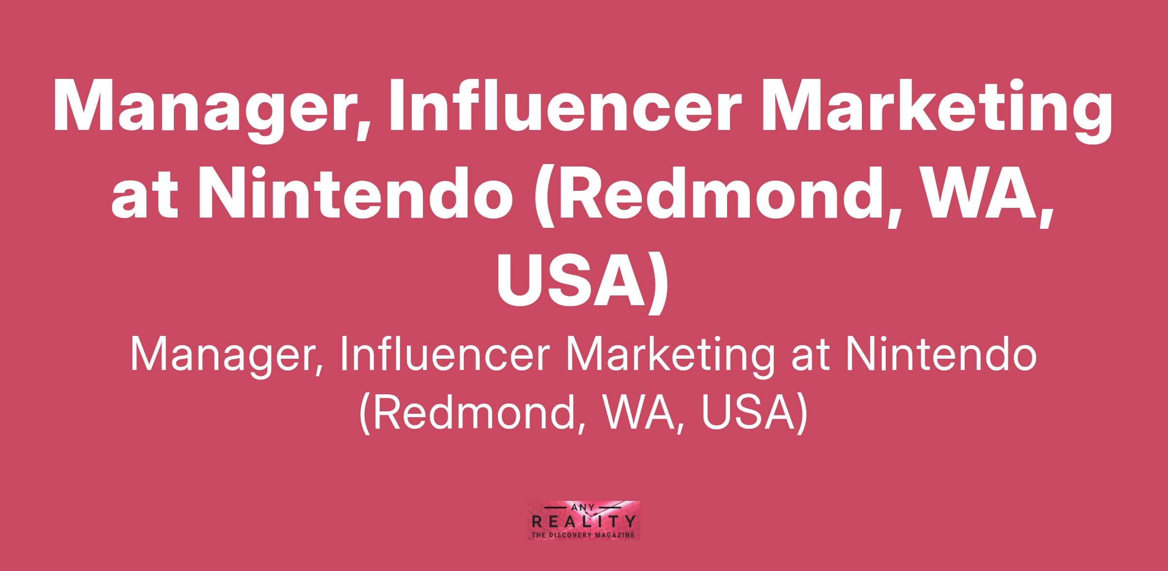 Manager, Influencer Marketing at Nintendo (Redmond, WA, USA)