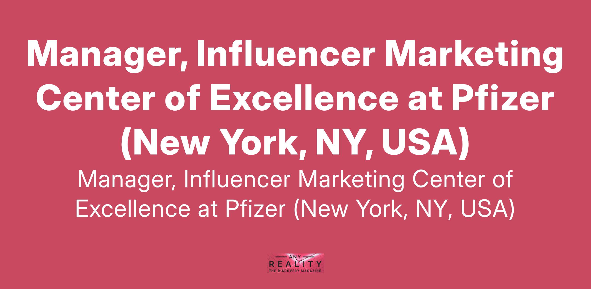 Manager, Influencer Marketing Center of Excellence at Pfizer (New York, NY, USA)