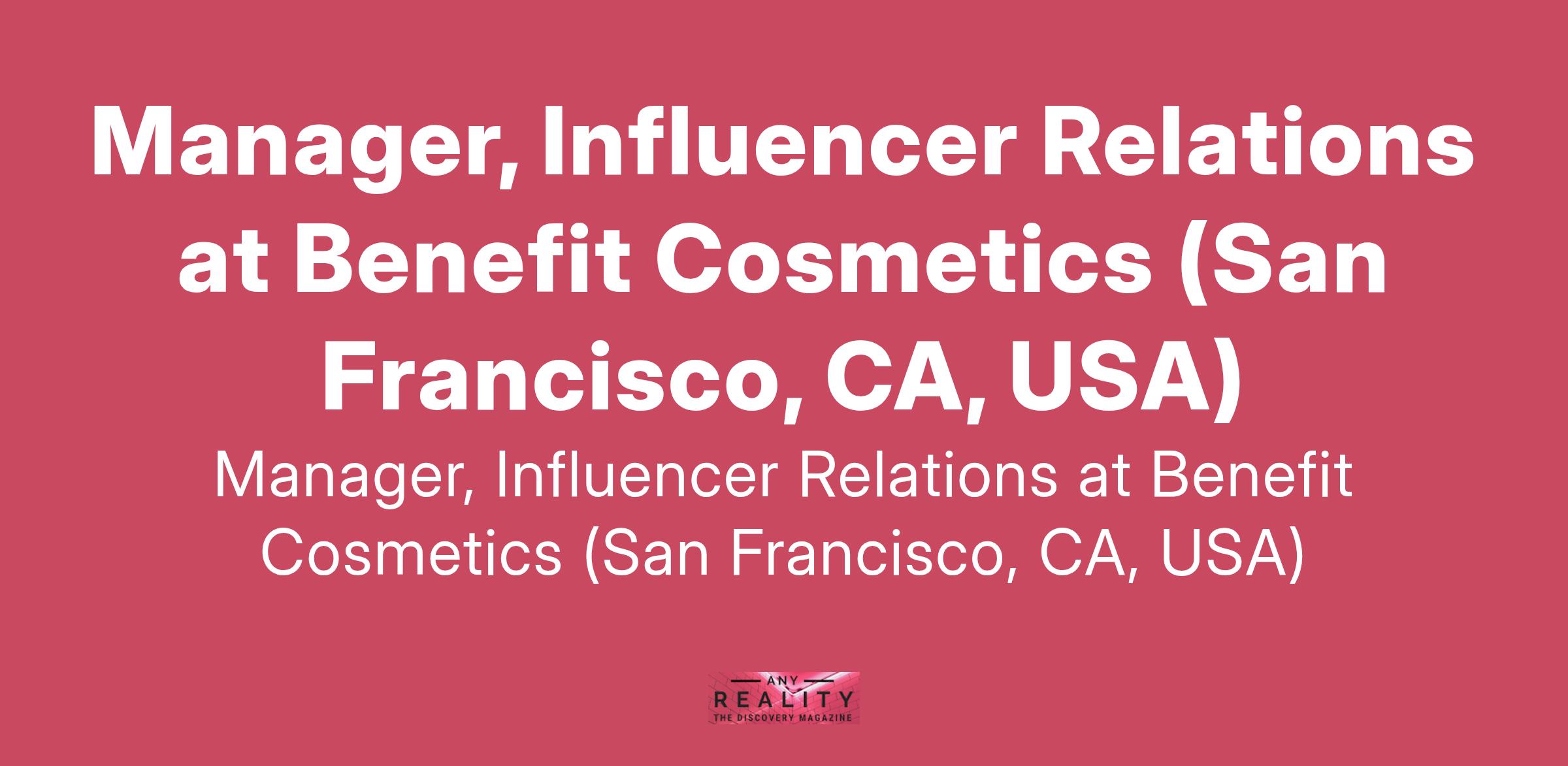 Manager, Influencer Relations at Benefit Cosmetics (San Francisco, CA, USA)