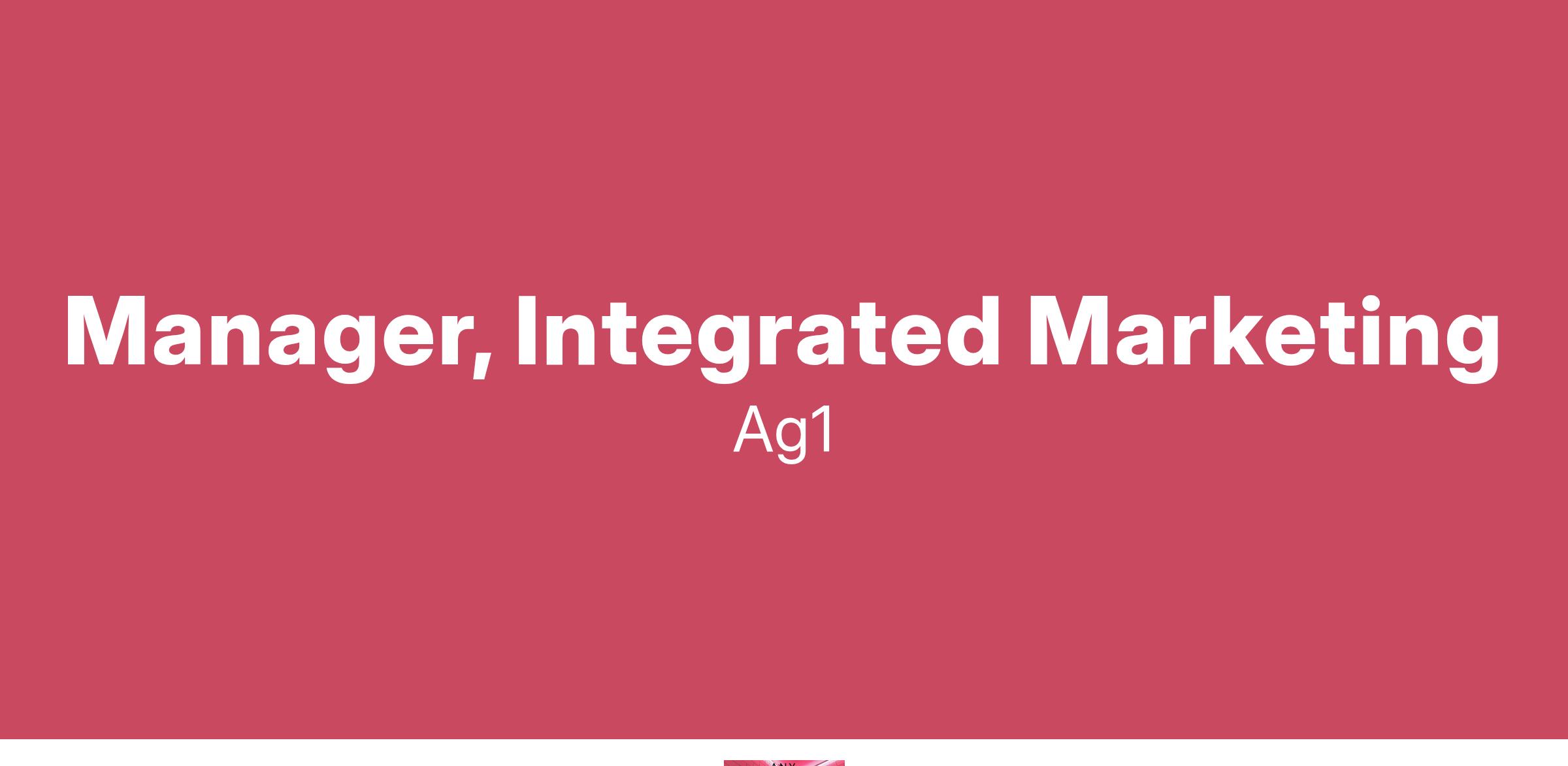 AG1 is seeking a passionate and strategic Manager, Integrated Marketing to help bring key moments and campaigns to life through our marketing ecosystem. This role will focus on driving and executing integrated marketing initiatives that help connect AG1 to key consumer moments and occasions. We’ll do this through a focus on storytelling, connecting workflows across teams, and leveraging insights to build content that resonates with customers throughout the year.