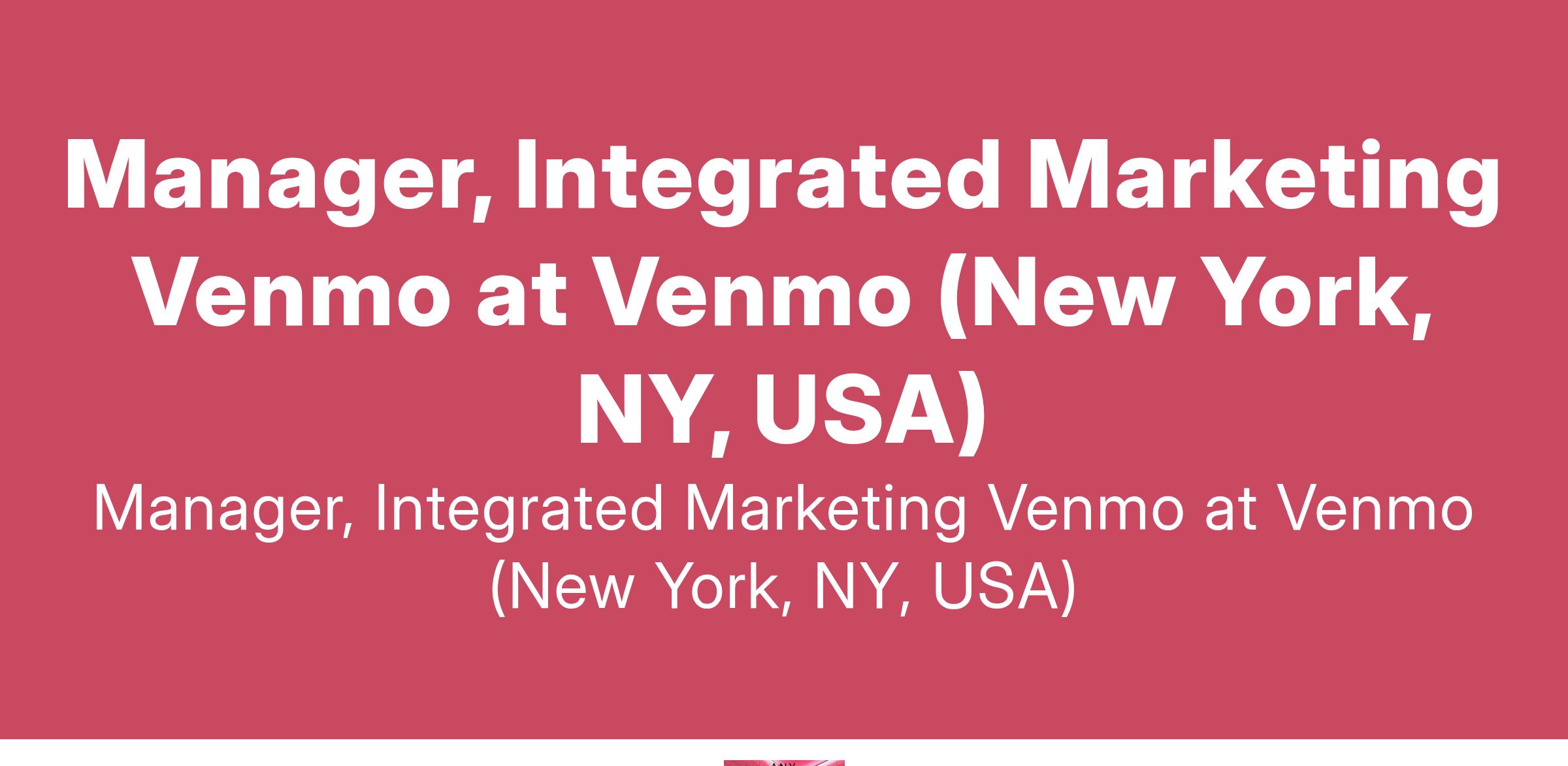 Manager, Integrated Marketing Venmo at Venmo (New York, NY, USA)