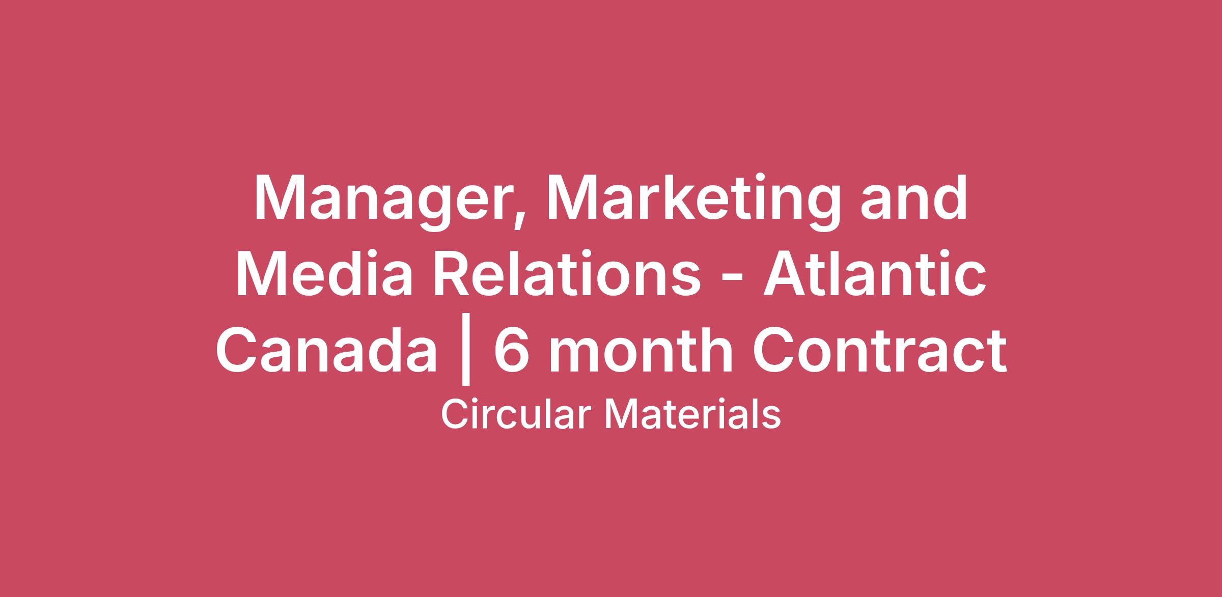OVERVIEW Reporting to the Director, Marketing, the Manager, Marketing and Media Relations – Atlantic Canada is responsible for hands-on, participative people leadership, and for supporting and implementing Circular Materials’ marketing and media relations strategies across the Atlantic region. By providing strategic marketing support and managing day-to-day media relations activities, this role contributes directly to Circular Materials’ goals and objectives while serving as an integral member of the marketing and communications team. Through professional level bilingualism in English and French, the position supports the execution of marketing initiatives and stakeholder and media engagement throughout Atlantic Canada. This is a contract position, salaried paid and requires residency in Atlantic Canada. RESPONSIBILITIES 1. Promotion and Education for Residents Plan, manage, develop, and distribute promotion and education materials for residents across Atlantic Canada on time and to budget. Manage residential advertising campaigns in collaboration with agencies, municipalities, and other key stakeholders. Implement quality management and continuous improvement practices to assess the effectiveness and efficiency of promotion and education initiatives. Monitor budget, results and recommend adjustments to improve reach, engagement, and impact. 2. Media Relations Act as a spokesperson for Circular Materials’ Atlantic programs, including participation in media interviews, sponsorships, and speaking engagements. Prepare and coordinate presentations, webinars, scripts, briefing notes, and related materials for media and public-facing activities. Support the development and execution of media relations plans aligned with overall communications objectives. Implement quality management and continuous improvement practices to evaluate the effectiveness of media relations activities. Support the development and management of communications materials for Atlantic Canada stakeholders. QUALIFICATIONS Education Post secondary education in Public Relations, Communications, Marketing or Journalism, or a combination of education and professional work experience is required. An equivalent combination of education, and experiences may be considered. Experience 8+ years of related and progressive job experience. 5+ years of experience as a people leader and manager. Demonstrated experience with marketing communications tools and protocols, including campaign development, tactical execution, visual design principles, and the use of social media platforms. Experience supporting public or government affairs initiatives and managing stakeholder relationships. Understanding of effective communications, public affairs, marketing, stakeholder relations, and reputation management practices. Knowledge/Competencies/Skills Preference will be given to candidates with a strong understanding of artificial intelligence (AI) concepts and the ability to communicate and apply AI technologies effectively within a business context. Ability to support and execute marketing strategies that align with broader organizational objectives, balancing long-term goals with short-term priorities. Strong relationship-building, collaboration, and teamwork skills with exacting standards of integrity, ethics, and professional conduct. Commitment to ensuring personal behaviour and team interactions reflect the values of Circular Materials. Well-developed issues management skills, including the ability to anticipate risks, identify emerging issues, and support the development and communication of practical solutions. Sound judgment and decision-making skills, strong analytical and problem-solving abilities, including evaluating alternative approaches and identifying creative solutions. Excellent written and verbal communication skills, with the ability to tailor messaging to diverse audiences. Ability to translate technical or complex information into clear, factual, and accessible messages. Strong stakeholder management capabilities. Adaptable, calm, and resilient, with the ability to function effectively in complex or high-pressure situations and respond constructively to unexpected challenges. WORKING CONDITIONS All CM employees work 40 hours per week, remotely from a Canadian home office environment. PAY TRANSPARENCY Expected Compensation: A contractor rate in the range of $43 to $48 per hour. The wage range listed complies with the Ontario Employment Standards Act and reflects a potential earnings range for this role. The actual wage offered will be determined within the range, and will depend on factors, such as the candidate’s unique qualifications, relevant experience, work location and expected contributions. Job Vacancy Reason This position is a new temporary position of 6-months. Artificial Intelligence AI is not used during our hiring processes. Applicant and Interviewee Communication We thank all applicants for their interest. However, only those under consideration will be contacted. Applicants who have been interviewed will be informed whether a hiring decision has been made within 45 days of their final interview. Record Retention Job posting records and associated application forms will be retained for at least three years. ABOUT CIRCULAR MATERIALS Circular Materials is a national not-for-profit producer responsibility organization (PRO) that supports producers in meeting their extended producer responsibility (EPR) obligations across Canada. Created by producers for producers, Circular Materials develops, implements, and supports effective and efficient recycling programs to advance innovation, deliver improved environmental outcomes and drive value across the recycling supply chain. Our full-service offerings include collection, management, promotion and education, and reporting. Together, we are advancing the circular economy where materials are collected, recycled, and can be returned to producers for use as recyc