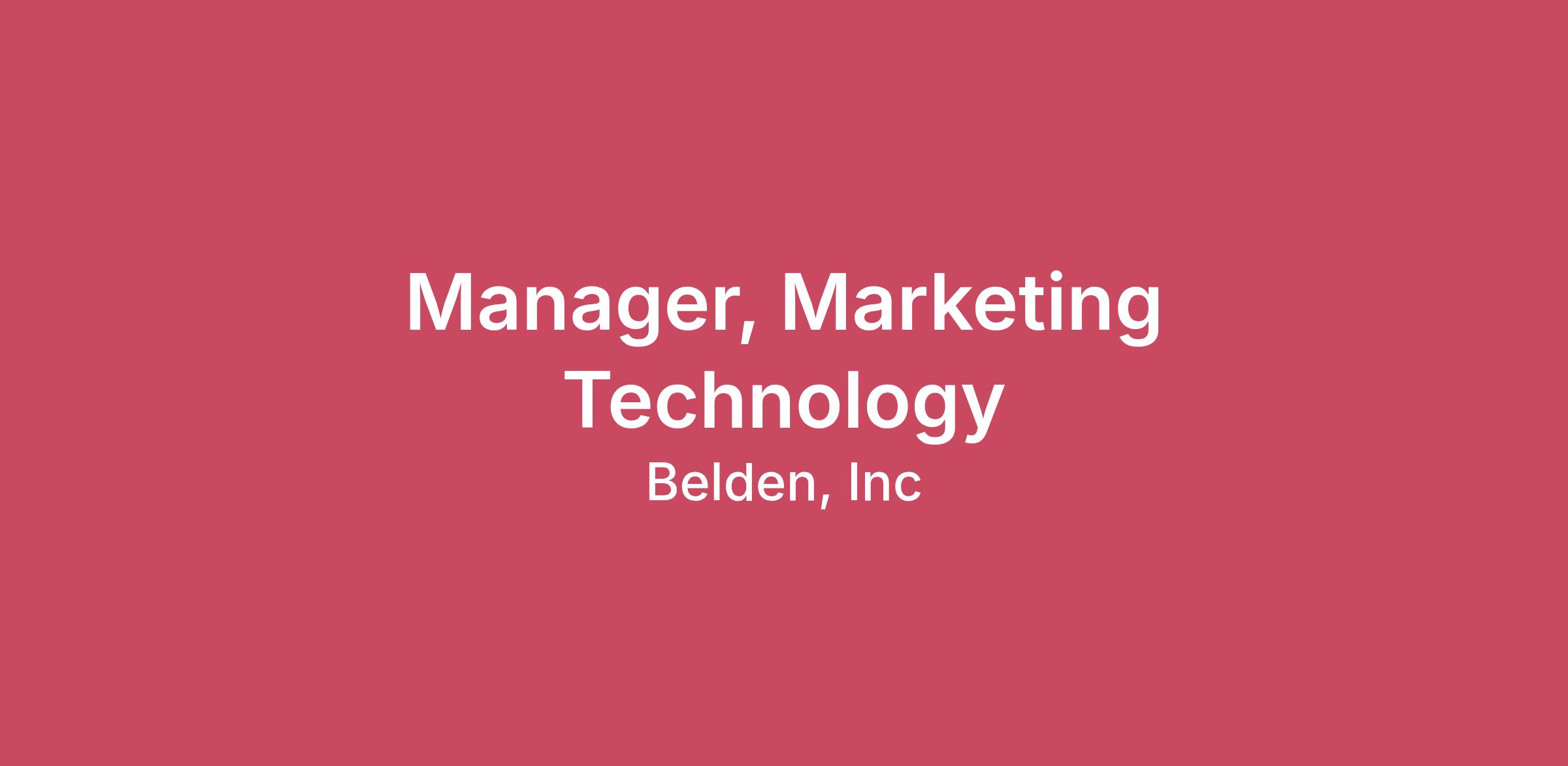 Belong. Believe. Be You. Belden. Propel your career surrounded by a diverse team of innovative, goal-oriented individuals who are pursuing the next generation of connectivity solutions. At Belden, you’ll participate in work that will challenge you and position you to excel. You’ll collaborate with colleagues from around the world, gaining exposure to a broad base of expertise and perspectives. Together, we’ll continue on a journey of innovation, creating a connected world and paving the way for automation. Join us and let’s build the future. This position can be Carmel/Indianapolis based or remote. Job Summary Belden’s Manager, Marketing Technology is a strategic and hands-on leader responsible for the overall health, optimization and evolution of the marketing technology stack. This role will report to the Sr. Director, Marketing Operations and be part of a newly formed Corporate Marketing Operations team, which serves as a meta-function enabling both global and regional marketing teams. Well-qualified candidates will have extensive familiarity with marketing technology and experience empowering teams to leverage tools across projects and processes. This role will optimize the adoption and use of existing technologies and platforms as well as identify new marketing technologies. This encompasses the evaluation and implementation of technology, as well as leading its adoption to ensure the marketing team operates with maximum efficiency and effectiveness. A key focus will be on leveraging technology, including Artificial Intelligence (AI), to enhance marketing processes and foster innovation across the organization. This individual will act as the primary Subject Matter Expert (SME) for all marketing technology, bridging the gap between marketing needs and technical solutions. You’ll make an impact in the following ways: Marketing Technology Strategy: Champion the entire portfolio of marketing technology, ensuring the optimal performance, integration and alignment with marketing and business objectives. Technology may include CRM (Customer Relationship Management), MAP (Marketing Automation Platform), DAM (Digital Asset Management), Project and Workflow Management, etc. Proactively identify marketing team needs, research potential solutions and build compelling business cases for new system acquisitions or technology enhancements. Collaborate with peer teams such as IT and Digital Transformation on vendor assessments, selection decisions, contract negotiations and successful implementation of new marketing technologies. Technology Implementation & Adoption: Lead the post-implementation phase for all marketing technologies, including developing and delivering comprehensive enablement programs, training materials and ongoing support to ensure high adoption rates across the marketing team. Act as the primary Subject Matter Expert (SME) for all marketing technology, providing guidance, troubleshooting and best practices to users. Technology-Driven Process Optimization: Champion the strategic use of technology within the marketing department, actively pushing the team to leverage technology for increased efficiency, automation and improved workflows. Design and establish robust marketing processes that seamlessly integrate technology to streamline operations and enhance productivity. Continuously explore new and emerging marketing technologies to identify opportunities for competitive advantage and innovation. AI Integration & Leadership: Lead marketing’s AI Task Force, driving the overall AI strategy and roadmap for marketing. Lead initiatives to build and integrate Artificial Intelligence capabilities directly into core marketing processes and workflows. Aid the marketing team in understanding and implementing AI solutions within their respective processes and workflows, fostering a culture of AI adoption. Marketing Data Governance & Quality: Establish and enforce robust governance policies for marketing data to ensure its accuracy, consistency and overall quality across all tools and technologies. Collaborate closely with other departments (e.g., Sales, IT, Digital Transformation, Product & Solution Development) to ensure high-quality data inputs, seamless data flow and effective data management practices across the organization. Continuous Improvement: Contribute to a culture of continuous improvement, innovation and learning within the marketing department. Stay abreast of industry trends, best practices and advancements in marketing technology, AI and data governance. Required Skills & Experience Bachelor’s degree or higher in Marketing, Business Administration, Communications or Advertising (with a digital marketing focus), Management Information Systems or a similar field. 5-7+ years of relevant work experience within digital marketing or marketing technology Deep marketing technology knowledge, including implementation, data integrity and lead processes. Knowledge of and curiosity for emerging technologies, as well as how to gain efficiencies through integration of technology into critical marketing processes. Ability to train colleagues and nontechnical peers on technologies and tools to improve adoption and use of tools. Understanding of regulatory laws and policies. Excellent communication and interpersonal skills. Proven ability to work cross-functionally and leverage technology to improve processes in a global, matrixed environment. Marketing-related certifications and system experience, such as Salesforce (Pardot), Account-based Marketing (6Sense), Google Analytics and other certifications. Applicants can expect a base compensation range of $101,200- $152,100 annually, plus benefits and additional incentives based on the level of the role. This is the reasonable estimate that Belden believes it might pay for this job based on applicable circumstances at the time of posting. Belden may ultimately pay more or less than the posted range as permitted by law, and com