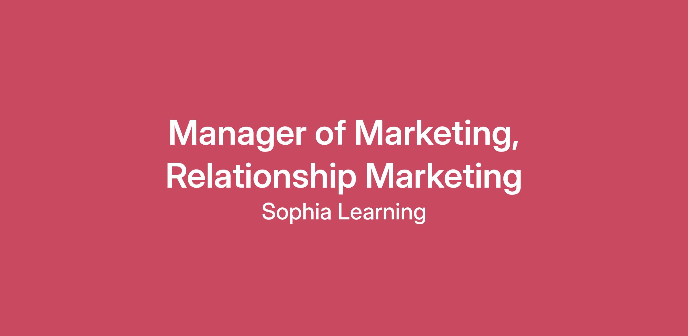 Sophia Learning is an industry-leading provider of low-cost, self-paced online general education courses that are transferable for college credit. We are looking for a strategic and data-driven Manager of Marketing, Relationship Marketing to join the Sophia marketing team. The role of Manager of Marketing, Relationship Marketing will be responsible for owning the development and execution of the strategic roadmap for prospect conversion marketing campaigns and automated programs. When needed, this role will also support other teams across the Sophia Learning unit to create consistent omnichannel messaging to learners as well. Reporting to the Director of Marketing, Sophia, this role will manage the strategy, planning, testing and analyzing of triggered, automated and ad hoc campaigns to support marketing channels across B2C, B2U (university partners ), B2K12 (high school audience), and other audiences as assigned. The role should integrate with our brand work, organic social, and paid channels to improve the prospect experience and drive conversion. The right person for this role is innately curious, analytical, detail-oriented, and enjoys problem solving. They should thrive in a fast-paced, entrepreneurial company.Essential Duties & Responsibilities:Develop plans with clear strategic objectives and thoughtful measures of success. Supervise the email marketing coordinator and ensure campaigns are built and executed correctly. Leverage data analytics to identify key business performance insights and trends; communicate findings to internal stakeholders and business leaders across the organization.Partner with Learner Facing, Product, Brand Marketing, Marketing Analytics, Reporting, and IT teams to build strategic and tactical roadmaps and deliver business objectives. Participate in cross functional teams to support new and existing 1:1 programs to ensure strategic alignment. Develop and drive out ongoing optimization testing across areas of responsibility. Understand and stay ahead of privacy law and regulatory impact to this area of work. Partner with IT implementation team to build roadmap to unlock additional capabilities to leverage across campaigns (primarily in Salesforce Marketing Cloud). Draft creative briefs and work with internal and external creative teams to execute creative to leverage across campaigns Job Skills:Strong proficiency with marketing automation and relationship / conversion marketing best practices, particularly in email and SMS channels. Strong experience implementing A/B and multi-variant testing and driving from strategy to execution. Proficiency in Salesforce Marketing Cloud (or other CRM, though Salesforce is strongly preferred) and enterprise email service providers. Experience with customer analytics and taking a data driven approach to campaigns (particularly in email and SMS). Self-motivated with the ability to multi-task many projects simultaneously in a fast-paced environment, but knows when to ask for clarity and how to escalate concerns appropriately. Strong written and verbal communication skills Ability to analyze and present data and findings clearly, concisely, and accurately, and be able to draw meaningful conclusions and recommendations for action Experience in optimizing landing pages and user funnels. Effectively communicate, both up and down the management chain. Work Experience:6+ years of marketing experience 3+ years of marketing automation platforms, ideally Salesforce or Salesforce Marketing Cloud 2+ years of leadership experience in the areas listed above Experience in working on SaaS or edtech products is preferred, but not required B2C digital marketing experience required. Education:Bachelor’s degree required Other:Must be able to travel occasionally should a business need arise. For most roles travel would not be common. Travel may involve plane, car or metro. In accordance with ADA policies, reasonable accommodations regarding travel limitations can be provided. Travel will be more common for roles such as Account Executives (25 - 50%), senior leaders (10 – 20%) or Capella Core Faculty (5 – 10%). Ability to work onsite in Corporate or Campus location (in a typical office environment) may be required based on role. If so, this would include being mobile within the office, including movement from floor-to-floor using elevators or stairs. If offsite or hybrid role, must have access to work in setting which enables meeting all requirements of the role (including privacy, reliable internet access, phone, ability to video conference, etc.) at a remote location. Faculty and Federal Work Study roles require access to work in setting which enables meeting all requirements of the role (including computer, privacy, reliable internet access, phone, ability to video conference, etc.) at a remote location. This role may require lifting, however reasonable accommodations will be provided in accordance with our ADA policies.Must be able to meet critical thinking and problem solving aspects aligned to job duties, as well as effectively communicating with co-workers. Must be able to work more than 40 hours per week when business needs warrant. Accommodations related to schedule may be considered. Able to access information using a computer. Other essential functions and marginal job functions are subject to modification. SEI offers a comprehensive package of benefits to employees scheduled 30 hours or more per week. In addition to medical, dental, vision, life and disability plans, SEI employees may take advantage of well-being incentives, parental leave, paid time off, certain paid holidays, tax saving accounts (FSA, HSA), 401(k) retirement benefit, Employee Stock Purchase Plan, tuition assistance as well as entertainment and retail discounts. Non-exempt employees are eligible for overtime pay, if applicable.Careers - Our Benefits, Strategic Education, IncSEI is an equal opportunity employer committed to fostering an inclusive and collaborat