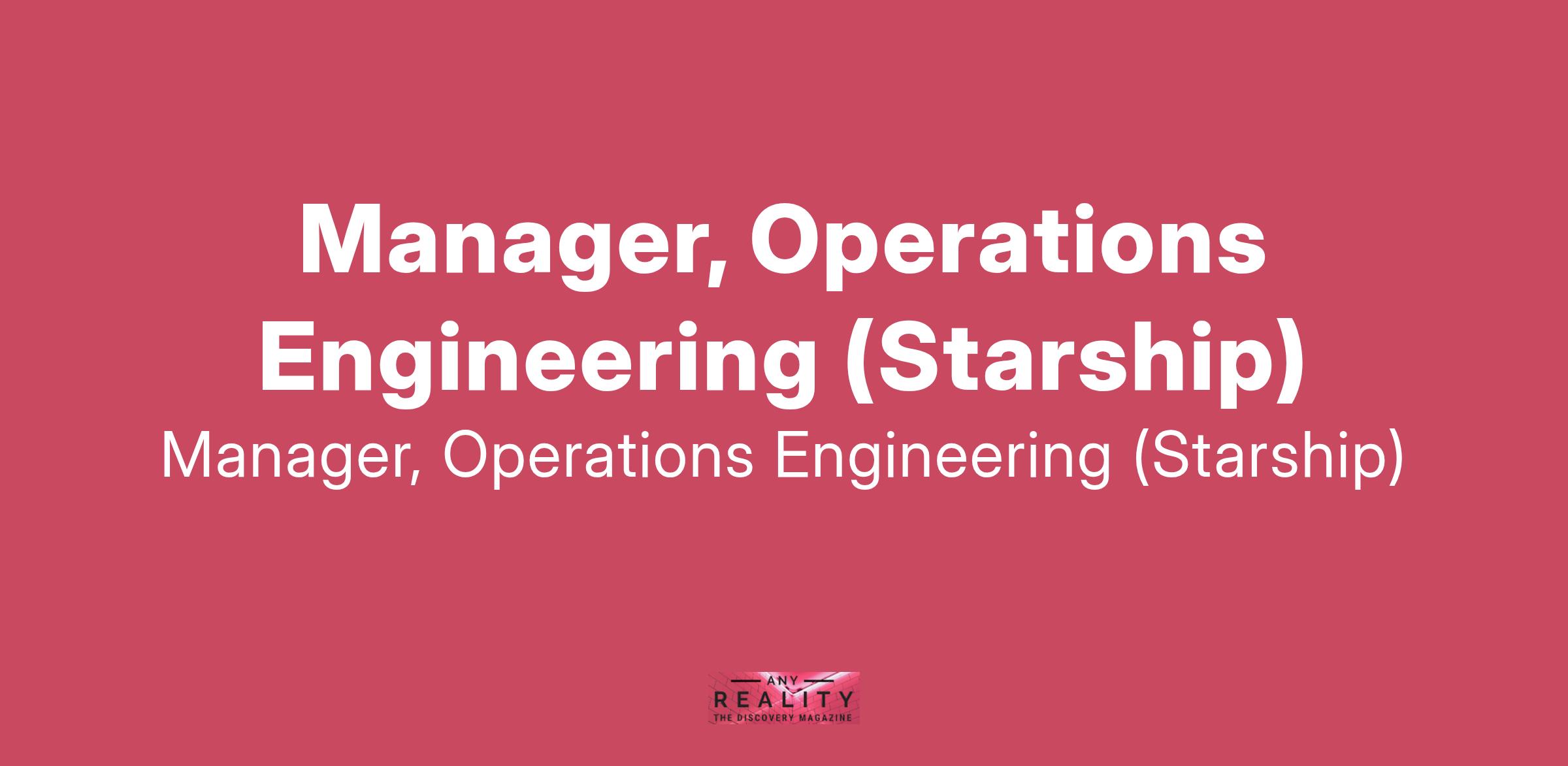 Manager, Operations Engineering (Starship)