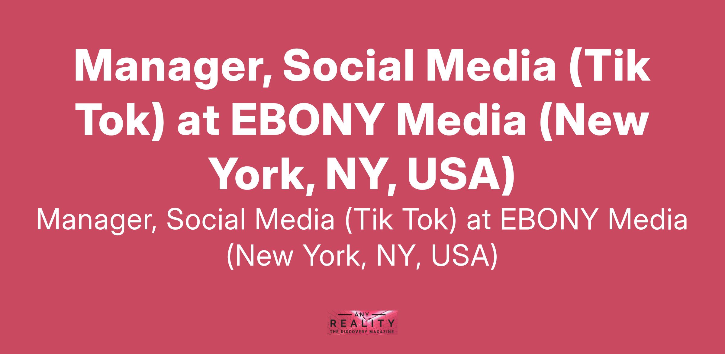 Manager, Social Media (Tik Tok) at EBONY Media (New York, NY, USA)