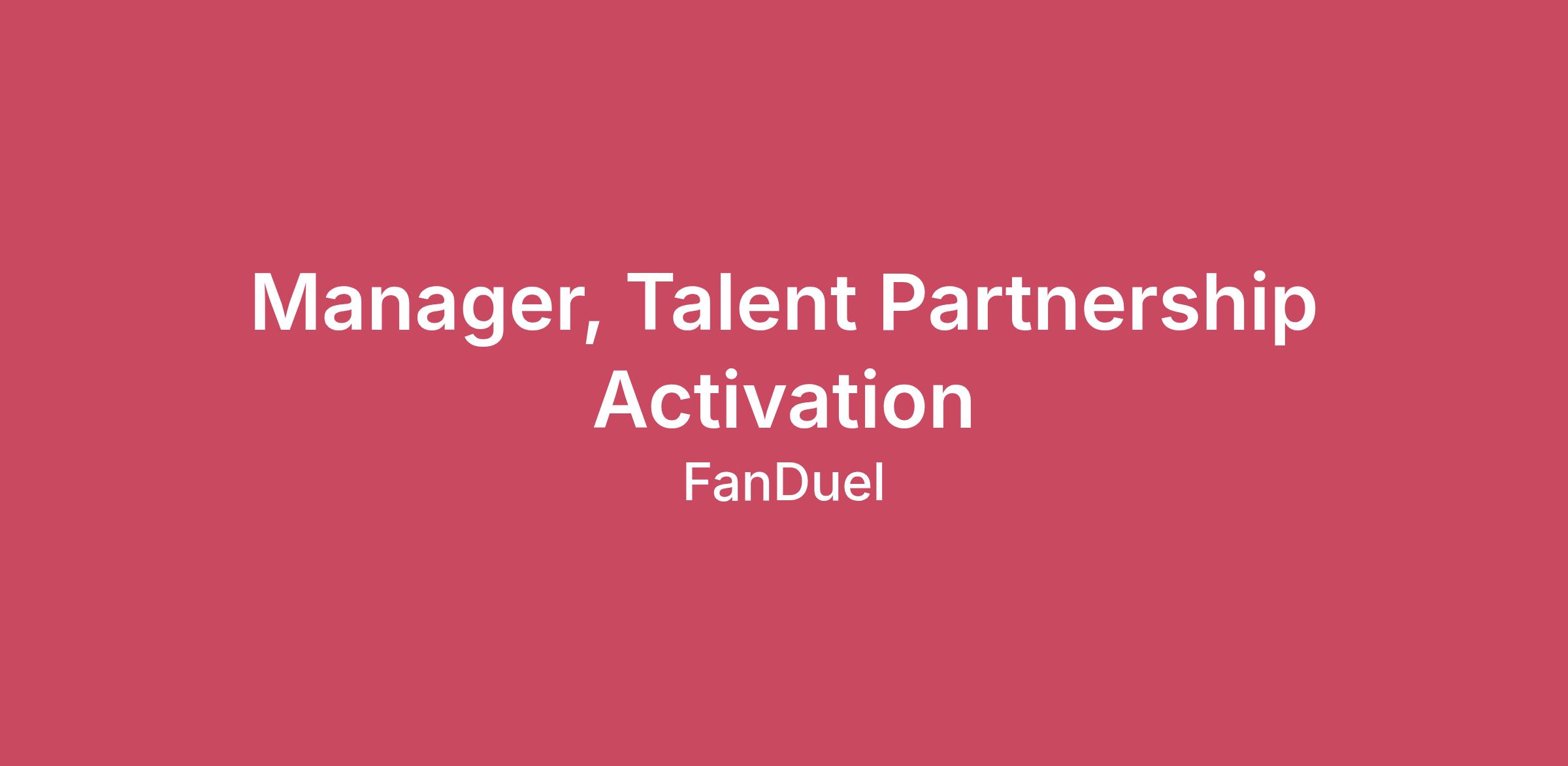 We are currently looking for a Talent Partnerships Manager. This role will sit within the Sportsbook organization and assist with management of key talent, influencer and integrated partnerships. If you have a passion for sports, content and partnership business development within a fast-paced culture, we want to hear from you.