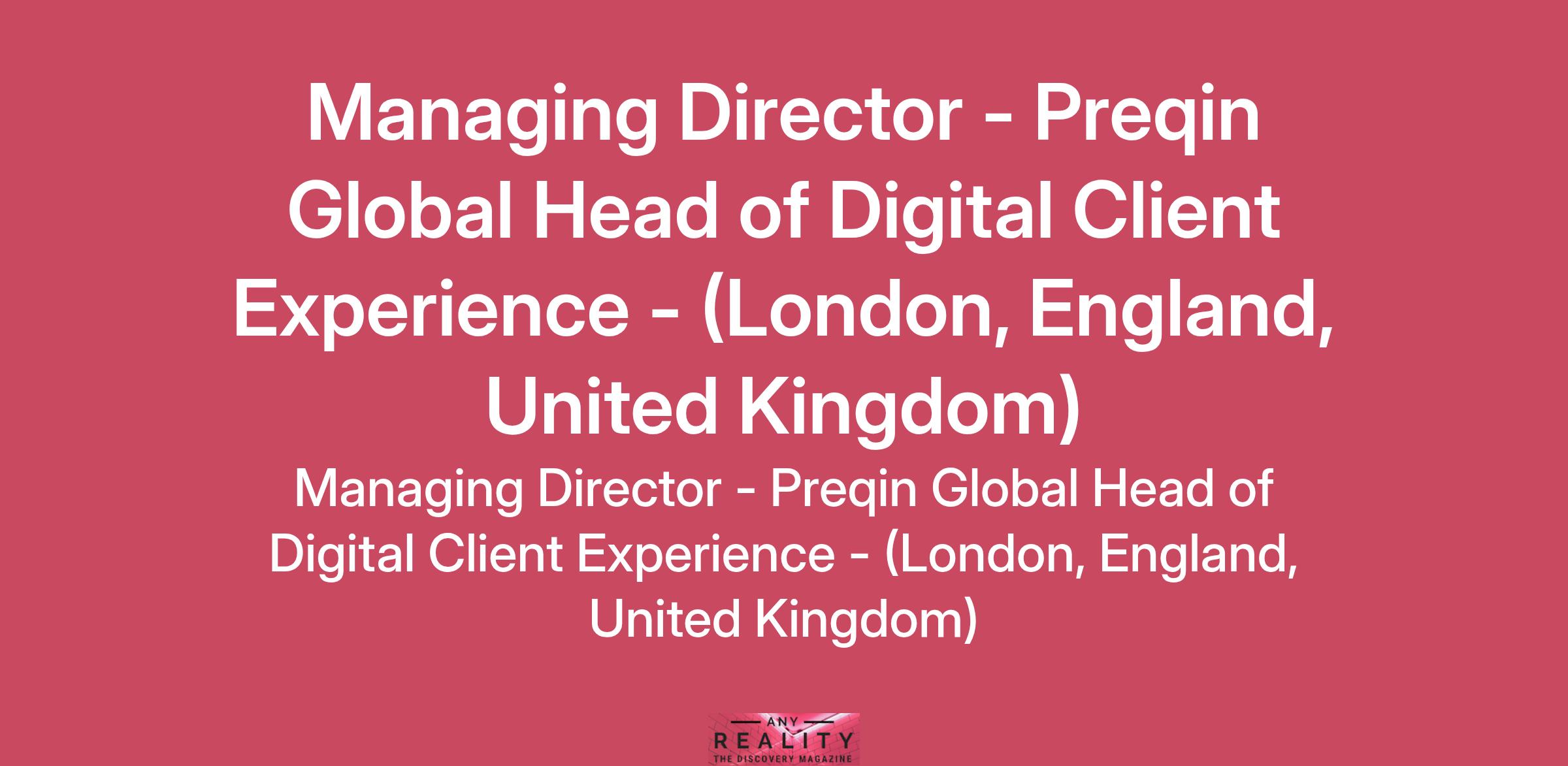 Global Head of Digital Client Experience, Managing Director