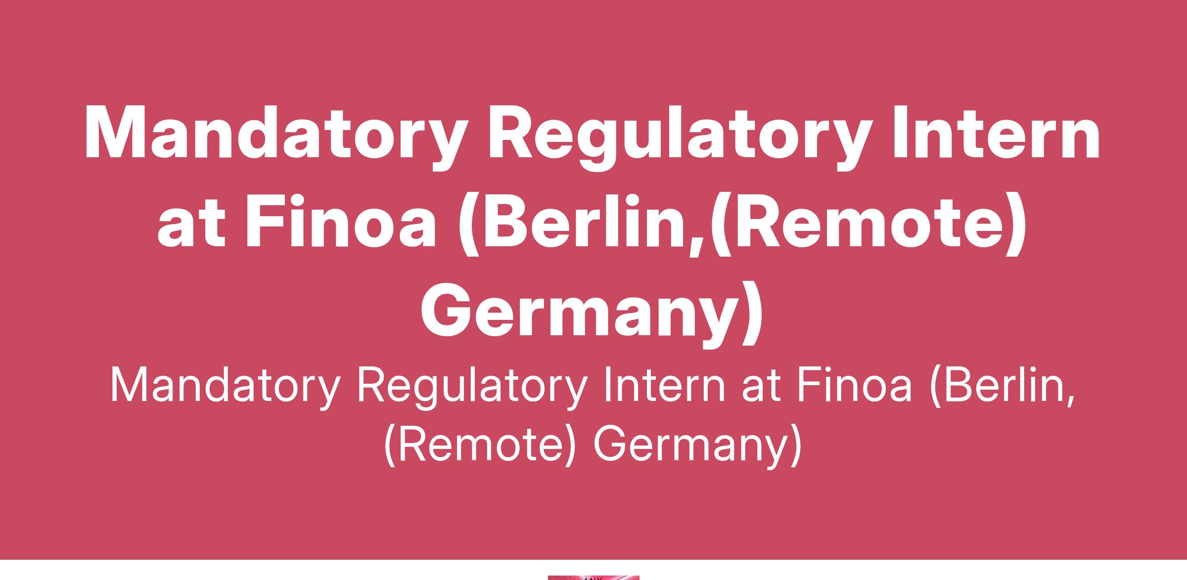 Mandatory Regulatory Intern at Finoa (Berlin,(Remote) Germany)