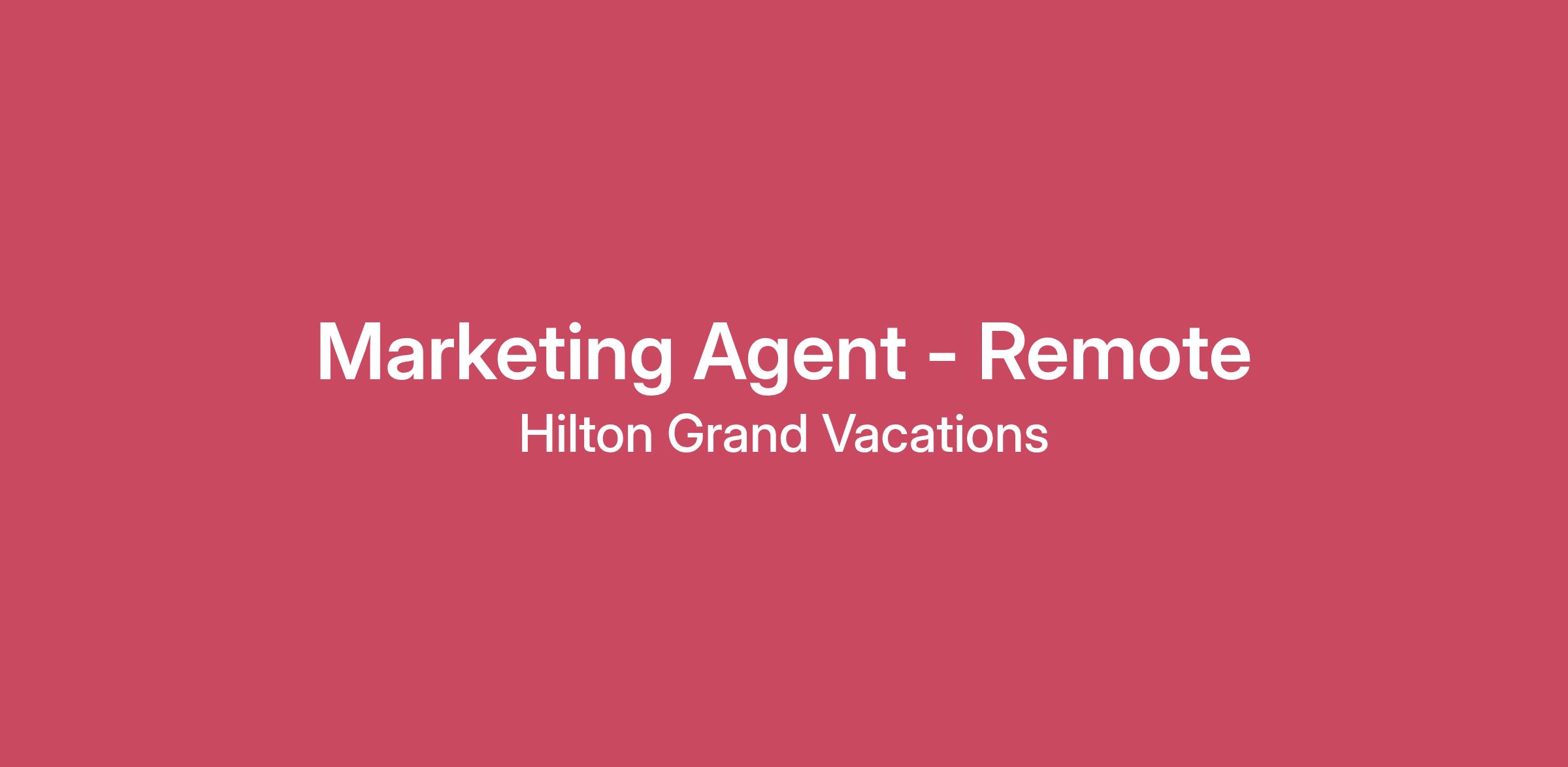 A Marketing Agent - Remote Dial leads from assigned lead campaigns and transfer calls to Sales Executives, Telemarketing Agents and/or Customer Service in an attempt to sell Timeshare, Marketing Package or solve any issues with memberships. Call leads and warm transfer calls to Sales Executives to generate additional volume and/ or package sales. Take inbound calls from campaigns and determine where lead should be directed. Maintain an upbeat, positive demeanor especially when interacting with Hilton guests, coworkers, supervisors, and managers. Maintain individual sales and marketing goals for performance. Ensures guest meets minimum eligibility requirements to tour sales center. Distribute only HGV authorized information and ensures that information is accurate. What are we looking for? Hilton Grand Vacations is a leader in the vacation ownership industry, operating with an unwavering commitment to innovation, quality, and continued growth. At the core of our company’s success are our Team Members. To fulfill this role successfully, you must possess the following minimum qualifications and experience: Superior sales knowledge and ability to close the sale. Basic computer skills. Basic math skills. Detailed and goal oriented. Timeshare industry knowledge. Ability to handle challenging customers and phone calls. Must reside in a state where HGV has approved Work from Home (AL, AZ, FL, GA, HI, ID, IN, KS, MI, MO, NV, NJ, NM, NY, NC, SC, TN, UT, VA, WN) Why do Team Members Like Working for us! HGV is now offering first day benefits to new employees! Excellent earnings package and uncapped commissions. Outstanding health care options (medical, dental, and vision that encourage preventative care). Paid Time Off (PTO) that allows for adventure, rest, relaxation or recuperation. All new Team Members are automatically enrolled in the HGV Retirement Savings Plan. Employee Discount Program - HiltonGO - stay at Hilton Hotels for as low as $40 per night! Also qualify for Friends & Family discounts for your loved ones! And so much more! We are an equal opportunity employer and value diversity at our company. We do not discriminate on the basis of race, religion, color, national origin, gender, sexual orientation, age, marital status, veteran status, or disability status. We will ensure that individuals with disabilities are provided reasonable accommodation to participate in the job application or interview process, to perform essential job functions, and to receive other benefits and privileges of employment. Please contact us to request accommodation. What are we looking for? Hilton Grand Vacations is a leader in the vacation ownership industry, operating with an unwavering commitment to innovation, quality, and continued growth. At the core of our company’s success are our Team Members. To fulfill this role successfully, you must possess the following minimum qualifications and experience: Superior sales knowledge and ability to close the sale. Basic computer skills. Basic math skills. Detailed and goal oriented. Timeshare industry knowledge. Ability to handle challenging customers and phone calls. Must reside in a state where HGV has approved Work from Home (AL, AZ, FL, GA, HI, ID, IN, KS, MI, MO, NV, NJ, NM, NY, NC, SC, TN, UT, VA, WN) Why do Team Members Like Working for us! HGV is now offering first day benefits to new employees! Excellent earnings package and uncapped commissions. Outstanding health care options (medical, dental, and vision that encourage preventative care). Paid Time Off (PTO) that allows for adventure, rest, relaxation or recuperation. All new Team Members are automatically enrolled in the HGV Retirement Savings Plan. Employee Discount Program - HiltonGO - stay at Hilton Hotels for as low as $40 per night! Also qualify for Friends & Family discounts for your loved ones! And so much more! We are an equal opportunity employer and value diversity at our company. We do not discriminate on the basis of race, religion, color, national origin, gender, sexual orientation, age, marital status, veteran status, or disability status. We will ensure that individuals with disabilities are provided reasonable accommodation to participate in the job application or interview process, to perform essential job functions, and to receive other benefits and privileges of employment. Please contact us to request accommodation.