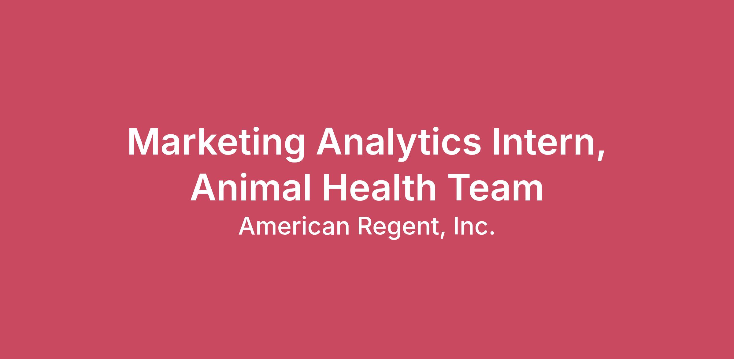 Nature and ScopeThe Marketing Analytics internship opportunity to develop an understanding of how animal health data flows from manufacturing to distribution to clinics, and how this informs marketing and commercial strategy. The intern will analyze customer, campaign, and sales data to identify trends and insights that support targeting, segmentation, and performance measurement. Responsibilities include supporting the Animal Health Commercial Operations and Marketing teams with data collection and validation, building reports and dashboards, performing quantitative analyses, and translating findings into actionable recommendations, as well as preparing presentations of insights for Commercial team members. Internship Project SummaryWe are currently seeking a dynamic and highly motivated intern to support strategic analytics on Animal Health Commercial Operations team. An ideal candidate would be hardworking, curious, and insights driven.Ability to a 13 -week program (from May 18, 2026 to August 14, 2026) and commit to 40 hours per week remotely.Essential Duties and ResponsibilitiesNothing in this job description restricts management’s right to assign or reassign duties and responsibilities to this job at any time.Develop an understanding of how to analyze marketing, customer accounts, sales and CRM activity dataAbility to understand the process in joining different datasetsParticipate in Tableau dashboard creating, data analyzing, and presenting key findings when investigating data outliersCompletion of one focused project during the term of employment which will require the delivery of a dashboard presentation to select Animal Health team members (potential topics to be discussed and agreed upon)Assist in other data analytics activities as assignedPerform any other tasks/duties as assigned by management.Education Requirements and QualificationsTo perform this job successfully, an individual must be able to perform each essential duty satisfactorily. The requirements listed below are representative of the knowledge, skill and/or ability required.Currently pursuing a bachelor’s degree in Pharmaceutical Science, Finance, Marketing, Data Science, Economics, or Accounting. Candidate must have successfully completed Junior Year of an undergraduate program or higher.Preferred: Understanding of profit and loss, net present value calculationsPreferred: Data visualization and interactive dashboard developmentRequired: PowerPoint (Structure, Build, Deliver)Required: Excel Pivot Tables and ChartsOther skills/qualities- High attention to detail, excellent organizational and communication, ability to manage multiple tasks efficiently and meet deadlines, critical thinking and analytical skillsBenefits of being a part of an American Regent InternshipOpportunity to obtain valuable real-world experience in a Pharma setting, while gaining specific field-related exposure, and making important professional connections.Discover if a particular career path or field of study in the Pharma industry is right for you.Engage in our fun and collaborative company culture.Expected Hourly Rate:$20.00 - $23.00The hourly rate displayed is the minimum and maximum hourly rate of compensation for the role that the employer in good faith believes to be accurate at the time of the posting of an advertisement for the role. Actual compensation for the role will be based on a number of different factors including but not limited to the candidate’s qualifications, education, knowledge, skills and experience.American Regent celebrates diversity and we are committed to creating an inclusive environment for all employees. We are an Equal Opportunity Employer and all qualified applicants will receive consideration for employment without regard to race, color, religion, sex, sexual orientation, gender identity, national origin, disability status, or protected veteran status.Applicants have rights under Federal Employment Laws. FMLA poster: https://www.dol.gov/whd/regs/compliance/posters/fmlaen.pdfKnow Your Rights: Know Your Rights: Workplace discrimination is illegal (eeoc.gov)Employee Polygraph Protection Act: https://www.dol.gov/whd/regs/compliance/posters/eppac.pdfAlert: We’re aware of individuals impersonating our staff to target job seekers. Please note:· All legitimate communication will come directly from a verified ARI recruiter either by phone or via an americanregent.com email address.· Our recruiting process includes multiple in person and/or video interviews and assessments.· If you are unsure about the legitimacy of a message, contact John Rossini at jrossini@americanregent.com before responding.· We never request payment, bank information, or personal financial details during our offer process.Your security is important to us, and we encourage you to stay vigilant when job searching.American Regent Inc. endeavors to make https://careers.americanregent.com/ accessible to any and all users. If you would like to contact us regarding the accessibility of our website or need assistance completing the application process, please email hrtalentacquisition@americanregent.com.