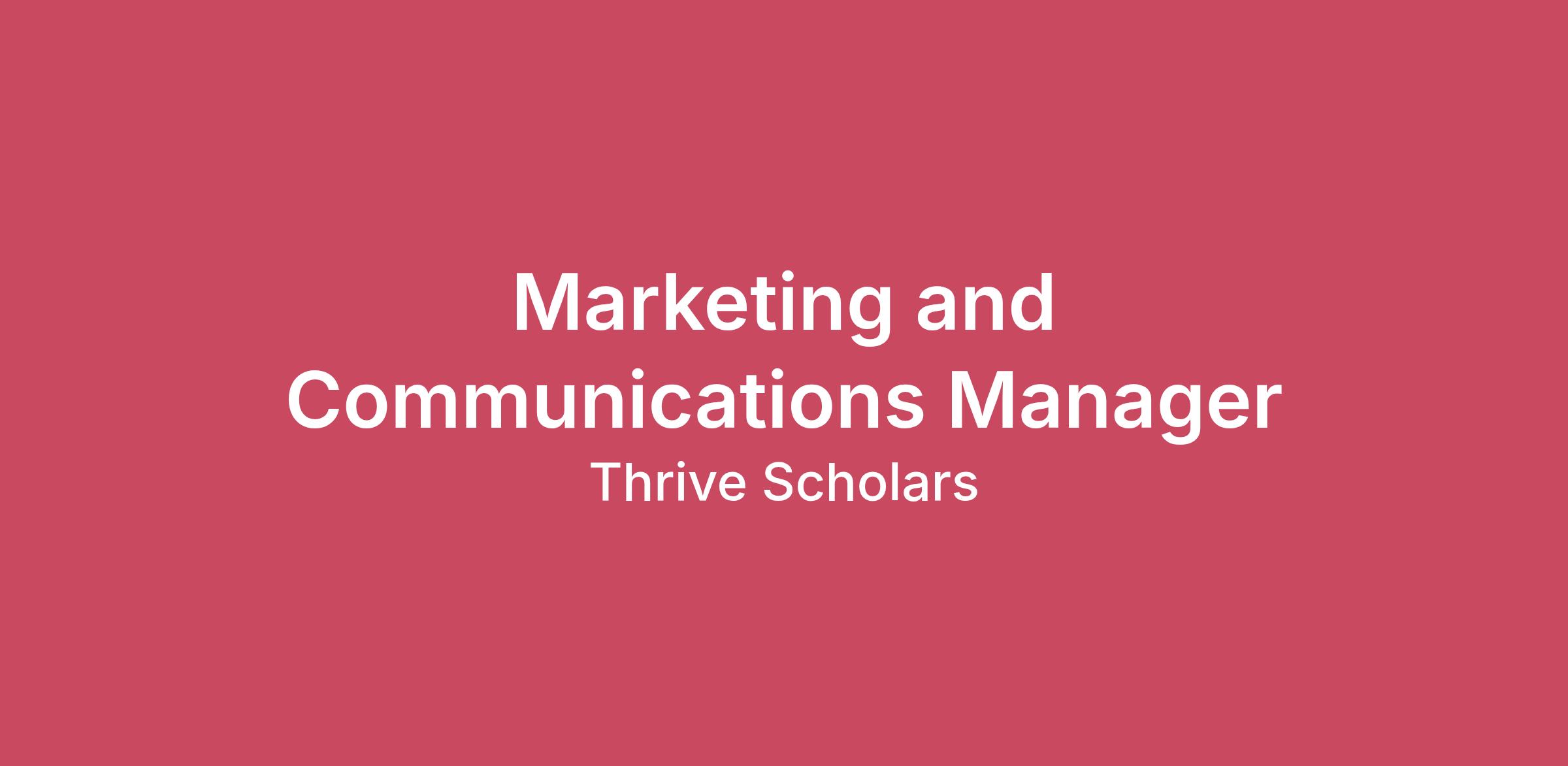 The Program: The Marketing & Communications team at Thrive Scholars ensures our internal and external messaging is clear, consistent, and mission-driven. From Scholar and alumni spotlights to event materials, digital campaigns, and fundraising collateral, our team helps elevate Thrive’s brand and tell the powerful stories of the Scholars we serve. This role will work closely with the Development, Recruitment, Program, and Marketing teams to deliver creative and impactful communications that strengthen engagement with Scholars, families, donors, and partners. The role will report into the Chief Operating Officer. The Position or Opportunity: Thrive Scholars is seeking a detail-oriented and collaborative Marketing & Communications Manager to support the execution of content and communications efforts that elevate the organization’s visibility and storytelling. This individual will play a key role in helping with content creation, campaign coordination and strategy, digital asset management, cross-functional support, and KPI reporting and analysis.The Marketing & Communications Manager will work closely with colleagues across the organization to produce high-quality materials that align with Thrive’s brand, messaging, and mission and set short-term campaign strategies. This is an ideal opportunity for a strong communicator who is early in their marketing/communications career and eager to grow in a fast-paced, mission-driven environment.The ideal candidate is passionate about storytelling and has excellent writing and editing skills, a strong eye for detail and design, and comfort juggling multiple deadlines. Key Responsibilities: Content Creation & DistributionCreate and build templates for email newsletters, blog posts, event collateral, annual reports, and other materials as neededAssist with writing and proofreading Scholar and alumni storiesCoordinate the distribution of marketing materials to internal and external audiencesSupport social media posting, scheduling, and asset gatheringCreate original marketing content across platforms, including social media posts, reels, short-form videos, and graphics aligned with Thrive’s brandProject & Campaign, and Website CoordinationBuild and lead a centralized intake and coordination process for internal marketing and communications requests, including campaign and content needsDevelop strategy for short-term and regional campaigns, and own content calendars and digital campaign timelinesCoordinate internal approvals and production logisticsManages website vendors and support updates to the Thrive website using a CMS (e.g., WordPress or Squarespace)Oversee scholar summer interns by planning and managing campaign and content deliverables, while coaching them on content creation best practicesMarketing Analytics & Performance TrackingCompile and interpret communications metrics, producing clear analytics reports that highlight key trends and resultsSupport data hygiene best practices, including consistent naming, tagging, and documentation of campaigns and contentBrand & Asset ManagementSupport the development of Thrive’s visual style across materials Ensure consistent application of Thrive’s brand guidelines across materialsOrganize and maintain inventory of branded templates, flyers, and presentationsTrack usage of photos, logos, and brand assets in materialsGeneral Administrative SupportAssist with scheduling meetings, managing folders, and organizing digital assetsProvide logistical support for communications-related events and campaignsOther duties as assignedQualifications and Experience:There are innumerable ways to learn, grow and excel professionally. We respect this when we review applications and take a broad look at the experience of each applicant. The qualifications and experiences listed below are intended as a guide; we do not expect candidates to check every box. If you believe you can meet the expectations and responsibilities of this position, we want to get to know you and the unique strengths you will bring to the work.2-5 years of experience in a communications, marketing, or content creation roleStrong creative design, writing, proofreading, and copyediting skillsDemonstrated ability to plan and manage multi-channel marketing or communications campaigns / projects and meet deadlinesProficiency in Google Workspace; comfort with digital tools like CanvaExperience managing social media content and engagement across platforms (e.g., Instagram, LinkedIn)Ability to update and maintain website content using a content management systemWillingness and ability to attend occasional in-person events to support content gathering or logisticsStrong organizational and communication skills with experience working across teams Alignment with Thrive Scholars’ mission and valuesCompensation and Benefits:Thrive Scholars offers a competitive compensation and benefits package including high-quality health, dental, and disability insurance, three weeks of paid vacation (four weeks after two years of employment), and access to an employer-matched retirement plan. This is a full-time, exempt.Travel Expectations: This position will potentially require some national travel from June - August for our Summer Academies. The travel schedule will be set in consultation with the Senior Leadership Team.Equal Employment OpportunitiesThrive Scholars provides equal employment opportunities (EEO) to all employees and applicants for employment and prohibits discrimination and harassment based on race, color, religion, gender, gender identity, national origin, sexual orientation, age, disability, or veteran status. We strongly encourage people of all backgrounds to apply.For more information, please visit thrivescholars.org