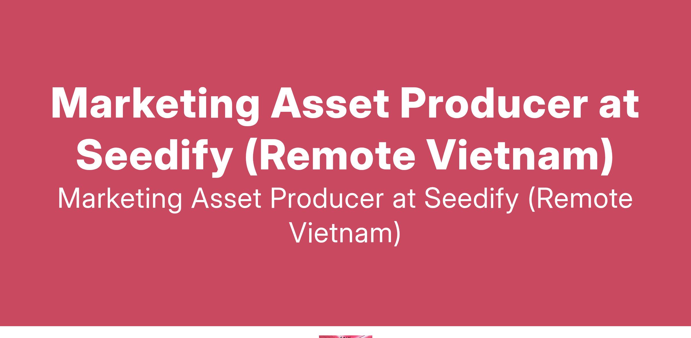 Marketing Asset Producer at Seedify (Remote Vietnam)