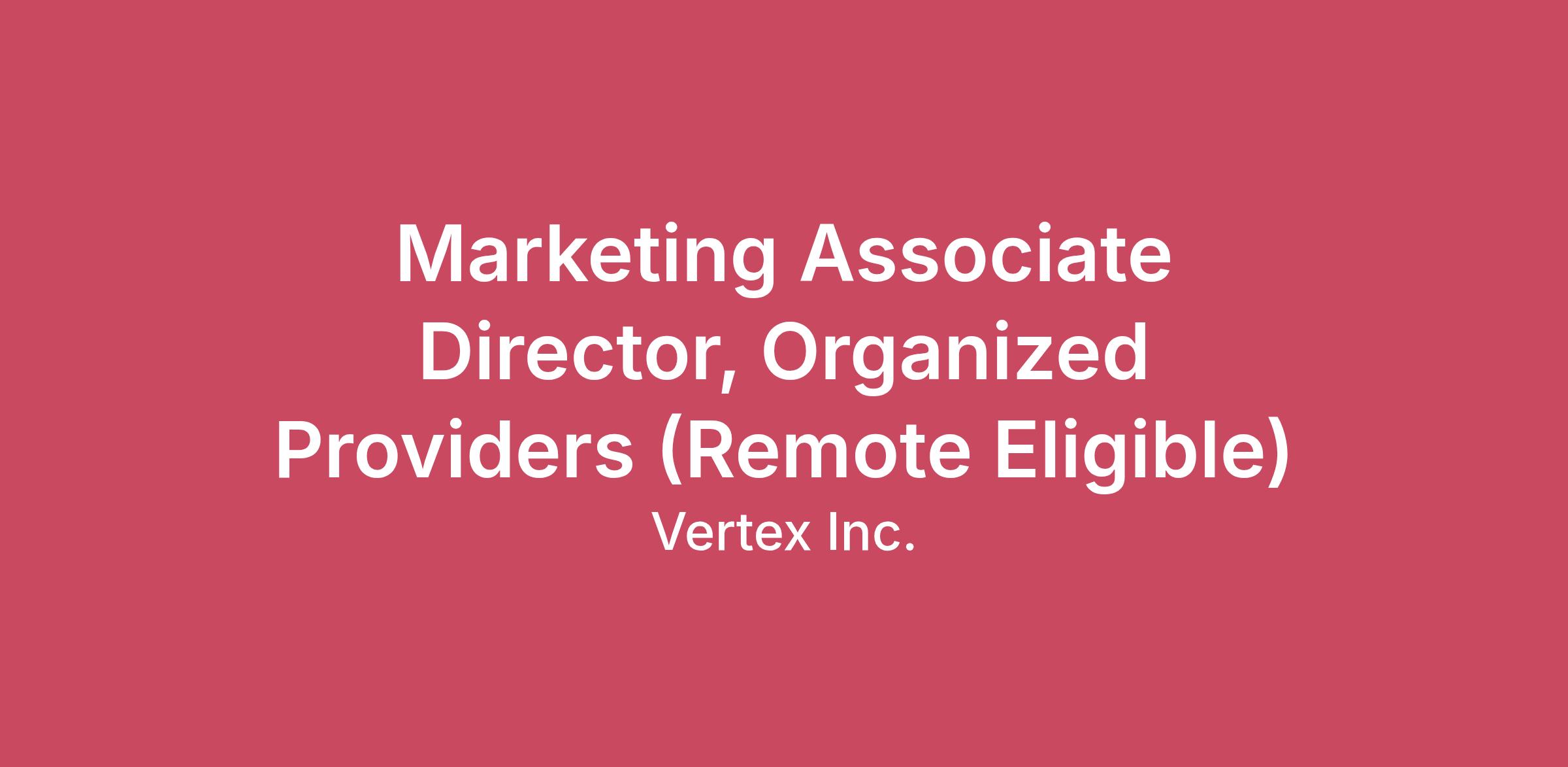 Job DescriptionGeneral Summary:Vertex is seeking a talented individual to join our US Pain Business Unit and support our journey to fundamentally transform pain management in the US. The Marketing Associate Director, Organized Providers, is responsible for the development and execution of key marketing tactics targeting Hospital Group Purchasing Organizations, the Department of Defense, the Department of Veterans Affairs, and additional organized corporate accounts. Vertex recently launched JOURNAVX, an oral, non-opioid medication for the treatment of moderate-to-severe acute pain. Promotional education is critical to the success of JOURNAVX. This role will develop high impact personal and digital promotional content and work closely with colleagues on the health systems marketing team, US market access team, federal accounts team, and GPO field lead. This role will be expected to develop and execute training on the above content to a large field team of ~200 members. This role reports to the Senior Director, Health Systems and Organized Providers.Key Duties and Responsibilities:Drives deep account specific expertise to guide strategy in GPOs, VA, and DoD accountsDevelops/adapts content tailored to GPO and federal account customersCollaborates closely with field GPO lead and Federal Account Leads to support promotional efforts with appropriate marketing contentSupports Corporate Account Field Leads with insight generation and marketing materials targeting Ambulatory Surgery Centers, Physician Staffing Groups, Dental Service Organizations and Urgent Care Centers.Informs peer-to-peer education content and tactics that are relevant to the GPO and federal channelsCollaborates with cross-functional partners within strategic accounts, market access, and marketing to ensure strategic alignment, operational efficiency, and collaborative strategies & tactics where appropriateCollaborates with the health systems agency of recordLeverages insights from customers and field teams to improve material effectivenessTravel Requirements: Ability to travel 30% (~6 days a month)Knowledge and Skills:Experience developing communications/tactics in U.S. or global marketing and managing agency effortsExperience with hospital GPO and federal customers (VA/DOD)Experience with institutional and IDN marketing and/or salesEarly career experience as a strong individual contributor in a professional work settingPharmaceutical drug launch experience preferredDemonstrates strong understanding of health information technology, IDN systems, and institutional marketsEducation and Experience:Bachelor's degree in marketing, business, or scientific degreeTypically requires 8 years of experience or the equivalent combination of education and experiencePay Range:$162,800 - $244,200Disclosure Statement:The range provided is based on what we believe is a reasonable estimate for the base salary pay range for this job at the time of posting. This role is eligible for an annual bonus and annual equity awards. Some roles may also be eligible for overtime pay, in accordance with federal and state requirements. Actual base salary pay will be based on a number of factors, including skills, competencies, experience, and other job-related factors permitted by law.At Vertex, our Total Rewards offerings also include inclusive market-leading benefits to meet our employees wherever they are in their career, financial, family and wellbeing journey while providing flexibility and resources to support their growth and aspirations. From medical, dental and vision benefits to generous paid time off (including a week-long company shutdown in the Summer and the Winter), educational assistance programs including student loan repayment, a generous commuting subsidy, matching charitable donations, 401(k) and so much more.Flex Designation:Remote-EligibleFlex Eligibility Status:In this Remote-Eligible role, you can choose to be designated as: 1. Remote: work remotely five days per week and come into the office on occasion – you’re always welcome on-site; or select 2. Hybrid: work remotely up to two days per week; or select3. On-Site: work five days per week on-site with ad hoc flexibility.Note: The Flex status for this position is subject to Vertex’s Policy on Flex @ Vertex Program and may be changed at any time. #LI-RemoteCompany InformationVertex is a global biotechnology company that invests in scientific innovation. Vertex is committed to equal employment opportunity and non-discrimination for all employees and qualified applicants without regard to a person's race, color, sex, gender identity or expression, age, religion, national origin, ancestry, ethnicity, disability, veteran status, genetic information, sexual orientation, marital status, or any characteristic protected under applicable law. Vertex is an E-Verify Employer in the United States. Vertex will make reasonable accommodations for qualified individuals with known disabilities, in accordance with applicable law. Any applicant requiring an accommodation in connection with the hiring process and/or to perform the essential functions of the position for which the applicant has applied should make a request to the recruiter or hiring manager, or contact Talent Acquisition at ApplicationAssistance@vrtx.com