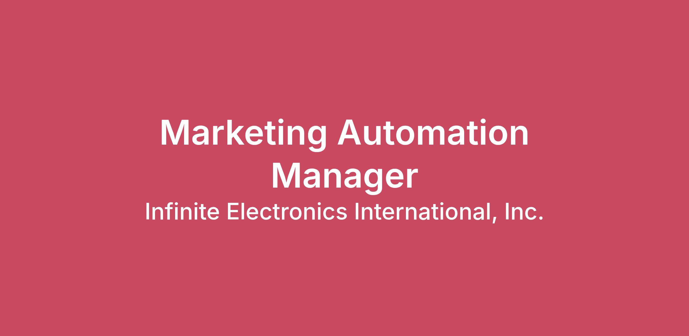 Position Description: We are seeking a strategic and data-driven Marketing Automation Manager to lead our lifecycle and demand email marketing programs. This role will own the strategy, execution, and optimization of email initiatives that drive customer engagement, nurture leads, convert pipeline opportunities and drive ecommerce revenue. The ideal candidate has deep B2B experience, understands complex customer journeys, and can leverage Eloqua (or a comparable enterprise MAP/Marketing Automation Platform) to deliver personalized, high-impact campaigns at scale.General Duties and Responsibilities:Design, build, and optimize always-on lifecycle campaigns (welcome, nurture, re-engagement, win-back).Develop audience segmentation and targeting strategies to increase engagement and conversion.Create data flows and understand data architecture to leverage in MAP.Partner with demand generation and sales teams to develop email campaigns that accelerate ecommerce revenueBuild triggered and event-based campaigns (e.g., content downloads, product interest, past purchase).Manage Eloqua campaigns end-to-end: audience segmentation, workflow logic, A/B testing, QA, deliverability, and reporting.Analyze campaign performance (open, CTR, conversion, pipeline impact, etc.) and provide actionable insights.Drive continuous testing on subject lines, personalization, CTAs, and send cadence.Work with Brand/Creative to ensure messaging and design align with brand guidelines.Partner with Brand teams for product launches and nurture content.Collaborate with E-commerce / Digital Marketing to integrate campaigns with paid, web, and social.Act as the Eloqua subject-matter expert: maintain data hygiene, and automation workflows.Ensure compliance with CAN-SPAM, GDPR, CCPA and other data privacy regulations.Education and Experience:Bachelor’s degree in Marketing, Communications, Business, or a related field required5–7 years of professional experience in marketing automation or a related digital marketing roleHands-on experience with marketing automation platforms, with a strong preference for Oracle EloquaPreferred Qualifications:Proven B2B marketing experience, ideally in a technology-driven environmentPhysical Job Requirements:Prolonged periods in a stationary position at a desk and working on a computer.Constantly communicates with employees and leaders, both verbally and in writing.Reports To: Senior Manager, Growth MarketingEnvironment: Work environment is remote during regular or extended business hours.Accommodation: Candidates for the position should be able to perform essential job duties in described work environment with or without accommodation. Reasonable accommodations may be made to enable individuals with disabilities to perform the essential functions.Equal Employment OpportunityInfinite Electronics is proud to be an Equal Employment Opportunity and Affirmative Action employer and all qualified applicants will receive consideration for employment without regard to race, color, religion, sex, sexual orientation, gender identity, gender expression, marital status, age, national origin, disability status, protected veteran status, or any other characteristic protected by law. We are committed to building a diverse workforce and we actively encourage women, minorities, people with disabilities and veterans to apply.
