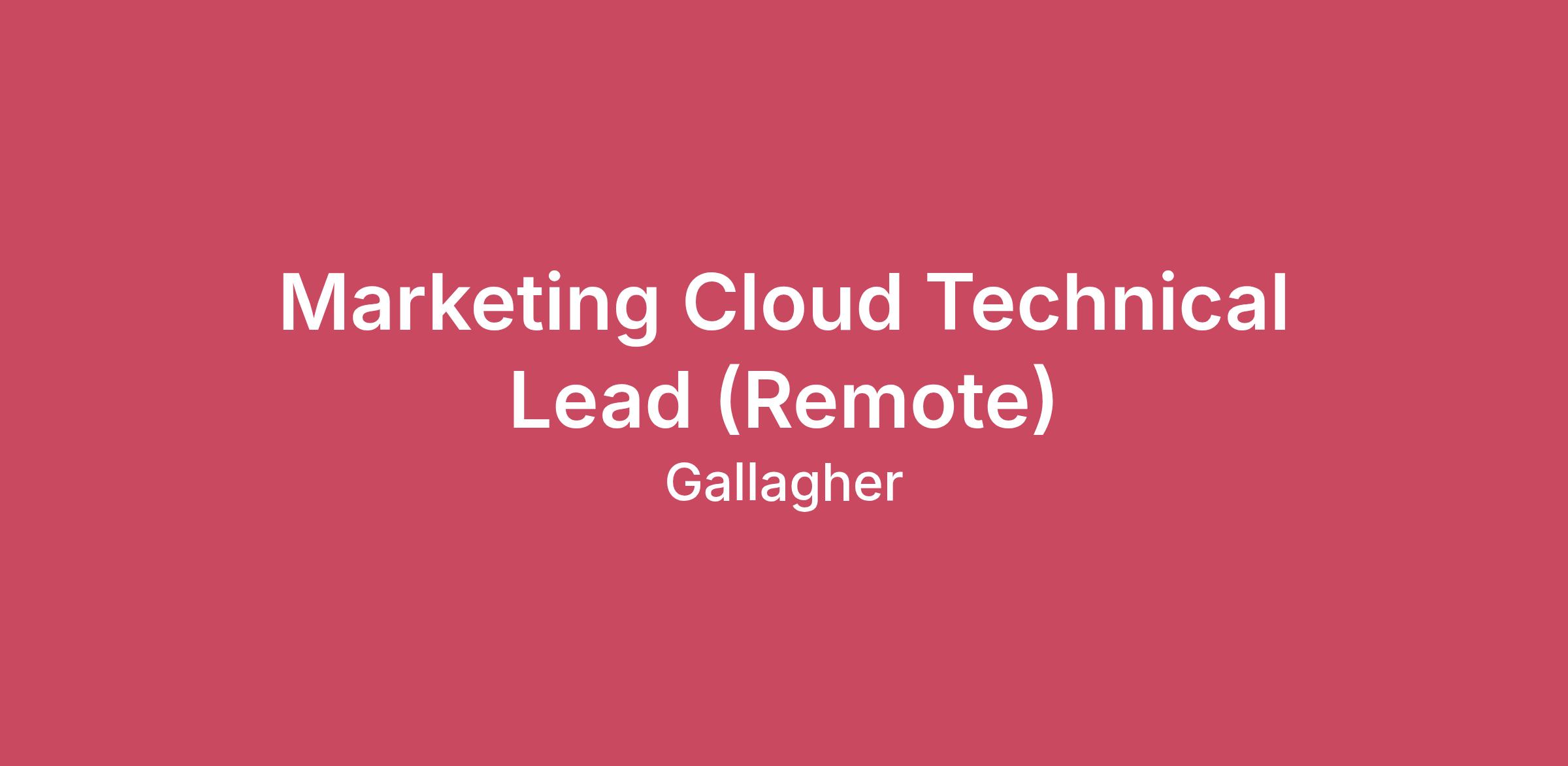 IntroductionWelcome to Gallagher - a global community of people who bring bold ideas, deep expertise, and a shared commitment to doing what’s right. We help clients navigate complexity with confidence by empowering businesses, communities, and individuals to thrive. At Gallagher, you’ll find more than a job; you’ll find a culture built on trust, driven by collaboration, and sustained by the belief that we’re better together. Whether you join us in a client-facing role or as part of our brokerage division, our benefits and HR consulting division, or our corporate team, you’ll have the opportunity to grow your career, make an impact, and be part of something bigger. Experience a workplace where you’re encouraged to be yourself, supported to succeed, and inspired to keep learning. That’s what it means to live The Gallagher Way. OverviewWe are seeking a highly skilled and experienced Salesforce Marketing Cloud Development Lead to oversee the design, development, and implementation of marketing automation solutions. In this role you will lead a team of developers and collaborate with cross-functional teams to deliver tailored solutions that enhance customer engagement and drive business growth. Your responsibilities will include managing the end-to-end development lifecycle for core marketing initiatives, lead flow processes, and data integrations within Salesforce Marketing Cloud. You will also ensure best practices in coding, testing, and deployment while staying up-to-date with the latest platform features and trends. The ideal candidate will have a strong background in Salesforce Marketing Cloud, including expertise in tools such as Journey Builder, Email Studio, Automation Studio, and AMPScript. Proficiency in SQL, HTML, and JavaScript is essential, along with a proven track record of leading development teams and delivering complex marketing solutions. This role can be fully remote/virtual/work from home and you can be based anywhere in the US. How you'll make an impactLead the design, development, and implementation of Salesforce Marketing Cloud solutions, ensuring alignment with business objectives and marketing strategiesCollaborate with internal marketing automation and technology teams to determine best path for Salesforce Marketing Cloud platform implementationOversee the creation and optimization of marketing automation workflows using tools like Journey Builder, Email Studio, and Automation StudioDevelop and maintain custom solutions using AMPscript, SQL, HTML, and JavaScript to enhance platform functionalityCollaborate with cross-functional teams to gather requirements and deliver tailored solutionsEnsure data integrity and seamless integration between Salesforce Marketing Cloud and other systems, such as CRM platforms and data warehousesEstablish and enforce best practices for coding, testing, and deployment to maintain high-quality deliverablesStay updated on Salesforce Marketing Cloud features, trends, and industry best practices to drive innovation and continuous improvementProvide technical leadership and mentorship to the development team, fostering a culture of collaboration and professional growthTroubleshoot and resolve technical issues, ensuring the stability and reliability of marketing automation systemsMaintain and document technical processes and procedures and provide seamless hand-off to business users to utilize About YouProven experience (5+ years ideally) working with Salesforce Marketing Cloud, including tools such as Journey Builder, Email Studio, Automation Studio, and Content BuilderSalesforce Marketing Cloud certifications (e.g., Marketing Cloud Developer, Marketing Cloud Consultant) are highly desirableStrong background in agile practices and associated toolsExcellent communication and collaboration skills to work effectively with cross-functional teams and stakeholdersAbility to elicit requirements and translate to technical solutions that can scale across multiple business unitsDemonstrated ability to lead development teams and manage end-to-end project lifecyclesStrong analytical and problem-solving skills, with the ability to troubleshoot technical issues and optimize performanceStrong proficiency in AMPscript, SSJS, SQL, HTML, CSS, and JavaScript for developing and customizing marketing solutionsExperience with data integration and APIs, including REST and SOAP, to connect Salesforce Marketing Cloud with other systemsFamiliarity with Salesforce CRM and its integration with Salesforce Marketing CloudKnowledge of data privacy regulations (e.g., GDPR, CCPA) and their impact on marketing practices#LI-DK3#LI-Remote Compensation and benefitsWe offer a competitive and comprehensive compensation package. The base salary range represents the anticipated low end and high end of the range for this position. The actual compensation will be influenced by a wide range of factors including, but not limited to previous experience, education, pay market/geography, complexity or scope, specialized skill set, lines of business/practice area, supply/demand, and scheduled hours. On top of a competitive salary, great teams and exciting career opportunities, we also offer a wide range of benefits. Below are the minimum core benefits you’ll get, depending on your job level these benefits may improve: Medical/dental/vision plans, which start from day one!Life and accident insurance401(K) and Roth optionsTax-advantaged accounts (HSA, FSA)Educational expense reimbursementPaid parental leaveOther benefits include:Digital mental health services (Talkspace)Flexible work hours (availability varies by office and job function)Training programsGallagher Thrive program – elevating your health through challenges, workshops and digital fitness programs for your overall wellbeingCharitable matching gift programAnd more...**The benefits summary above applies to fulltime positions. If you are not applying for a fulltime position, details about benefits will be provided 