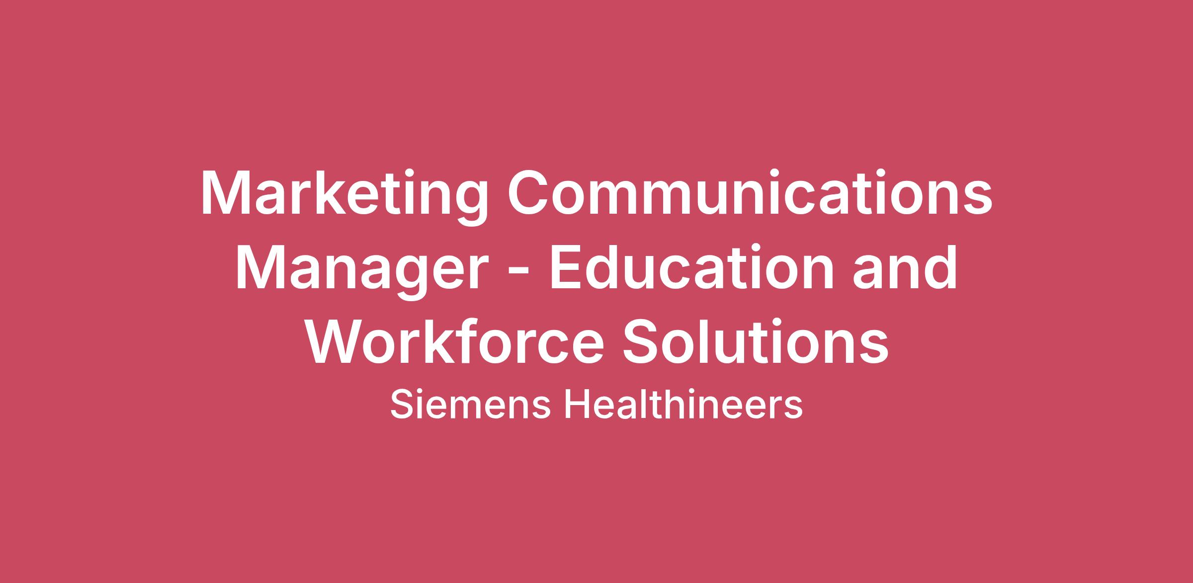 Join us in pioneering breakthroughs in healthcare. For everyone. Everywhere. Sustainably.Our inspiring and caring environment forms a global community that celebrates diversity and individuality. We encourage you to step beyond your comfort zone, offering resources and flexibility to foster your professional and personal growth, all while valuing your unique contributions.**This role can be remote (preference for Eastern or Central Time Zone)**Join our team as Marketing Communications Manager supporting our Education and Workforce Solutions (EWS). As a Marketing Communications Manager, you will be responsible for:You actively engage with Marketing teams and business lines early in the planning process, ensuring that MarCom initiatives align directly with business objectives and customer needs.You develop and execute on agreed upon timelines and continuously optimize integrated digital, omnichannel campaigns based on data to increase customer engagement and provide Marketing Qualified Leads.You share performance metrics as well as industry trends including recommendations with key stakeholders on a regular basis and guide decision-making.You develop customer-centric and searchable messaging that allows quick adaptation of regulatory-approved content to different channels and audiences, ensuring consistency and relevance.You establish a regular review process with the Marketing Manager to update and refine sales assets based on user feedback and performance metrics. You also increase the visibility and accessibility of these assets through targeted training sessions and enhanced ONE Library categorization.This position may suit you best if you are familiar with what is below and would like to develop your career.You have strong operational and business acumen, with a proven ability to think outside the box.You have a proven ability to develop strategic, successful, and customer-centric marketing initiatives, including digital and omnichannel campaigns with value-based messaging.You can easily manage multiple projects and adapt to shifting priorities in a fast-paced environment, always meeting deadlines.You have excellent communication skills, including copywriting.You are a strategic thinker with a high attention to detail.You consistently evaluate the performance and impact of channels and campaigns, driving continuous improvement for better results.You collaborate effectively to deliver results in a timely manner.Required skills to have for the success of this role:You hold a bachelor’s degree in marketing, Communications, or a related field.You bring over 3-5 years of B2B marketing experience, particularly in healthcare marketing communications.You have experience in working in a highly matrixed, global organization.Who we are: We are a team of more than 72,000 highly dedicated Healthineers in more than 70 countries. As a leader in medical technology, we constantly push the boundaries to create better outcomes and experiences for patients, no matter where they live or what health issues they are facing. Our portfolio is crucial for clinical decision-making and treatment pathways.How we work: When you join Siemens Healthineers, you become one in a global team of scientists, clinicians, developers, researchers, professionals, and skilled specialists, who believe in each individual’s potential to contribute with diverse ideas. We are from different backgrounds, cultures, religions, political and/or sexual orientations, and work together, to fight the world’s most threatening diseases and enable access to care, united by one purpose: to pioneer breakthroughs in healthcare. For everyone. Everywhere. Sustainably.To find out more about Siemens Healthineers businesses, please visit our company page here.The base pay range for this position is:$98,140 - $134,937Factors which may affect starting pay within this range may include geography/market, skills, education, experience, and other qualifications of the successful candidate.If this is a commission eligible position the commission eligibility will be in accordance with the terms of the Company's plan. Commissions are based on individual performance and/or company performance. The Company offers the following benefits for this position, subject to applicable eligibility requirements: medical insurance, dental insurance, vision insurance, 401(k) retirement plan. life insurance, long-term and short-term disability insurance, paid parking/public transportation, paid time off, paid sick and safe time.Equal Employment Opportunity Statement: Siemens Healthineers is an Equal Opportunity and Affirmative Action Employer encouraging diversity in the workplace. All qualified applicants will receive consideration for employment without regard to their race, color, creed, religion, national origin, citizenship status, ancestry, sex, age, physical or mental disability unrelated to ability, marital status, family responsibilities, pregnancy, genetic information, sexual orientation, gender expression, gender identity, transgender, sex stereotyping, order of protection status, protected veteran or military status, or an unfavorable discharge from military service, and other categories protected by federal, state or local law.EEO is the Law: Applicants and employees are protected under Federal law from discrimination. To learn more, click here.Reasonable Accommodations: Siemens Healthineers is committed to equal employment opportunity. As part of this commitment, we will ensure that persons with disabilities are provided reasonable accommodations.If you require a reasonable accommodation in completing a job application, interviewing, completing any pre-employment testing, or otherwise participating in the employee selection process, please fill out the accommodations form here. If you’re unable to complete the form, you can reach out to our HR People Connect People Contact Center for support at peopleconnectvendorsnam.func@siemens-healthineers.com. Plea