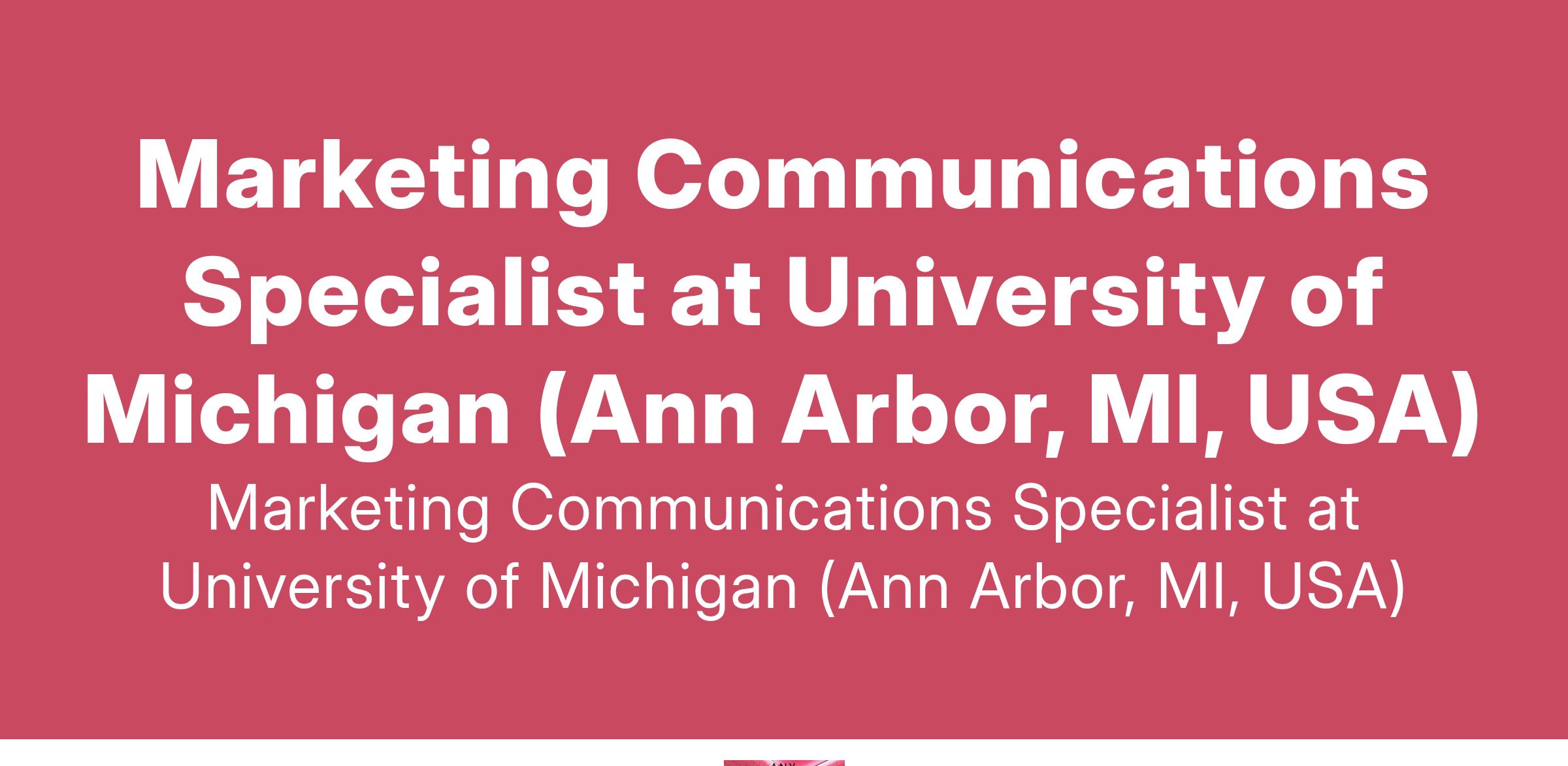 Marketing Communications Specialist at University of Michigan (Ann Arbor, MI, USA)