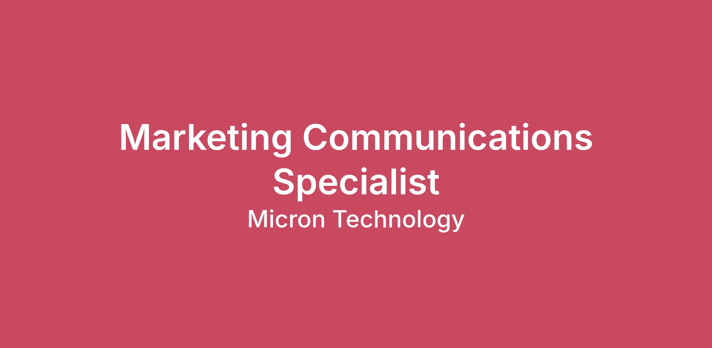 Our vision is to transform how the world uses information to enrich life for all. Micron Technology is a world leader in innovating memory and storage solutions that accelerate the transformation of information into intelligence, inspiring the world to learn, communicate and advance faster than ever.Develop and implement mobile segment marketing plans for memory and storage hardware products, focused on specific audiences and integrating disclosures, announcements, and events as well as targeted content. Develop and execute yearly editorial calendar focused on mobile. Lead creation and strategic direction of content (blogs, podcasts, infographics, etc.) to support the mobile narrative. Manage strategy and tactics for mobile-related product launches with the business unit and additional GCM stakeholders. May telecommute.Employer will accept a Bachelor's degree in Communications, Marketing, Journalism, or a related field and three years of experience in the job offered or in a Marketing Communications Specialist-related occupation.Position also requires experience in:1. Strategic planning for integrated marketing (social media, PR, internal communications, ABM, paid media, Web, events)2. Mobile/Edge/IoT hardware domain knowledge3. Tactical execution of plans including program and project management using tools like Adobe Workfront4. Technical content writing skills for the mobile segment - blogs, videos, infographics, white papers5. Adobe programs Workfront, Creative Suite, AEM6. Microsoft Office (Word, Excel, PowerPoint), Sharepoint, Teams7. Data analysis8. LinkedIn, X/Twitter and Facebook marketing9. SEO and SEM tactics10. Cross-functional relationship building11. Domain mastery of APAC media landscape and marketing tacticsThe US base salary range that Micron Technology, Inc. estimates it could pay for this full-time position is $147,370.00 - $246,000. For additional pay & benefits information, please refer to the requisition at Micron.com/careers.As a world leader in the semiconductor industry, Micron is dedicated to your personal wellbeing and professional growth. Micron benefits are designed to help you stay well, provide peace of mind and help you prepare for the future.  We offer a choice of medical, dental and vision plans in all locations enabling team members to select the plans that best meet their family healthcare needs and budget.  Micron also provides benefit programs that help protect your income if you are unable to work due to illness or injury, and paid family leave.  Additionally, Micron benefits include a robust paid time-off program and paid holidays.  For additional information regarding the Benefit programs available, please see the Benefits Guide posted on micron.com/careers/benefits.Micron is proud to be an equal opportunity workplace and is an affirmative action employer. All qualified applicants will receive consideration for employment without regard to race, color, religion, sex, sexual orientation, age, national origin, citizenship status, disability, protected veteran status, gender identity or any other factor protected by applicable federal, state, or local laws.To learn about your right to work click here.To learn more about Micron, please visit micron.com/careersFor US Sites Only: To request assistance with the application process and/or for reasonable accommodations, please contact Micron’s People Organization at  hrsupport_na@micron.com or 1-800-336-8918 (select option #3)Micron Prohibits the use of child labor and complies with all applicable laws, rules, regulations, and other international and industry labor standards.Micron does not charge candidates any recruitment fees or unlawfully collect any other payment from candidates as consideration for their employment with Micron.AI alert: Candidates are encouraged to use AI tools to enhance their resume and/or application materials. However, all information provided must be accurate and reflect the candidate's true skills and experiences. Misuse of AI to fabricate or misrepresent qualifications will result in immediate disqualification.   Fraud alert: Micron advises job seekers to be cautious of unsolicited job offers and to verify the authenticity of any communication claiming to be from Micron by checking the official Micron careers website in the About Micron Technology, Inc.