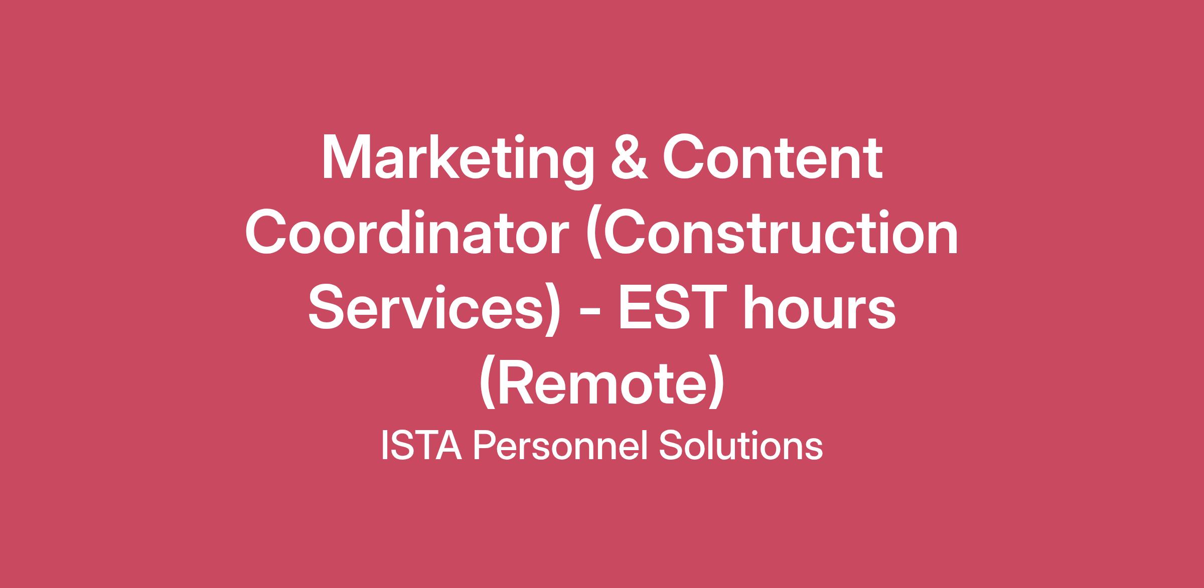 Marketing & Content Coordinator (Construction Services) - EST hours (Remote)
