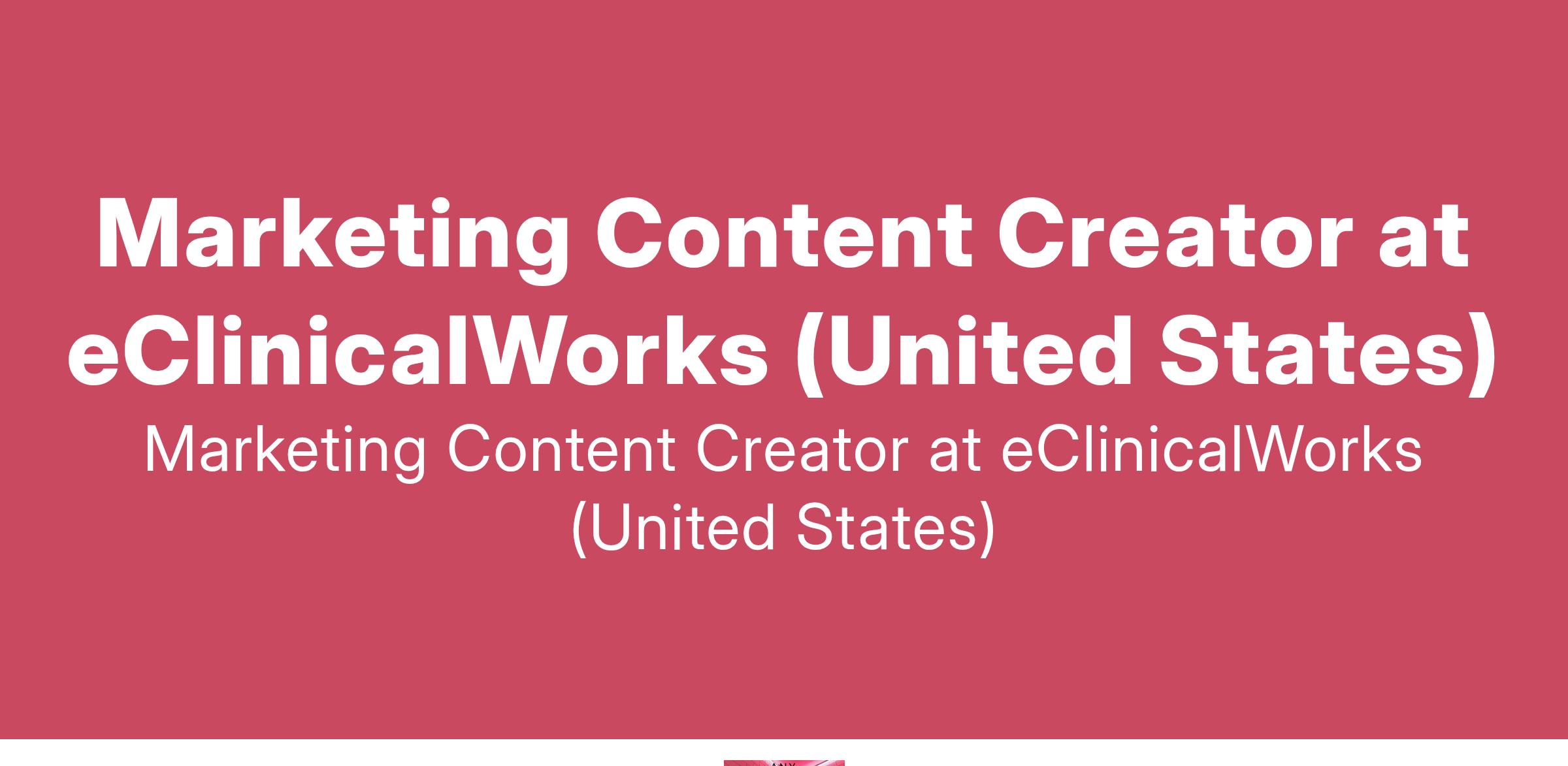 Marketing Content Creator at eClinicalWorks (United States)