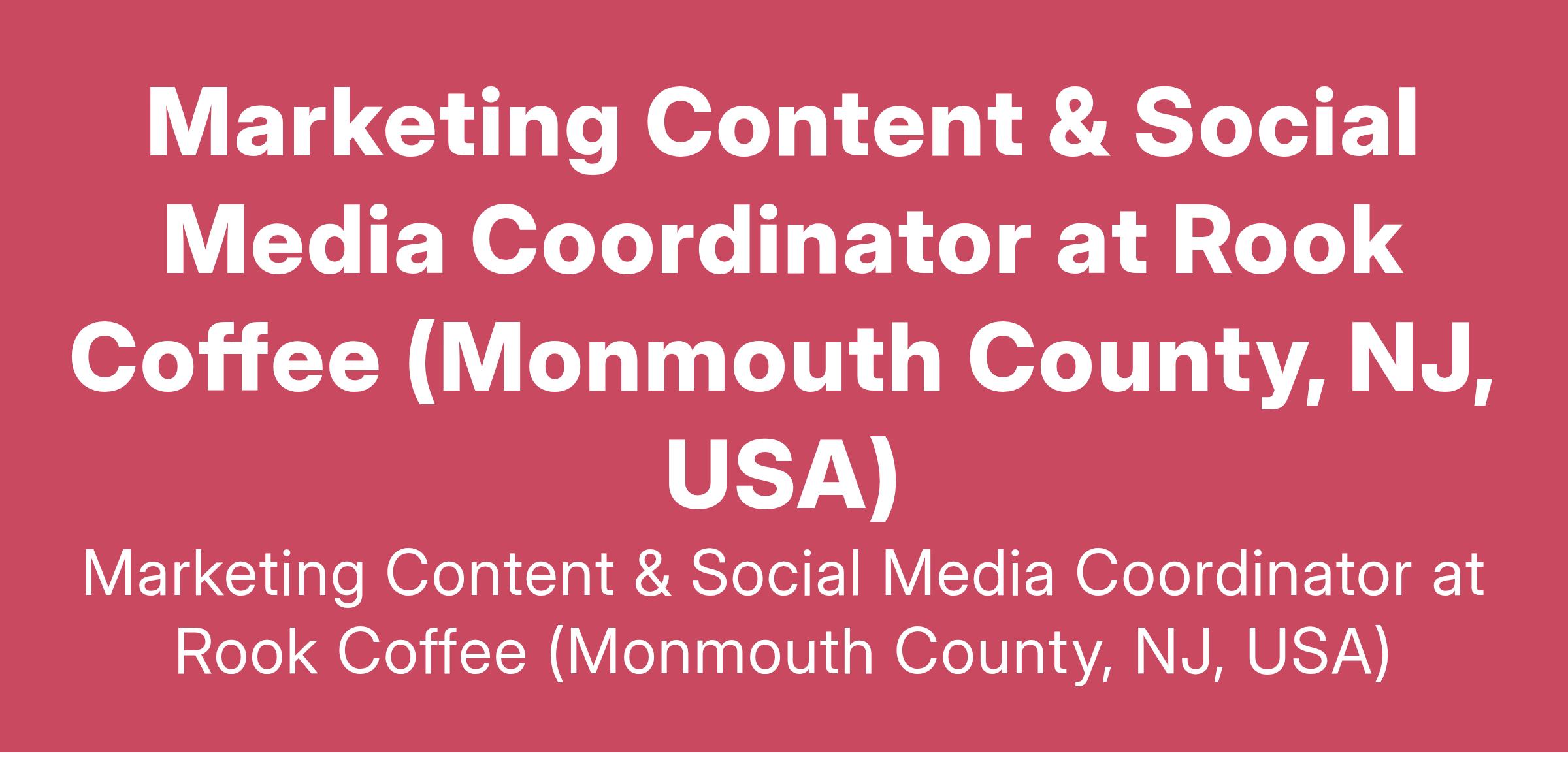 Marketing Content & Social Media Coordinator at Rook Coffee (Monmouth County, NJ, USA)
