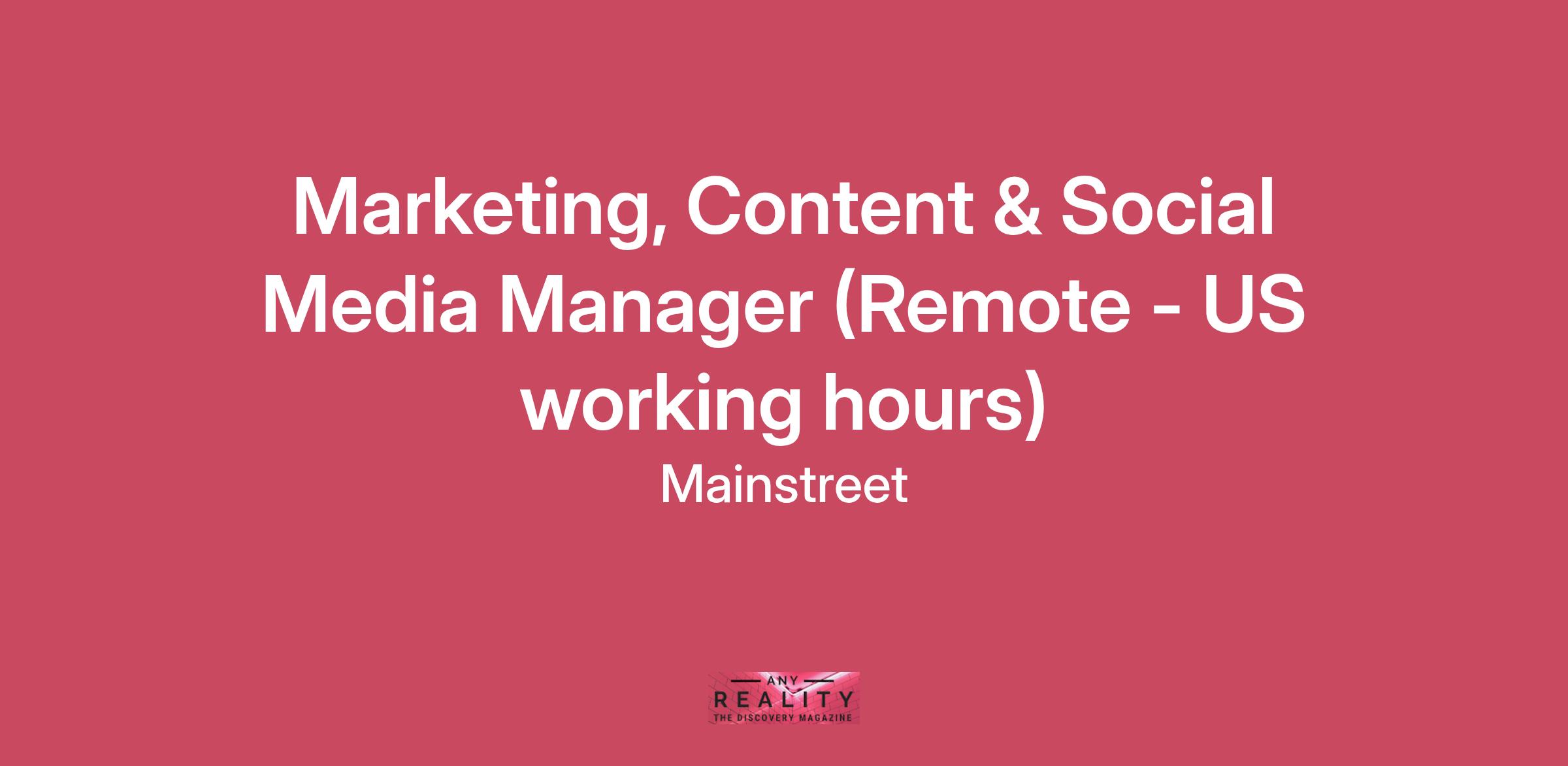 Marketing, Content & Social Media Manager (Remote - US working hours)