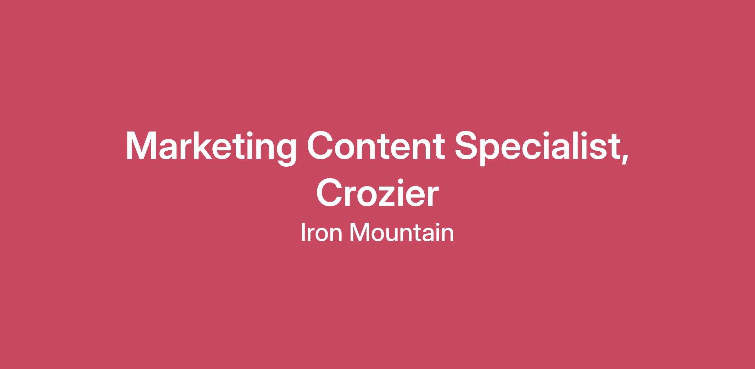 At Iron Mountain we know that work, when done well, makes a positive impact for our customers, our employees, and our planet. That’s why we need smart, committed people to join us. Whether you’re looking to start your career or make a change, talk to us and see how you can elevate the power of your work at Iron Mountain.We provide expert, sustainable solutions in records and information management, digital transformation services, data centers, asset lifecycle management, and fine art storage, handling, and logistics. We proudly partner every day with our 225,000 customers around the world to preserve their invaluable artifacts, extract more from their inventory, and protect their data privacy in innovative and socially responsible ways. Are you curious about being part of our growth story while evolving your skills in a culture that will welcome your unique contributions? If so, let's start the conversation. Crozier Fine Arts is seeking a creative and strategic Marketing Content Specialist to join our Global Marketing Team. In this role, you will be responsible for developing and executing end-to-end content strategies that drive brand awareness, generate leads, and maintain messaging consistency across all digital channels. What You’ll Do (Responsibilities)In this role, you will:Content Strategy & Execution: Develop and produce high-quality, engaging content for various channels, including blog posts, social media, email campaigns, whitepapers, case studies, and website copy to achieve marketing objectives.Cross-Functional Collaboration: Partner with design, product, and broader marketing teams to develop content that effectively communicates our value proposition and differentiates Iron Mountain in the market.Optimization & Compliance: Optimize all content for SEO to improve visibility and organic traffic, while ensuring strict adherence to organizational branding, tone, and messaging standards.Performance Tracking: Conduct industry research and analyze content performance metrics to derive actionable insights and drive continuous improvement in our content efforts.What You’ll Bring (Skills & Qualifications)The ideal candidate will have:Significant experience in creating content for digital marketing initiatives, supported by a strong portfolio of writing samples across multiple platforms.Solid understanding of content marketing principles, SEO best practices, and social media platforms.Exceptional writing, editing, and proofreading skills with a proven ability to manage multiple projects simultaneously in a fast-paced environment.Bachelor's degree in Marketing, Communications, English, Journalism, or a related field.Experience with Content Management Systems (CMS) and marketing automation tools is a plus.What We Offer (Benefits)In this role, Crozier Fine Arts offers global connectivity to learn from teammates who share your passion for art.Pay: $100,000.00/an, bonus eligible - Bi-Weekly Direct DepositLocation: Remote - FloridaCompetitive compensation and benefits aligned with the experience.Number of Days/Time off & HolidaysComprehensive health, wellness, and retirement plans.Opportunities for continuous learning and professional growth.ABOUT USCrozier is part of Iron Mountain Incorporated (NYSE: IRM), the global leader in innovative storage and information management services, protecting billions of valued assets, including critical business information, highly sensitive data, and cultural and historical artifacts. The infrastructure of Iron Mountain uniquely positions Crozier to handle diverse and non-traditional collections. Ultra High-resolution 3D scanning, digitization, and archival solutions are some of the specific services provided through Crozier’s affiliation with Iron Mountain. #Crozier #LI-DNI #DoNotPostCategory: Marketing