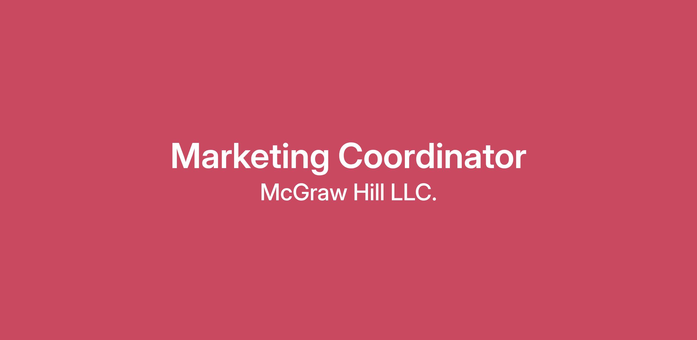 OverviewMake an Impact! At McGraw Hill we create best-in-class, next-generation learning platforms that are used by millions of students and educators worldwide from kindergarten through graduate school. Our goal is to accelerate student success through intuitive and effective learning tools and content that maximize a teacher’s time and a student’s learning experience. We do all of this in a supportive, collaborative environment where you can grow your career in a way that fits into your life. How can you make an impact? McGraw Hill, the leading provider of digital and print educational resources, is looking for a Marketing Coordinator to provide internal support for a team of marketing managers in McGraw Hill’s higher ed division and to perform a broad range of tasks, including the coordination of special projects, and acting as liaison with other higher education functional teams. The Marketing Coordinator is responsible for the development and promotion of new and existing products, including competitive analysis and the development of sales tools and other collateral. This individual will also lead the management and processing of contracts with third-party vendors and freelancers conducting business with the business unit and respective marketing managers. The position works closely with marketing managers and across other teams to maintain a robust and up-to-date collection of assets and information and to drive sales of new and existing products. This is a remote position open to applicants authorized to work for any employer within the United States. Applicants must be located in Eastern or Central time zones. What you will be doing: • Occasional travel may be required, such as attendance at on-site meetings, trade shows, and annual sales meetings.• Partner with the marketing and portfolio teams to update and create sales tools, marketing collateral, and product information in internal systems. • Support marketing managers in the execution of their marketing tactics which may include activities such as setting up and tracking webinars, creating surveys, running reports, ordering promotional materials, conference and event planning, and more.• Manage and process contracts with vendors and freelancers while working closely with the finance, procurement, and contracts teams.• Establish and/or monitor budgets for all assigned projects, contracts, or freelancers.• Monitor and foster the flow of information across teams, including sales, marketing, portfolio, finance, procurement, and contracts.• Analyze and evaluate competing products, create competitive comparisons, and make recommendations to marketing managers based upon perceived strengths and weaknesses of the competition.• Perform office support duties such as submitting invoices, ordering supplies, creating contracts, monitoring supply budgets, updating databases to ensure data accuracy, maintaining project files, etc. We’re looking for someone with: • A bachelor's degree.• Strong analytical and critical-thinking skills.• Excellent communication skills (verbal and written).• Strong organization, project management, and attention-to-detail skills.• A passion for being proactive, taking on new challenges and processes, and self-management.• Proficiency in the Microsoft Office suite.• Experience using Salesforce, Asana, Qualtrics, Zoom, and Oracle. Why work for us? The work you do at McGraw Hill will be work that matters. We are collectively designing content that will build the future of education. Play your part and experience a sense of fulfilment that will inspire you to even greater heights. The pay range for this position is between $49,000 - $54,000 annually. However, base pay offered may vary depending on job-related knowledge, skills, experience, and location. Additionally, a full range of medical and/or other benefits may be provided, depending on the position offered. Click here to learn more about our benefit offerings. McGraw Hill recruiters always use a “@mheducation.com or @careers.mheducation.com” email address and/or from our Applicant Tracking System, iCIMS. Any variation of this email domain should be considered suspicious. Additionally, McGraw Hill recruiters and authorized representatives will never request sensitive information in email. 50244