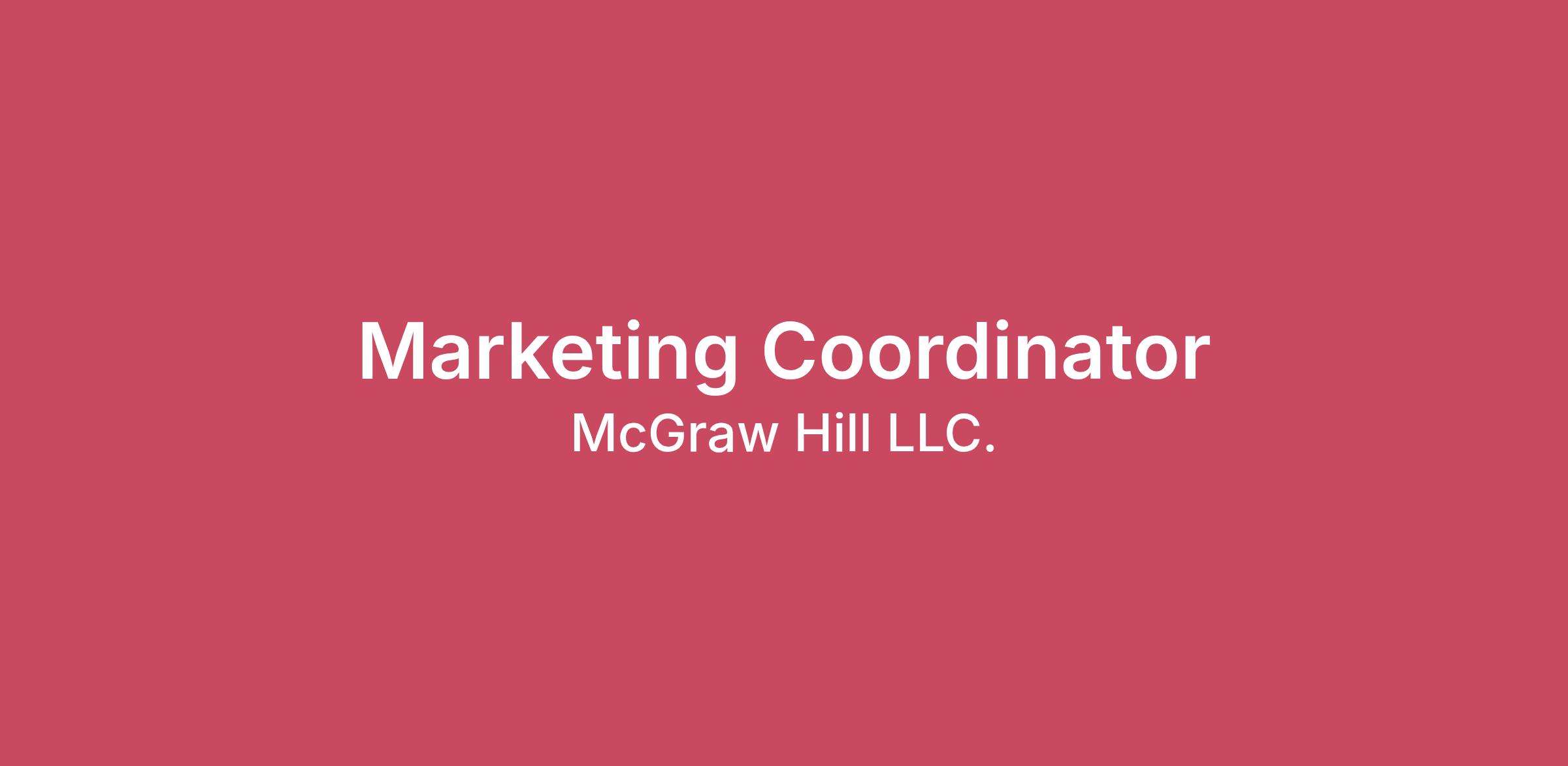 OverviewMake an Impact! At McGraw Hill we create best-in-class, next-generation learning platforms that are used by millions of students and educators worldwide from kindergarten through graduate school. Our goal is to accelerate student success through intuitive and effective learning tools and content that maximize a teacher’s time and a student’s learning experience. We do all of this in a supportive, collaborative environment where you can grow your career in a way that fits into your life. How can you make an impact? McGraw Hill, the leading provider of digital and print educational resources, is looking for a Marketing Coordinator to provide internal support for a team of marketing managers in McGraw Hill’s higher ed division and to perform a broad range of tasks, including the coordination of special projects, and acting as liaison with other higher education functional teams. The Marketing Coordinator is responsible for the development and promotion of new and existing products, including competitive analysis and the development of sales tools and other collateral. This individual will also lead the management and processing of contracts with third-party vendors and freelancers conducting business with the business unit and respective marketing managers. The position works closely with marketing managers and across other teams to maintain a robust and up-to-date collection of assets and information and to drive sales of new and existing products. This is a remote position open to applicants authorized to work for any employer within the United States. Applicants must be located in Eastern or Central time zones. What you will be doing: • Occasional travel may be required, such as attendance at on-site meetings, trade shows, and annual sales meetings.• Partner with the marketing and portfolio teams to update and create sales tools, marketing collateral, and product information in internal systems. • Support marketing managers in the execution of their marketing tactics which may include activities such as setting up and tracking webinars, creating surveys, running reports, ordering promotional materials, conference and event planning, and more.• Manage and process contracts with vendors and freelancers while working closely with the finance, procurement, and contracts teams.• Establish and/or monitor budgets for all assigned projects, contracts, or freelancers.• Monitor and foster the flow of information across teams, including sales, marketing, portfolio, finance, procurement, and contracts.• Analyze and evaluate competing products, create competitive comparisons, and make recommendations to marketing managers based upon perceived strengths and weaknesses of the competition.• Perform office support duties such as submitting invoices, ordering supplies, creating contracts, monitoring supply budgets, updating databases to ensure data accuracy, maintaining project files, etc. We’re looking for someone with: • A bachelor's degree.• Strong analytical and critical-thinking skills.• Excellent communication skills (verbal and written).• Strong organization, project management, and attention-to-detail skills.• A passion for being proactive, taking on new challenges and processes, and self-management.• Proficiency in the Microsoft Office suite.• Experience using Salesforce, Asana, Qualtrics, Zoom, and Oracle. Why work for us? The work you do at McGraw Hill will be work that matters. We are collectively designing content that will build the future of education. Play your part and experience a sense of fulfilment that will inspire you to even greater heights. The pay range for this position is between $49,000 - $54,000 annually. However, base pay offered may vary depending on job-related knowledge, skills, experience, and location. Additionally, a full range of medical and/or other benefits may be provided, depending on the position offered. Click here to learn more about our benefit offerings. McGraw Hill recruiters always use a “@mheducation.com or @careers.mheducation.com” email address and/or from our Applicant Tracking System, iCIMS. Any variation of this email domain should be considered suspicious. Additionally, McGraw Hill recruiters and authorized representatives will never request sensitive information in email. 50244