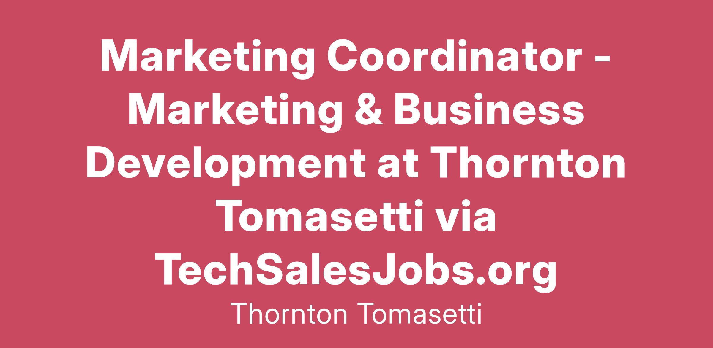 Marketing Coordinator - Marketing & Business Development at Thornton Tomasetti via TechSalesJobs.org