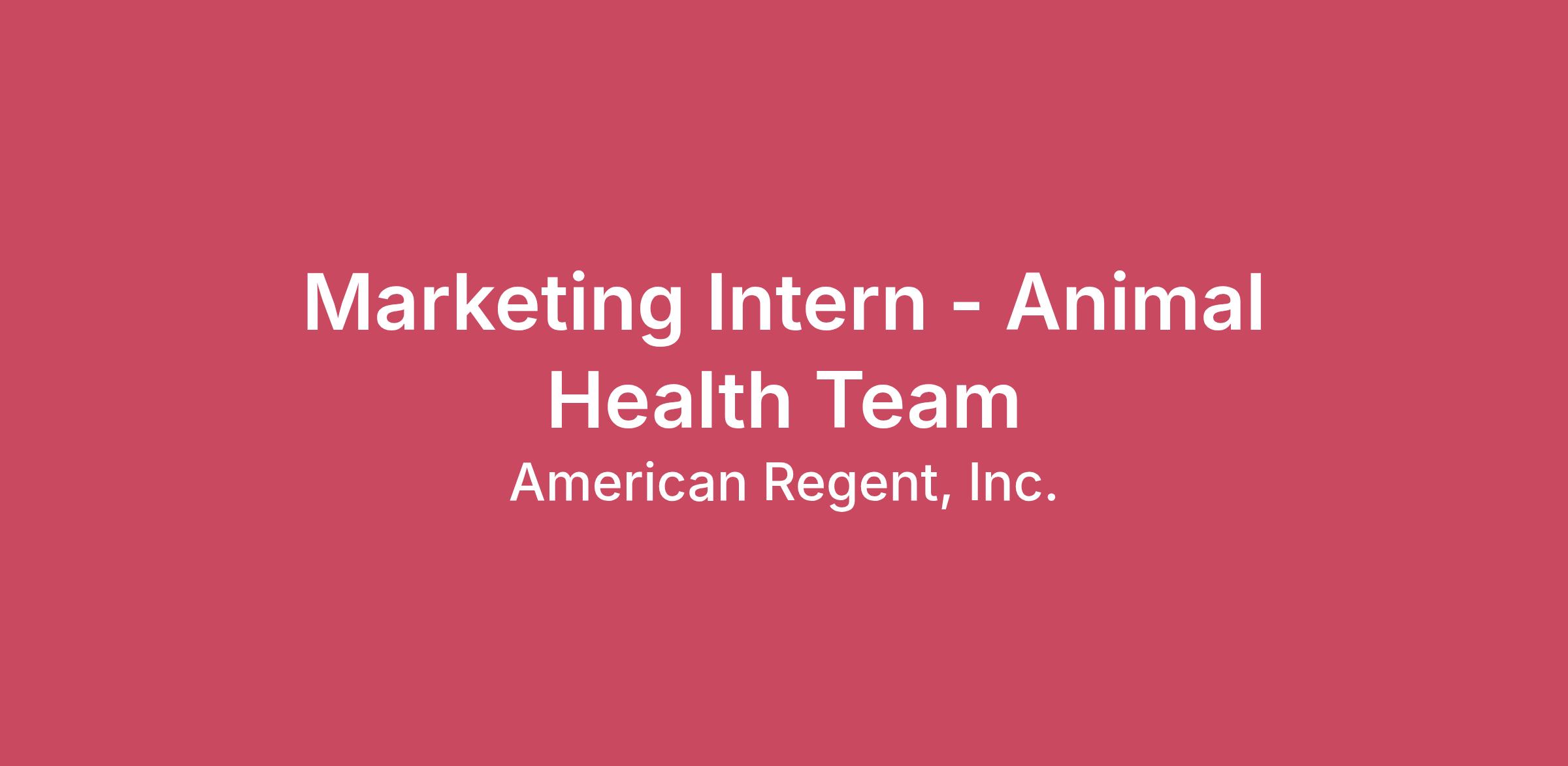 Nature and ScopeThe Marketing Intern position is responsible for supporting a Marketing Manager, Animal Health in the development and execution of marketing, advertising and promotional activities for both veterinary professionals and pet parents for the American Regent Animal Heath product portfolio.Ability to a 13 -week program (from May 18, 2026 to August 14, 2026) and commit to 40 hours per week working remotely.Essential Duties and ResponsibilitiesNothing in this job description restricts management’s right to assign or reassign duties and responsibilities to this job at any time.Support marketing activities to drive sales growth, including but not limited to digital and print media campaigns, paid search and promotions.Support execution across channels and audiences in partnership with external marketing agency.Own a special project for the summer, such as developing new email campaigns and journeys in Salesforce Marketing Cloud. Generate insights from multiple data resources and monitor the competitive environment.Measure and track product performance and evaluate ROI of marketing activities.Coordinate with marketing operations and the cross-functional team to ensure the right marketing materials and giveaways are available when and where they’re needed. Perform any other tasks/duties as assigned by management.Education Requirements and QualificationsTo perform this job successfully, an individual must be able to perform each essential duty satisfactorily. The requirements listed below are representative of the knowledge, skill and/or ability required.Currently pursuing a bachelor's or master's degree in marketing, communications, business or similar field.Excellent written and verbal communication skills.Strong project management skills with attention to detail.Ability to work independently and well with others.Creative thinker with a knack for problem-solving.Strong computer skills, particularly Microsoft Excel and PowerPoint.Preferred qualifications:Experience with marketing, sales, or pharmaceutical industry.Experience with Google Analytics, Tableau or Salesforce marketing cloud.Physical Environment and RequirementsStandard physical requirements of desk-based work. Expected Hourly Rate:$20.00 - $23.00The hourly rate displayed is the minimum and maximum hourly rate of compensation for the role that the employer in good faith believes to be accurate at the time of the posting of an advertisement for the role. Actual compensation for the role will be based on a number of different factors including but not limited to the candidate’s qualifications, education, knowledge, skills and experience.American Regent celebrates diversity and we are committed to creating an inclusive environment for all employees. We are an Equal Opportunity Employer and all qualified applicants will receive consideration for employment without regard to race, color, religion, sex, sexual orientation, gender identity, national origin, disability status, or protected veteran status.Applicants have rights under Federal Employment Laws. FMLA poster: https://www.dol.gov/whd/regs/compliance/posters/fmlaen.pdfKnow Your Rights: Know Your Rights: Workplace discrimination is illegal (eeoc.gov)Employee Polygraph Protection Act: https://www.dol.gov/whd/regs/compliance/posters/eppac.pdfAlert: We’re aware of individuals impersonating our staff to target job seekers. Please note:· All legitimate communication will come directly from a verified ARI recruiter either by phone or via an americanregent.com email address.· Our recruiting process includes multiple in person and/or video interviews and assessments.· If you are unsure about the legitimacy of a message, contact John Rossini at jrossini@americanregent.com before responding.· We never request payment, bank information, or personal financial details during our offer process.Your security is important to us, and we encourage you to stay vigilant when job searching.American Regent Inc. endeavors to make https://careers.americanregent.com/ accessible to any and all users. If you would like to contact us regarding the accessibility of our website or need assistance completing the application process, please email hrtalentacquisition@americanregent.com.