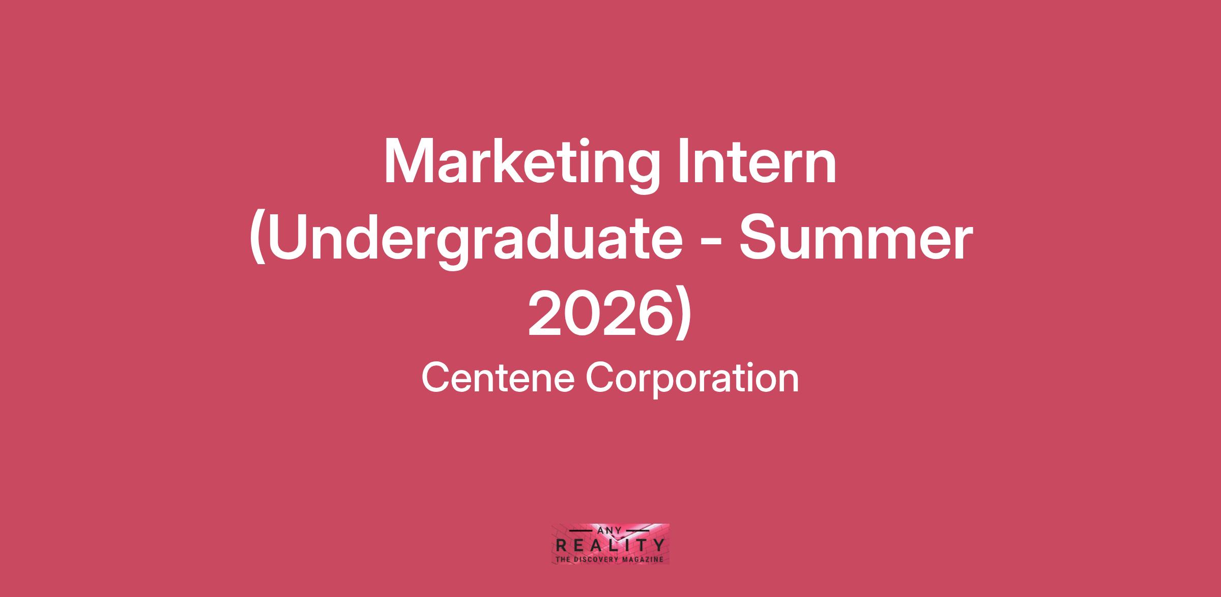 You could be the one who changes everything for our 28 million members as an Intern at Centene. During this 12-week program, you'll learn more about Centene and how we're transforming the health of the community, one person at a time. Position Purpose: Participate in a rotational learning experience across all key functional areas of marketing—including Brand, Performance Marketing, Research & Analytics, Media & Digital, Marketing Operations, and Integrated Marketing. (imagine this as first 2-3 weeks of internship before aligning to a specific area/project where we can align their interests and strengths with a business need)Support campaign development, creative reviews, and performance tracking alongside cross-functional partners.Conduct research and gather insights to inform marketing strategies and audience targeting.Assist with content development, internal communications, and presentation materials.Manage project timelines, documentation, and coordination between teams.Skills/Experience:· Pursuing a degree in Marketing, Communications, Business, or a related field.· Naturally curious and eager to understand how all parts of marketing connect.· Strong written and verbal communication skills with a collaborative mindset.· Highly organized, detail-oriented, and proactive in problem-solving.· Comfortable working in a dynamic environment with multiple priorities.· A positive attitude and sense of humor, because we believe great work and fun can (and should) coexistLocation: Can work in any of the 50 US States.Remote(summer): 40/hrs. a week, 12 week program (May-August2026)Pay Range :$18-26/hr.Must be authorized to work in the U.S. without the need for employment-based visa sponsorship now or in the future. Sponsorship and future sponsorship are not available for this opportunity, including employment-based visa types H-1B, L-1, O-1, H-1B1, F-1, J-1, OPT, or CPT.Learn about various processes and functions within the Managed Care industry and develop professionally by contributing to projects that support the business.Learn various job functions within the Managed Care industry and explore various career opportunitiesApply academic knowledge and learn new skills by contributing to various projectsResearch various legal, regulatory, and other topics within functional area and industryAttend training and development presentations to enhance professional competenciesPerforms other duties as assignedComplies with all policies and standardsEducation/Experience: High school diploma or equivalent. Must be enrolled in an undergraduate program at an accredited university or college, preferably in a field related to the hiring department through the internship period.Centene offers a comprehensive benefits package including competitive pay, health insurance, 401(k) and stock purchase plans, tuition reimbursement, paid time off plus holidays, and a flexible approach to work with remote, hybrid, field, or office work schedules. Actual pay will be adjusted based on an individual's skills, experience, education, and other job-related factors permitted by law, including full-time or part-time status. Total compensation may also include additional forms of incentives. Benefits may be subject to program eligibility.Centene is an equal opportunity employer that is committed to diversity, and values the ways in which we are different. All qualified applicants will receive consideration for employment without regard to race, color, religion, sex, sexual orientation, gender identity, national origin, disability, veteran status, or other characteristic protected by applicable law.Qualified applicants with arrest or conviction records will be considered in accordance with the LA County Ordinance and the California Fair Chance Act