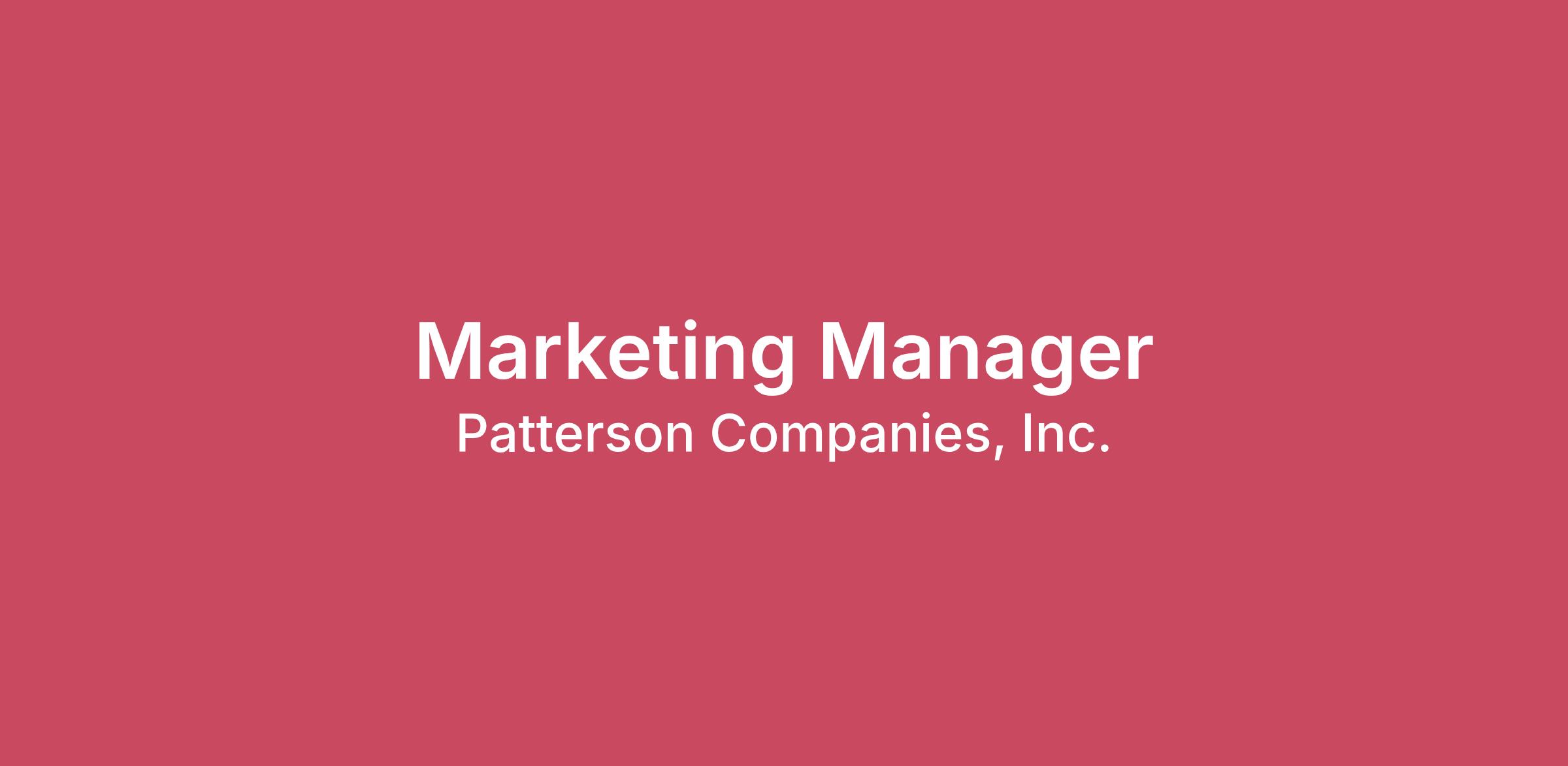 Patterson isn't just a place to work, it's a partner that cares about your success.One of the distinguishing marks of our company is the talented people who embrace the people-first, always advancing, and results-driven culture. Professional growth abounds in this motivating environment. We value the diverse talents and experiences our employees bring to Patterson and believe that they build a stronger and successful organization.As a Marketing Manager for the animal health private label division, you will be responsible for launching new products in the animal health space and continuing to grow existing product lines in all market channels (direct-to-producer, veterinary, and dealer markets). The Marketing Manager develops strategic plans to meet our company's goals, to build brand awareness, grow product sales, and aid the sales team to drive product placement in the animal health industry. The Marketing Manager will also collaborate with the animal health portfolio managers to find new products to bring to market, research market potential, and understand potential pain points and challenges within the industry.Ability to work remotely.Essential FunctionsTo perform this job successfully, an employee must be able to perform each essential function satisfactorily, with or without reasonable accommodation. To request a reasonable accommodation, notify Human Resources or the manager who oversees the position.Plan, develop (including copywrite) and execute annual and quarterly marketing plans to promote the assigned segment/categoryWork closely with the Director of Private Label to identify targeted product growth opportunitiesDevelop relevant messaging and promotion offers to engage these target segments to purchaseDevelop customer-facing tools and marketing material to enable the field-based sales organization to close deals and deliver profitable growthAssist with process improvement projects to streamline current approachesUnderstand target customer pain points and what is valued through voice of customer researchStay current on market trends, best practices and the competitive landscape, adapting strategies to changing business conditionsAttend external networking/ learning events to ensure awareness of marketing advancementsAttend trade shows, buying shows, and sales meetings to work the booth or present to the teamsPerform other Marketing Manager duties as assignedJob QualificationsRequired QualificationsBachelor’s Degree in Marketing, Communications or related fieldAt least 5 years of Marketing/Communications experience requiredProven ability to work with sales representatives and an understanding of the customer sales cycleKnowledge of the animal health space, preferably in the production animal spaceUnderstanding of the dealer, veterinary, and direct-to-producer channelsProven ability to develop and execute a strategic marketing planExperience meeting project deadlines and achieving KPI goals while delivering positive ROIAppreciation for and understanding of various marketing technologies e.g. marketing automationStrong communication skills, both verbal and writtenConfident, outgoing, detail-oriented self-starterCurious with a drive to achieve results and develop /sharpen marketing skillsTeam player who can function independently and thrives in team collaborationAbility to prioritize multiple deadlinesAbility to adapt quickly to shifting prioritiesExcellent organization and project management skillsAbility to utilize Excel spreadsheetsAbility to read through large amounts of data to find trends, opportunities, pain points, etc.Ability to create presentations and present to large groups of peopleWorking ConditionsPhysical DemandsOperating a computer or other office devices for the majority of the workdayMay occasionally need to move packages up to 10 pounds such as office supplies or equipmentMust be able to communicate with others in person, over the phone, and in writingMust be able to understand and effectively exchange accurate information with others such as coworkers, customers and vendorsMust be able to read and interpret various electronic and written documentsEnvironmental FactorsThis position is in an office environment in which team members occupy desks in assigned areas or at meeting/collaboration spaces within the building. The building’s primary work areas consist of desks, chairs, computers and other office equipment and devices for professional services.TravelThis position will have required travel up to 35 - 40% of the time (off-site meetings, shows, and customer events). What's In It For You:We provide competitive benefits, unique incentive programs and rewards for our eligible employees:Full Medical, Dental, and Vision benefits and an integrated Wellness Program401(k) Match Retirement Savings PlanPaid Time Off (PTO)Holiday Pay & Floating HolidaysVolunteer Time Off (VTO)Educational Assistance ProgramFull Paid Parental and Adoption LeaveLifeWorks (Employee Assistance Program)Patterson Perks ProgramThe potential compensation range for this role is below. The final offer amount could exceed this range, based on various factors such as candidate location (geographical labor market), experience, and skills. $85,500.00 - $113,966.67EEO StatementPatterson provides equal employment opportunities to applicants and employees without regard to race; color; sex; gender identity; sexual orientation; religious practices and observances; national origin; pregnancy, childbirth, or other related medical conditions; status as a protected veteran or spouse/family member of a protected veteran; or disability.