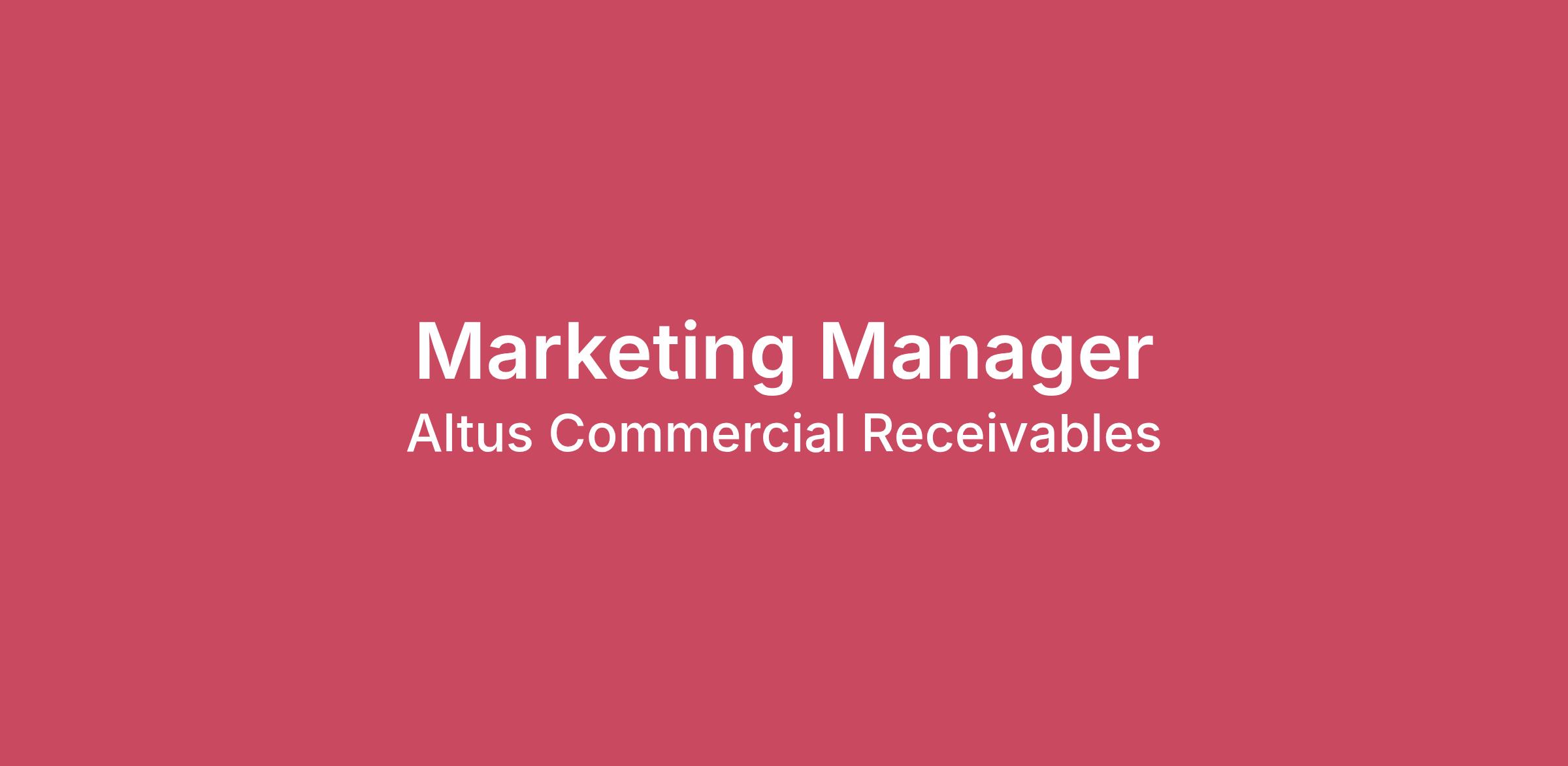 Altus Commercial Receivables is seeking a Marketing Manager to lead the coordination, execution, and operational management of our marketing initiatives. This role ensures marketing efforts—including events, communications, and materials—are well organized, clearly prioritized, and delivered on schedule.The Marketing Manager serves as a central connector across Marketing, Sales, and internal teams, bringing structure, visibility, and consistency to how marketing work moves from request to completion. Success in this role requires strong organizational skills, cross‑functional collaboration, and the ability to manage multiple initiatives with clarity and accountability. * Remote PositionWhat You’ll DoMarketing Operations & Calendar ManagementOwn and manage the marketing calendar, serving as both a campaign and content calendar that tracks initiatives, deliverables, and projects across teamsMaintain clear visibility into upcoming activities, deadlines, dependencies, and prioritiesManage marketing workflows, intake processes, and prioritization across events, communications, and content initiativesEstablish and maintain clear timelines, owners, and approval paths for marketing workPrepare regular status updates, timelines, summaries, and dashboards for leadership visibility, including key metrics and KPIsEvents & ProgramsCoordinate internal and external events, including tradeshows, conferences, and client eventsManage event logistics, vendors, materials, timelines, and budget trackingEnsure events are executed consistently, professionally, and in alignment with company objectivesTrack event deliverables and follow‑up actions to ensure completion and accountabilityMarketing Materials & Collateral OversightOversee the intake, prioritization, and delivery of marketing materials in partnership with internal teams or external resourcesAct as the primary point of contact for marketing material requests, timelines, and approvalsPartner with Sales and Leadership to identify ongoing collateral and enablement needsEnsure all materials align with brand standards, messaging, and business prioritiesCoordinate refresh cycles for key marketing and sales materialsMaintain a comprehensive collateral inventory, including version control, revisions, and update historyCross‑Functional Collaboration & CommunicationCollaborate closely with Sales, Leadership, and internal stakeholders to align marketing execution with business prioritiesEnsure consistency of messaging across events, communications, content, and materialsCoordinate with external vendors and partners supporting events, materials production, and marketing initiativesServe as a reliable point of coordination to keep stakeholders informed, aligned, and on trackWhat We’re Looking For Bachelor’s degree in marketing, Communications, Business, or a related field4–7 years of experience in marketing, marketing operations, or program managementStrong organizational and project management skills with the ability to manage multiple initiatives simultaneouslyProven experience partnering cross‑functionally with Sales, Leadership, and external vendorsClear, confident communicator who can provide concise updates and leadership‑ready summariesComfortable working in a fast‑moving environment that requires prioritization and follow‑throughExperience with Salesforce CRM and website CMS platforms preferredFamiliarity with SEO, SEM, and PPC programs is a plusWhy You’ll Love Working HereAt Altus, you’ll join a fast-moving team where your work directly contributes to our growth and brand presence. This is a hands-on role where you’ll gain experience across marketing, digital campaigns, and events, making it an ideal opportunity to learn and grow your marketing career.Compensation and Benefits: Full benefit package with health, dental, vision, life and disability coverage optionsGenerous paid time off policy and 9 paid holidays $65,000.00 to 85,000.00 per year (DOE)401(k) plan with company matching and immediate vesting We look forward to you joining the team! Altus Commercial Receivables is an Equal Opportunity Employer. We do not discriminate on the basis of race, color, religion, marital status, age, national origin, ancestry, physical or mental disability, medical condition, pregnancy, genetic information, gender, sexual orientation, gender identity or expression, veteran status, or any other status protected under federal, state, or local law.