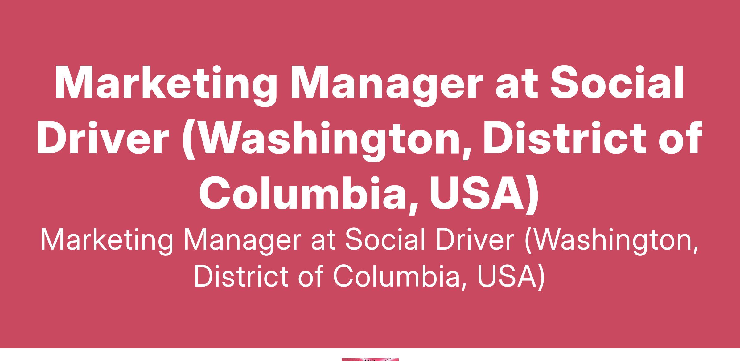 Marketing Manager at Social Driver (Washington, District of Columbia, USA)