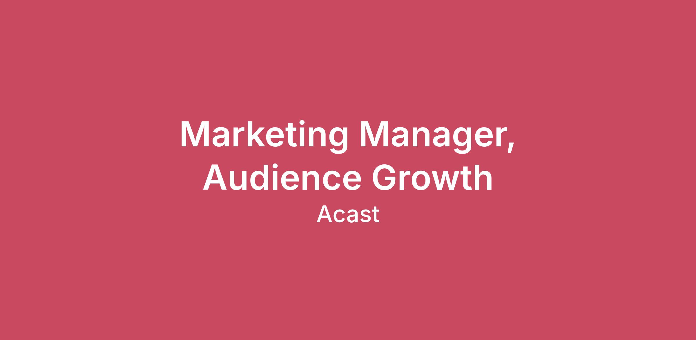 About AcastSince 2014, Acast has been building the world’s most valuable podcast marketplace, creating the technology that connects podcast creators, advertisers, and listeners. Its marketplace spans more than 140,000 podcasts, 3,300 advertisers, and one billion quarterly listens. Crucially, those listens are monetized wherever they happen—across any podcast app or listening platform.About the roleWe're looking for a strategic, client-focused Marketing Manager to join Acast as a key leader within Acast Creative Studios and a contributor to our broader Brand Marketing initiatives. This is a dynamic, cross-functional role at the intersection of branded content, audience strategy, and marketing and is ideal for someone who thrives on translating client ambitions into compelling audio experiences that deliver real results. You'll serve as a trusted strategic partner to our clients while collaborating closely with Sales, Production, and Marketing teams to ensure every project is executed to the highest standard. This role balances big-picture thinking with hands-on delivery. You're equally comfortable shaping a content strategy as you are managing day-to-day project milestones.What you'll doClient Strategy & Acast Creative Studios ProjectBuild and lead strategic client relationships for Acast Creative Studios, acting as the primary marketing and strategy partner from discovery through delivery.Own the discovery and planning phases of branded content engagements conducting audience and market research, developing personas, identifying creative opportunities, and defining content strategy.Facilitate collaborative ideation sessions that translate client goals into clear, actionable content and audio strategies. Partner with Sales and Production teams to align on scope, maintain quality, and deliver exceptional results across all Acast Creative Studios projects. Work hand-in-hand with Production Team on day-to-day project management for Acast Creative Studios productions, keeping timelines, deliverables, and client expectations on track throughout the full production lifecycle. Audience Development Lead audience development strategy for client content, identifying target audiences, growth opportunities, and distribution approaches across owned, earned, and paid channels. Embed audience growth thinking into every stage of the process, from early strategy through to launch in close collaboration with producers and marketing partners. Deliver post-campaign analysis and client wrap reports with clear, actionable insights on reach, engagement, and audience impact. Capture and share audience development learnings to benefit the broader Acast Creator Network and content portfolio. Acast Brand & Growth Marketing Contribute strategic input to Acast's Brand Marketing initiatives and own the execution of select content marketing campaigns. Support key marketing tentpole campaigns to strengthen Acast's brand presence and marketing objectives. Plan, manage, and optimize paid social campaigns for clients looking to amplify social-first content in partnership with Acast creators.Who you are6+ years of experience in marketingProven experience in audience growth marketing, with a track record across social and digital platformsStrong relationship-building and presentation skills - you're confident communicating with clients at all levelsA strategic mindset, capable of identifying opportunities and turning insights into actionable solutionsProficiency in Google Suite and campaign reporting toolsA genuine passion for audio, media, storytelling, and creatorsBonus points for experience working with influencers, content creators, or social media platformsWillingness to travel as neededLocationNYC-area candidates are preferred as we have an office in SoHo. However, we are open to fully remote candidates for the right person.Compensation$100K annual + bonusCultureAcast is committed to creating a diverse environment and is proud to be an equal opportunity employer. All qualified applicants will receive consideration for employment regardless of race, gender, sexual orientation, religion, ethnicity, national origin or any of the other wonderful characteristics that make us different.Culture is our number one priority as a business. We believe people come first, and we work every day to enable autonomy, continuous improvement and bring out the best in people. We’re global and have remote teams, so it’s even more important that we strive for an open, inclusive and caring environment where everyone feels visible and welcome.We consider ourselves a modern organization driven by strong values to create the best, most fulfilling and nurturing culture.We very much look forward to finding the next great person to join our cause!
