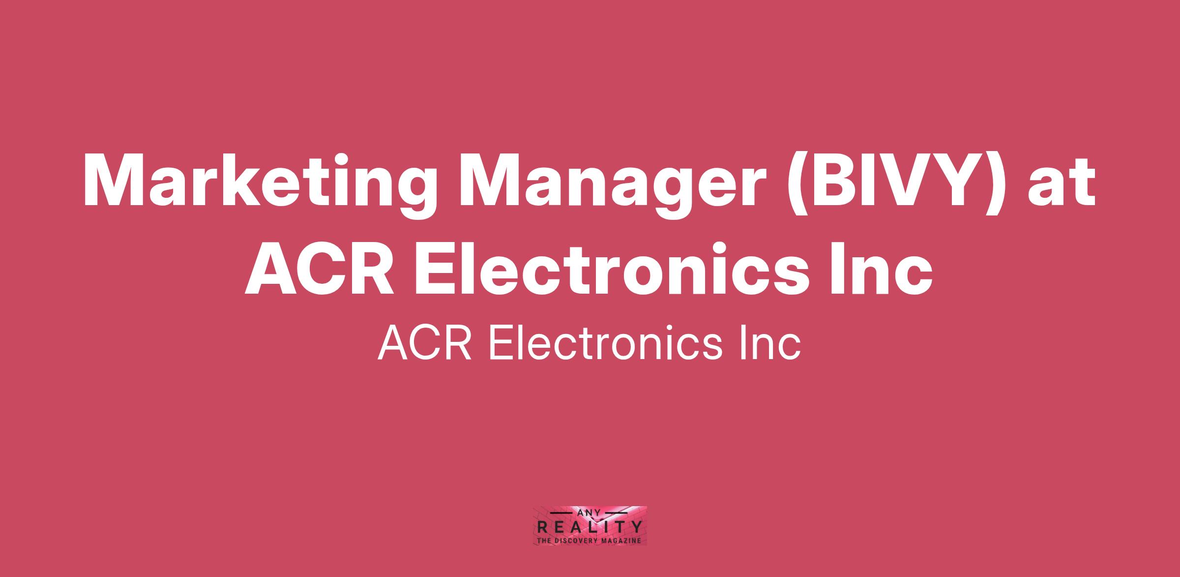 This role leads all marketing initiatives for the ACR Bivy product line. It serves as the lead marketing professional for the brand, managing all aspects of marketing strategy and market, in cooperation with the ACR Electronics marketing team. The role develops and implements comprehensive marketing to drive business growth across consumer and enterprise segments.
