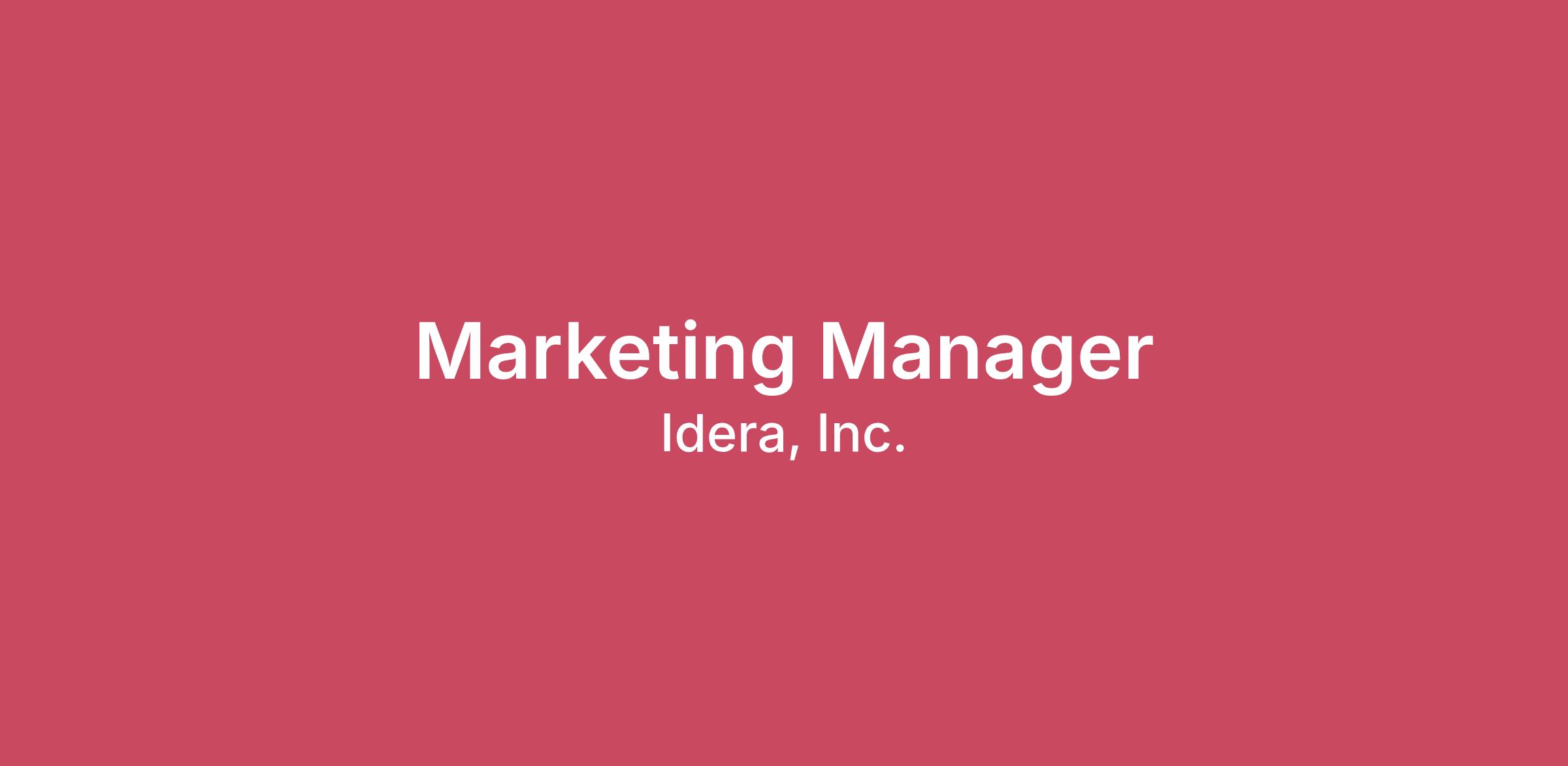 About the Job:We are looking for a talented and enthusiastic individual to join our marketing team as Marketing Manager. In this role, you will develop and execute integrated demand generation strategies and campaigns to produce high-quality leads and expand our customer base. Leveraging your expertise in the software industry, you will craft targeted marketing programs to engage and nurture prospects throughout the buyer journey, ultimately driving conversion and revenue growth.This position requires excellent organizational skills, time management, technical aptitude, brand management, personal accountability, and professionalism. Your contribution will have an immediate impact on our organization, playing a critical role in a well-established (and much-loved) brand. You must embrace and enjoy working in a fast-paced, action-oriented culture under the umbrella of a larger supporting corporate parent (Idera, Inc.). IDERA is a challenging but rewarding environment that values performance and results while offering flexibility around schedule and geographic location/work-from-home (WFH).What You Will Do:Develop and execute integrated campaigns targeting potential customers (both technical users and decision makers), including email marketing, content marketing, webinars, social media, paid advertising, and more.Improve our lead-to-customer conversion rate by refining messaging, inbound and outbound programs, and creative.Coordinate with other marketing team members to create compelling marketing collateral tailored to various stages of the buyer journey.Build out email campaigns by different segments to engage prospects, build relationships and move leads through the funnel.Run webinars that align with our strategy to build pipeline.Communicate and report on KPIs, campaign performance and use data-driven insights to identify opportunities for campaign optimization, and improvement of website traffic, lead quality, lead velocity, and pipeline generation.Partner closely with sales, marketing, and operations to develop a coordinated content strategy and campaign execution for both inbound and outbound lead generation.Work closely with the sales team to understand their needs and develop sales outreach and nurture campaigns that achieve shared goals and objectives.Build and manage relationships with third-party vendors and/or agency partners, such as industry influencers, thought leaders, and content syndication providers, to drive additional lead generation opportunities.Stay up to date with industry trends, competitor activities, and emerging technologies in the database ecosystem.Manage allocated marketing budget and identify resources to maximize lead generation performance.About You:Minimum of 5+ years of experience developing and executing successful demand generation marketing campaigns in B2B software/SaaS companies.An analytical mindset with the ability to generate and interpret data, and a passion for proving ROI.Hands-on experience working across digital marketing disciplines, including email marketing, PPC, SEO, online advertising, website optimization, and more.Excellent project management and organizational skills, with the ability to manage multiple projects simultaneously and deliver results on time and on budget.A succinct writer and clear communicator with the ability to create engaging content.Builder mindset who can work individually and collaborate effectively with others.Proactive in seeking out new opportunities and communicate often with transparency.Strong attention to detail. You can dive into the weeds with your team and pick up on the seemingly small, yet important, details.Display grit and determination, and maintain a bias for speed. We move very quickly, and will expect you to set a similar pace.Experience developing and executing successful demand generation campaigns, resulting in measurable lead generation and revenue growth.Proficiency in marketing automation platforms, CRM systems, and analytics tools. Experience with platforms such as Salesforce, Google Analytics, and social media management tools. An Equal Opportunity Employer - All qualified applicants will receive consideration for employment without regard to race, color, religion, sex, sexual orientation, gender identity, national origin, disability, or status as a protected veteran.By submitting your application, you acknowledge that Idera, Inc. will process and retain your resume and related personal information solely for recruitment and hiring purposes. Resumes of unsuccessful candidates will be securely deleted within twelve (12) months of the hiring decision, unless a longer period is required by law or you provide explicit consent for continued retention (e.g., for consideration for future opportunities).In compliance with applicable privacy laws, including the EU General Data Protection Regulation (GDPR), you have the right to request access to, correction of, or deletion of your personal information at any time by contacting compliance@idera.com. Idera, Inc. does not sell candidate data and will ensure that all personal information is processed securely and in accordance with relevant data protection regulations.An Equal Opportunity Employer - All qualified applicants will receive consideration for employment without regard to race, color, religion, sex, sexual orientation, gender identity, national origin, disability, or status as a protected veteran.