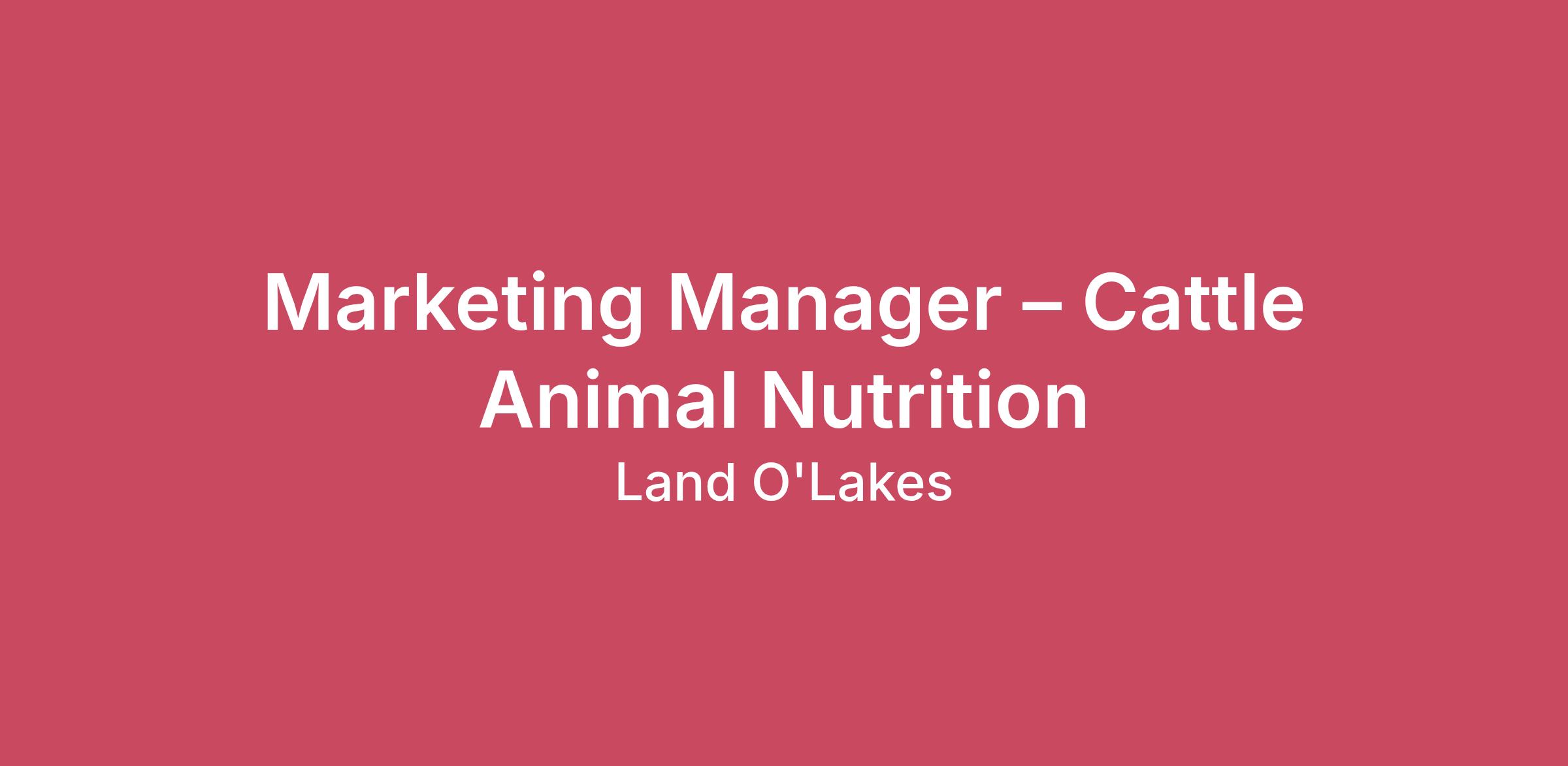 Marketing Manager – Cattle Animal NutritionThe target location for this role is Land O’Lakes Corporate Headquarters in Arden Hills, MN, however this position can be remote (virtual) and located anywhere in the USAMarketing Manager – Cattle Animal Nutrition Land O'Lakes Inc. is a $14 billion dairy and agricultural cooperative in the U.S. Fortune 200. There are three divisions within Land O'Lakes, Inc.: Dairy Foods ($5 Billion), Winfield Crop Inputs ($5 Billion) and Purina Animal Nutrition ($4 Billion).Position: We are seeking a passionate and experienced professional in the Cattle Animal Nutrition Industry to lead strategic growth initiatives for the Cattle feed portfolio, including oversite of our commercial specialty portfolio. This role owns the P&L and marketing strategy, including budget planning, product assortment and innovation, channel placement/strategy, pricing, and promotions.As a cross-functional team leader, you will collaborate with R&D, Sales, Central Marketing, Additive Marketing, Supply Chain, and Income Optimization to drive innovation and execute business plans. A strong emphasis on grass cattle with experience in the space is critical to success. The ideal candidate will also engage with key industry leaders and suppliers to advance strategic objectives.Job Scope:Responsible for developing and executing the Annual and Long-Range Business Plans; including Objectives, Goals, Strategies, Action Plans, Innovation Pipeline and Measurement (Key Performance Indicators)Sets and leads marketing strategy; Product, Price, Placement & Promotion decisions, as well as fit with company capabilities, competitive Environment, and delivering on consumer/customer needsHas P&L responsibility and is accountable for activities including (but not limited to) product improvements, SKU rationalization, market research (in conjunction with Corporate Insights team), innovation pipelineDevelops channel strategies based on consumer/customer needs to drive go-to-market strategiesManages marketing and trade budget. Anticipates business performance trends and makes adjustments necessary to achieve plan.Develops the tools, programs, trade and pricing strategies and promotions to support product initiativesLeads cross-functional teams (Sales, Central Marketing, Supply Chain, R&D, Finance, Income Optimization) to identify, prioritize and execute initiatives to meet business performance targets (volume, profit)Leverages sales, customer, and channel insights to develop product selling storiesEvaluate new business opportunities for strategic fit, operational feasibility, profit, volume, etc.Manage 1-2 direct reports (Associate Marketing Managers); Provide training, feedback, coaching, mentoring, and career path guidance.Competencies-Skills (Required): 5+ years marketing experience, including P&L ownershipMBA preferred; 4-year degree requiredStrong interpersonal, verbal and written skillsExperience in developing and managing business casesStrategic thinking, creativity, effective analytical skills, and problem-solving abilitiesAbility to lead cross-functional teams to deliver results in a positive mannerSelf-motivated and able to own projects and to execute with focus and accountabilityProficiency in MS Word, Excel and PowerPointCompetencies-Skills (Preferred): 5+ years of experience in the cattle industryPrevious B2B Marketing experienceExperience managing direct reports preferredFamiliarity with Stage Gate / New Product Development processExperience with brand and product marketing and business management, including annual/long-range planning, pricing/profit analysis, and execution of national/regional consumer and trade programsCross functional collaborator with experience in transformational changeTravel required up to 25%Education:Masters or related degree with business experience is strongly preferredThe salary range for this role is $123,920 - $185,880. In most cases, candidates offered employment can expect to be hired at a pay rate near the middle of our salary ranges.Land O'Lakes does not use Automated Decision-Making Technology, as defined by California law, to substantially replace human decision-making or make significant decisions about applications for employment or contracting opportunities. About Land O'Lakes, Inc.Join us and be part of a Fortune 250, farmer- and member-owned cooperative that is reimagining the business of food. We have been named a Top Workplace by Indeed and LinkedIn, and to the TIME 100 Most Influential Companies list.We provide a broad portfolio of benefits to keep you and your family at your best. Land O'Lakes is Where Your Future Takes Root.Land O’Lakes and our global entities support diversity in employment practices.Neither Land O’Lakes, nor its affiliates or search firms, will ever contact you and ask for confidential information over the phone or in email. If you receive a call or email like this, please do not provide the information being requested. If you need to submit a reasonable accommodation request to complete the employment application process, please call the HR Solution Center at 844-LOL-HR4U (844-565-4748) M-F 8:00am-4:30pm CT.