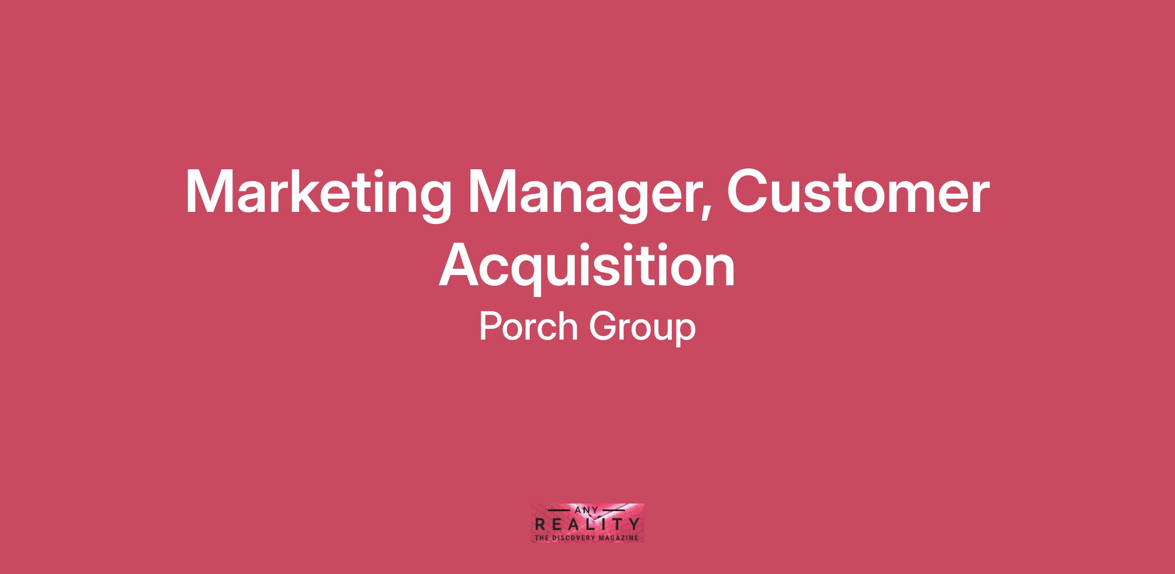 Porch Group is a leading vertical software and insurance platform and is positioned to be the best partner to help homebuyers move, maintain, and fully protect their homes. We offer differentiated products and services, with homeowners insurance at the center of this relationship. We differentiate and look to win in the massive and growing homeowners insurance opportunity by 1) providing the best services for homebuyers, 2) led by advantaged underwriting in insurance, 3) to protect the whole home.As a leader in the home services software-as-a-service (“SaaS”) space, we’ve built deep relationships with approximately 30 thousand companies that are key to the home-buying transaction, such as home inspectors, mortgage companies, and title companies.In 2020, Porch Group rang the Nasdaq bell and began trading under the ticker symbol PRCH. We are looking to build a truly great company and are JUST GETTING STARTED.Job Title: Marketing Manager, Customer AcquisitionLocation: United StatesWorkplace Type: Remote Job SummaryThe future is bright for the Porch Group, and we’d love for you to be a part of it as our Marketing Manager.This role is a strategic and hands-on Marketing Manager post to lead customer acquisition for our direct-to-consumer American Home Protect warranty brand. This role drives driving marketing strategy, optimization, channel expansion and managing agency and vendor partnerships.What You Will Do As A Marketing ManagerAgency Management and CollaborationFull agency management including creative direction, campaign approval and signoffs, adherence to budget, KPI tracking, reporting and relationship ownership.Strategy Development & PlanningEstablish and report on clear and measurable KPIs for customer acquisition campaigns.End-to-End Campaign ManagementDevelop, plan, and execute multi-channel acquisition campaigns across various platforms including testing and optimization strategies.Performance Tracking & AnalyticsUse analytics tools (e.g., Google Analytics, CRM platforms, or any marketing automation tools) to track campaign performance and customer acquisition metrics.Customer InsightsAnalyze data to identify trends, behaviors, and pain points in customer journeys, and apply insights to optimize acquisition strategies.Reporting & Stakeholder CommunicationProvide regular reports on the effectiveness of campaigns to stakeholders, highlighting successes, areas for improvement, and recommendations for future strategies.Sales & Operations AlignmentCollaborate with sales and operations teams to ensure seamless customer acquisition and post-sale experience.Budget Planning & AllocationOwn the customer acquisition budget and allocate resources effectively across various channels and initiatives to maximize results.Cost OptimizationRegularly assess the performance of each acquisition channel and adjust spend allocation to achieve the most cost-effective outcomes.What You Will Bring As A Marketing Manager7+ years of experience in marketing, with a strong emphasis on direct mail and customer acquisition. Managing multi-channel campaigns (digital, direct mail, social, etc.)Optimizing customer acquisition strategies using data-driven insightsBudget ownership and cost optimizationAgency and vendor managementCRM platformsMarketing automation toolsAnalytics platforms (e.g., Tableau)A/B testing and performance marketing tools. The application window for this position is anticipated to close in 2 weeks (10 business days) from November 17, 2025. Please know this may change based on business and interviewing needs.At this time, Porch Group does not consider applicants from the following states or jurisdictions for Remote positions: Alaska, Delaware, Hawaii, Iowa, Maine, Mississippi, Montana, New Hampshire, West Virginia, or the District of Columbia. What You Will Get As A Porch Group Team MemberPay Range*: $86,300.00 - $120,800.00*Please know your actual pay at Porch will reflect a number of factors among which are your work experience and skillsets, job-related knowledge, alignment with market and our Porch employees, as well as your geographic location. Additionally, you will be eligible to receive long-term incentive awards, subject to program guidelines and approvals. Our benefits package will provide you with comprehensive coverage for your health, life, and financial wellbeing. Our traditional healthcare benefits include three (3) Medical plan options, two (2) Dental plan options, and a Vision plan from which to choose.Critical Illness, Hospital Indemnity and Accident plans are offered on a voluntary basis.We offer pre-tax savings options including a partially employer funded Health Savings Account and employee Flexible Savings Accounts including healthcare, dependent care, and transportation savings options.We provide company paid Basic Life and AD&D, Short and Long-Term Disability benefits. We also offer Voluntary Life and AD&D plans.Both traditional and Roth 401(k) plans are available with a discretionary employer match.Supportlinc is part of our employer paid wellbeing program and provides employees and their families access to on demand guided meditation and mindfulness exercises, mental health coaching, clinical care and online access to confidential resources including will preparation.LifeBalance is a free resource to employees and their families for year-round discounts on things like gym memberships, travel, appliances, movies, pet insurance and more.Our wellness programs include flexible paid vacation, company-paid holidays of typically nine per year, paid sick time, paid parental leave, identity theft program, travel assistance, and fitness and other discounts programs. #LI-JS1#LI-RemoteWhat’s next?Submit your application and our Porch Group Talent Acquisition team will be reviewing your application shortly! If your resume gets us intrigued, we will look to connect with you for a chat to learn more about your background, and then possibly invite you to have virtual intervie