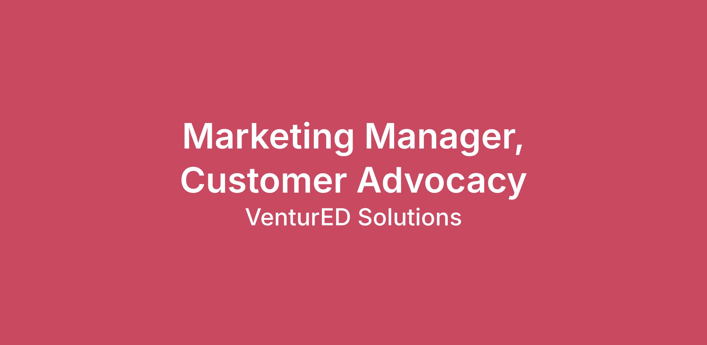 Marketing Manager, Customer AdvocacyPosition Overview:The Customer Advocacy Marketing Manager leads programs that turn satisfied customers into active advocates, strengthening brand credibility, accelerating revenue, and deepening customer loyalty. This role owns the strategy and execution of advocacy initiatives including customer communities, success storytelling, awards, and experiential programs. Working cross-functionally with Marketing, Sales, Partner Success, and Events, you will scale customer advocacy efforts that support pipeline acceleration, retention, and brand visibility.Position Description:Core Responsibilities: Customer Advocacy & Community With Partner Success, build and manage a scalable customer advocacy program, including advocate recruitment, engagement, and readiness for co-marketing activities.Maintain an advocate database, tracking engagement, participation, and impact.Partner with Sales to provide customer references, proof points, and advocacy support that accelerates deal cycles.Customer Storytelling & ContentOwn the customer advocacy content strategy, including case studies, testimonials, and customer success stories.Collaborate with Marketing, PR, and Sales Enablement to activate customer stories across campaigns, events, media, and lifecycle programs.Maintain a centralized repository of approved customer assets for cross-team use.Customer Experiences, Awards, & ProgramsDesign and execute customer awards, recognition programs, and high-impact experiences that strengthen relationships and generate buzz. Partner with Events and Marketing teams to amplify advocacy programs through campaigns, social, and field activations.Oversee branded onboarding or welcome experiences for key accounts where applicable.Engagement, Measurement & ImpactDefine success metrics for advocacy programs, including engagement, content usage, pipeline influence, and revenue impact.Track, analyze, and report performance to marketing and revenue leadership.Build and nurture long-term relationships with customer champions and advisory board members.Adjust priorities as needed to support high-impact advocacy initiatives and evolving business needs.Qualifications: Knowledge, Skills and Experience Bachelor’s degree in Marketing, Business, Communications, or a related field5–8 years of relative marketing experience, preferably in B2B SaaS or EdTech3–5 years specifically in:Customer marketing and advocacyBrand or content marketingCommunity or experiential marketingBuilding programs from scratchExperience working closely with Customer/Partner Success and Sales and with HubSpot or comparable CRM and marketing automation platforms.Some required domestic travel (10%)ESSENTIAL FUNCTIONS:Spends time at a computer workstation and desk.Moves throughout department or other locations to access or exchange information.May involve carrying loads up to 50 lbs. and being able to remain in a stationary position.May involve lowering oneself to file, and reaching, twisting or turning.Involves handling office materials, typing, writing and other tasks that require manual dexterity.Continuous listening.Ability to communicate information.This job may require accommodating different bodily movements and physical abilities.About Us:For more than 40 years, VenturEd Solutions (formerly part of Community Brands) has been supporting K-12 private and independent schools. We offer a comprehensive suite of software tools for admissions, enrollment, financial aid, tuition management, student information, communication, fundraising, and accounting. These tools empower schools to fulfill their missions and deliver exceptional educational experiences.Our leading software seamlessly integrates all aspects of school management, contributing to overall school success. Our suite of solutions includes Ravenna Admit, Ravenna Student Management, TADS, School and Student Services (SSS), Educate, TuitionPay, CampusPay, MySchoolWallet, and payment processing.Through collaborative partnerships with schools, we aim to enhance user experiences, streamline operations, and foster a strong sense of community. Our education solutions are flexible and customized to meet the unique needs of each school.Why Work Here?:Good People, Doing Good Things: Employees at VenturEd Solutions are techies and volunteers who strive to make the Company a great place to work. We dream big and are motivated to help our customers use the technology we create to improve the world around us.Medical, Dental & Vision BenefitsFlexible Planned Paid Time OffGenerous Sick LeavePurpose-Driven CultureWork-Life BalancePassionate About Community InvolvementCompany Paid Parental LeaveCompany Paid Short Term DisabilityRemote Flexibility