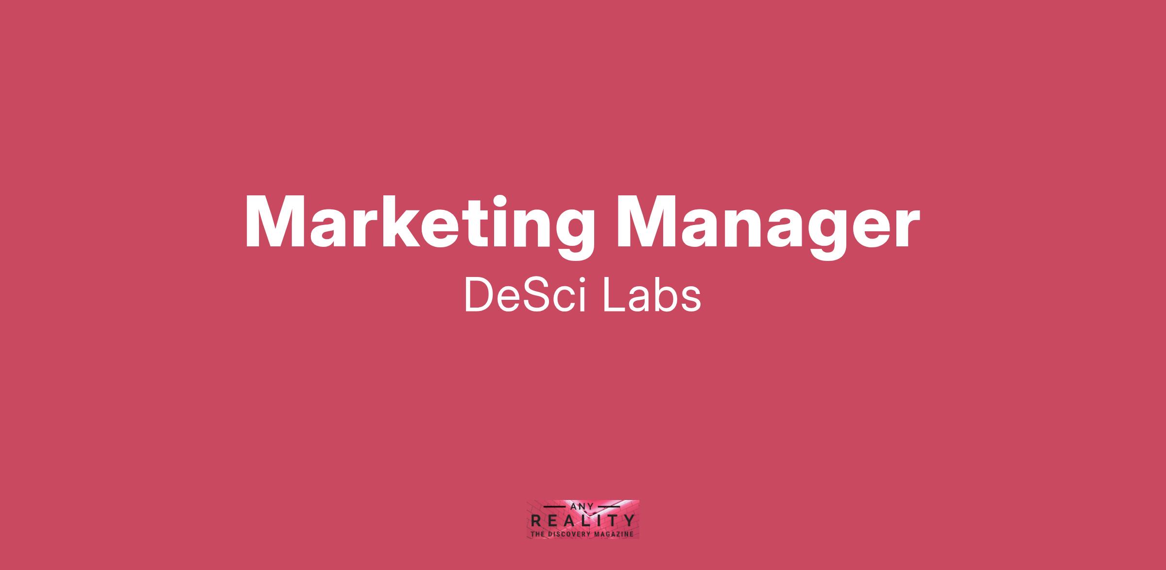 Weâre looking for our first in-house Marketing Managerâa dynamic, strategic thinker with a passion for growth. Youâll play a pivotal role in driving DeSci Labsâ global presence, engaging both the scientific community and the crypto ecosystem.