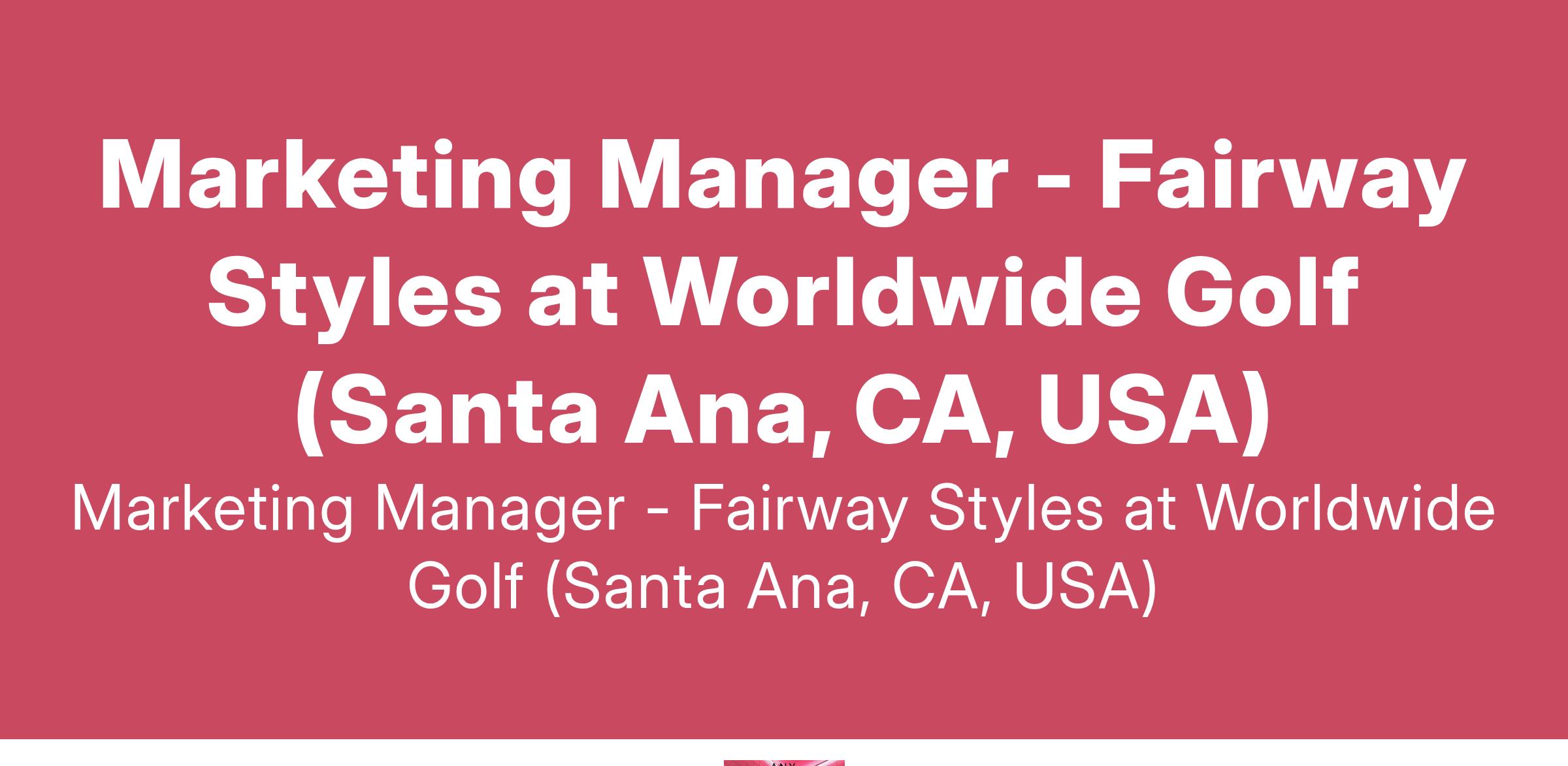 Marketing Manager - Fairway Styles at Worldwide Golf (Santa Ana, CA, USA)