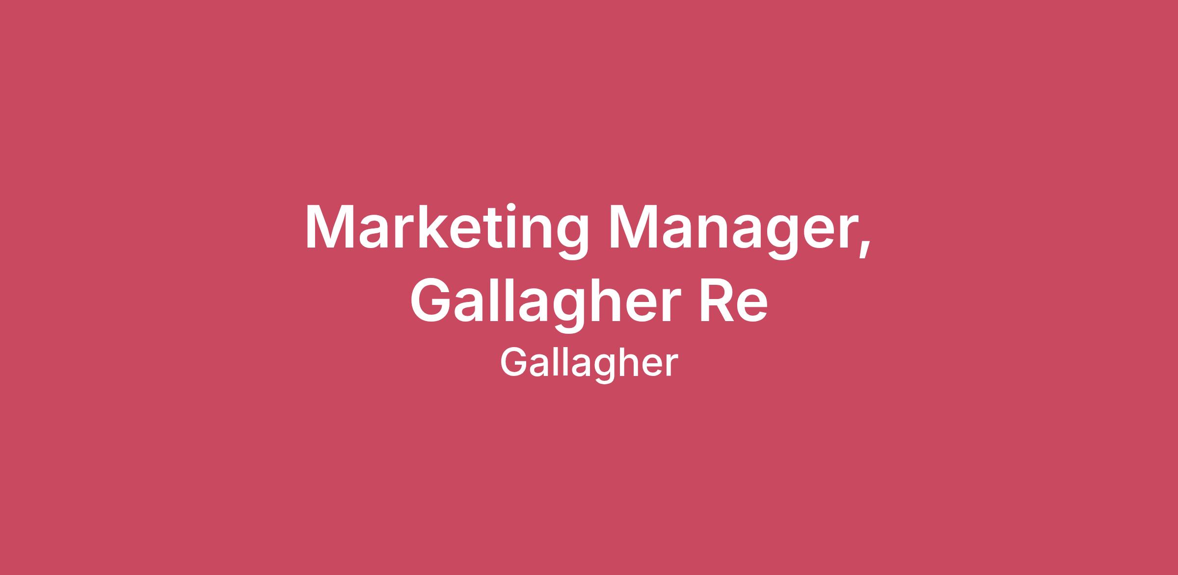 IntroductionWelcome to Gallagher - a global community of people who bring bold ideas, deep expertise, and a shared commitment to doing what’s right. We help clients navigate complexity with confidence by empowering businesses, communities, and individuals to thrive. At Gallagher, you’ll find more than a job; you’ll find a culture built on trust, driven by collaboration, and sustained by the belief that we’re better together. Whether you join us in a client-facing role or as part of our brokerage division, our benefits and HR consulting division, or our corporate team, you’ll have the opportunity to grow your career, make an impact, and be part of something bigger. Experience a workplace where you’re encouraged to be yourself, supported to succeed, and inspired to keep learning. That’s what it means to live The Gallagher Way. OverviewThis role of Marketing Manager will act as the bridge between strategy and delivery of marketing activity. This is an important role working closely with senior marketing staff and business teams to support the growth aspirations of Gallagher Re. The Marketing Manager delivers marketing that drives engagement with customers, generates leads, and helps to deliver our brand vision and framework. The Marketing Manager is a natural collaborator, driven individual with experience handling multiple projects and priorities at one time, and will understand how to brief in a succinct yet impactful way to get results. How you'll make an impactFunctional accountabilities Support senior marketing colleagues in developing and delivering marketing activities (utilising the full breadth of marketing’s capabilities) that align with business objectives.Ensure all marketing activity is grounded in a strong understanding of business goals/products/industry/customer needs and competitive opportunities.Ensure all marketing activity follows the processes and best practices required to deliver excellent results.Work with agencies, media and external suppliers to the marketing team as required.Work with internal and external stakeholders as required to ensure that marketing plans are delivered to deadline and achieve desired results, plus frequently evaluate activity against the plan and review post completion for areas to improve.Understand the business revenue targets across our diverse Gallagher Re businesses, and work with senior marketing colleagues to: Proactively identify new marketing opportunities for lead generation, as well as responding to BAU requests from the business.Challenging the boundaries of marketing ensuring all forms of media and channels are deployed when delivering campaigns.Contributing to the development of the brand to ensure it remains relevant in a competitive environment. Ensuring necessary stakeholder and compliance sign off for marketing activities. Being creative in the approach to marketing and be willing to test/trial using new activities. Understand campaign KPIs and communicate clearly back to the business as required, in particular analytics. Keeping an eye on industry and wider marketing best practice, and the activities of competitors, to ensure we stay one step ahead.Stakeholder accountabilities Effectively develop key relationships within the business teams and wider marketing and communications community and across the international Gallagher group. Demonstrate clear understanding of our business division’s core customer groups and support in proposing marketing propositions which meet the goals and objectives of the division, with the ability to flex the plans as circumstances dictate.People Leadership AccountabilitiesCoach junior members of the team to maintain our high standards of delivery and assist with prioritization of workloads · Foster an environment of collaboration and communication encouraging junior members to come to you for help when needed.Be able to communicate the business strategy, and how marketing’s strategy interlinks with divisional objectives to ensure each team member feels that they are contributing to the success of the businessOperational excellence Apply project and campaign management tools and best practice to ensure projects are delivered effectively, efficiently and to budget. Always look for efficiencies in respect of how the team is working; identify issues and challenges early on and work with marketing leadership to develop tangible ways to improve performance.Understand the changing regulatory and legal environment around marketing activities, communicate these to the business as required and ensure risks are factored in to all strategies and activities, flagging potential risks as required to senior management and putting in place all measures to suitable mitigate risk. Adhere to brand guidelines and become an active champion of the brand.Ensure necessary business and FinProms/compliance sign off is obtained in a timely fashion and in full adherence with corporate policies. Correct use of company systems and to the defined process, including Salesforce.com, and other Marketing platforms. Carry out duties following internal policies and procedures in accordance with applicable laws, rules, regulation, good governance and Gallagher’s shared values, in particular, putting customers at the heart of our business. About YouRequired:Bachelor's degree in marketing communications or similar field and 7 years related experience.Highly Preferred:3-7 years of marketing preferred Financials Services, and in particular Insurance sector experience, highly preferred. Experience of execution of marketing projects adhering to best practice marketing principles.Experience of delivering omni channel marketing campaigns, and hitting associated KPIs.Experience of managing internal and external stakeholders, ranging from the business divisions, through to Studio, and third party agencies.Understanding of marketing within a regulated sector.Skills/other Excellent interpersonal skills and ability to co