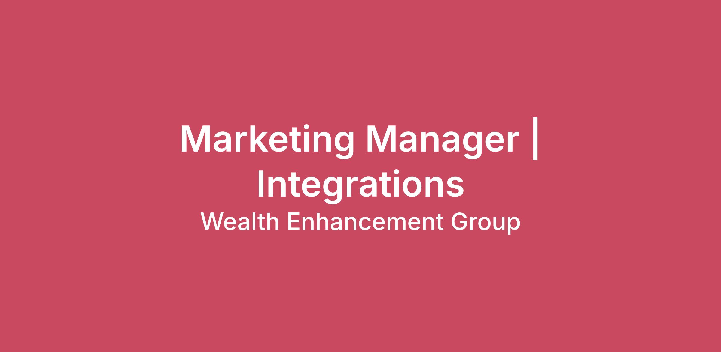 About Wealth EnhancementWealth Enhancement is an independent wealth management firm with an endless passion for enriching the lives of our clients. We continually seek to perfect our craft of personalized financial planning with our team-based Roundtable and UniFi processes that go far beyond the standard approach. We proudly provide unique financial plans and investment management services to over 80,000 households from our over 140 offices - and growing - nationwide.Since 1997, Wealth Enhancement has tirelessly raised the standard of wealth management with specialized knowledge and more attentive service that helps every client craft their future. For more information, please visit www.wealthenhancement.com.We're looking for a Marketing Manager | Integrations who will be responsible for architecting and continuously evolving the marketing integration model from signed Letter of Intent through 90+ days post-close ensuring newly acquired advisor teams transition smoothly, adopt WEG’s marketing ecosystem, and activate measurable growth early in their partnership. As Wealth Enhancement Group continues to grow through increasingly sophisticated and upmarket acquisitions, the Marketing Manager | Integrations plays a critical leadership role in translating complex M&A activity into scalable, growth-driven marketing outcomes.The Marketing Manager | Integrations currently leads a team of two onboarding project managers and operates confidently in ambiguous, high-visibility deal environments. This individual must be comfortable navigating large firms, influencing without authority, surfacing risks before they materialize, and driving clarity where precedent does not exist. Success in this role requires a bias toward action, executive presence, operational discipline, and the ability to transform one-off integrations into repeatable, scalable systems. This is a true player-coach role. While responsible for strategic oversight and model evolution, this manager must also be willing to step into day-to-day execution when deal volume or complexity requires it. Success requires close collaboration across departments and a willingness to lead from the front staying close to the work while elevating the model. In the spirit of pay transparency, we are excited to share the base salary range for this position is $115,000.00 to $130,000.00, exclusive of bonuses and benefits. This role is also eligible for our corporate bonus. We encourage you to apply and provide us with your compensation expectations when you do. We’re big on open conversations, so, let’s have one.Primary Job FunctionsStrategic Marketing Integration Leadership Serve as the marketing lead from signed LOI through 90+ days post-close, translating deal complexity into clear, actionable integration plans. Share accountability for both strategic direction and day-to-day execution across integrations. Partner with M&A, Integration, Advisor Services, Technology, and Leadership teams to align marketing strategy with broader transition objectives. Provide executive-level clarity on integration risks, readiness, and growth opportunities. Surface potential friction points early and proactively escalate where necessary. Operate effectively in ambiguous situations where prior models may not exist. Work collaboratively across teams to solve integration challenges in real time, ensuring alignment within our offerings, while minimizing exceptions where possible. Growth Acceleration & Revenue Orientation Align marketing onboarding to measurable growth outcomes — not just brand transition. Identify early-stage New Client New Money (NCNM) and Existing Client New Money (ECNM) activation opportunities. Support the development of a structured growth roadmap for each acquired firm. Identify repeatable revenue levers across integrations and formalize them into scalable playbooks. Track and report on KPIs including onboarding timelines, early marketing adoption, and growth activation milestones. Pre-Close Marketing Strategy, Assessment & Risk Framework Lead marketing diligence and readiness assessments pre‑close, partnering with M&A and Integration to shape integration strategy, resourcing, and growth expectations before APA. Assess prior marketing strategy, spend, brand positioning, client experience, digital presence, vendor dependencies, and growth potential. Help translate findings into clear risk summaries and opportunity briefs for internal stakeholders. Flag unique integration requirements early to inform resourcing, budgeting, and sequencing. Evaluate external vendor relationships and determine alignment or transition strategy. Leadership & Team Development Lead, coach, and develop two onboarding project managers to operate with increasing autonomy and accountability. Establish clear performance expectations, deadlines, and execution rigor. Lead as a true player-coach — setting direction while remaining closely engaged in integrations. Take ownership of outcomes by stepping directly into execution when needed to maintain pace and protect advisor experience. Work side-by-side with project managers during critical moments, modeling standards and decision-making in real time. Foster a culture of ownership, speed, and continuous improvement. Ensure project managers are prepared, proactive, and solution-oriented in stakeholder and team interactions. Scalable Integration Model & Operational Innovation Continuously evolve and standardize the marketing integration framework to support larger, more complex acquisitions. Build repeatable onboarding milestones, communication cadences, and integration toolkits. Identify opportunities to automate manual processes using AI and system enhancements. Improve day-to-day workflows, documentation clarity, and execution discipline to strengthen consistency across integrations. Leverage platforms such as Wrike, Salesforce, FMG Suite, and DealRoom to increase transparency and reduce friction. Create executive-level d