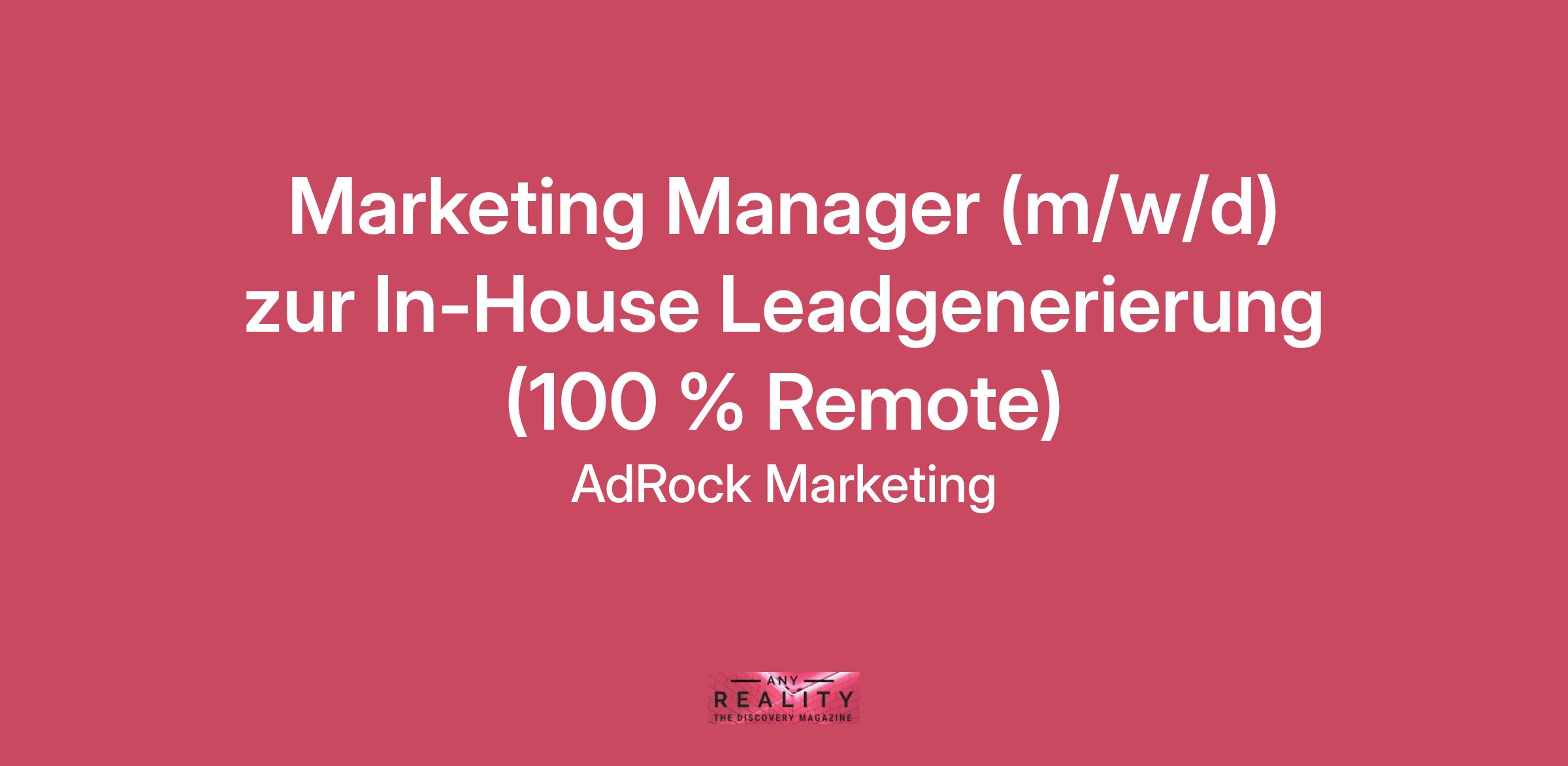 Marketing Manager (m/w/d) zur In-House Leadgenerierung (100 % Remote)