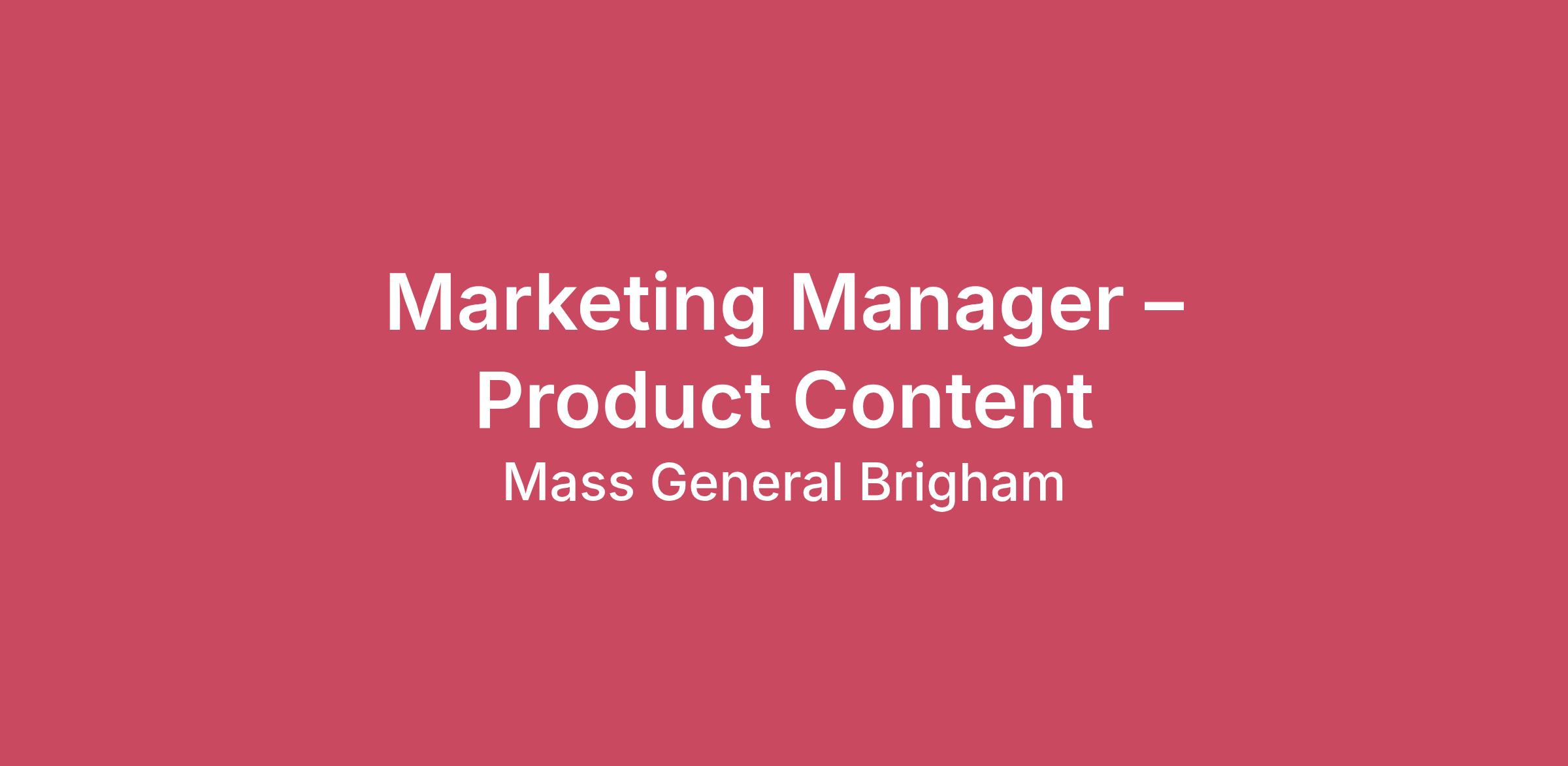 Site: Mass General Brigham Incorporated Mass General Brigham relies on a wide range of professionals, including doctors, nurses, business people, tech experts, researchers, and systems analysts to advance our mission. As a not-for-profit, we support patient care, research, teaching, and community service, striving to provide exceptional care. We believe that high-performing teams drive groundbreaking medical discoveries and invite all applicants to join us and experience what it means to be part of Mass General Brigham. Job SummaryThe Marketing Manager – Product Content supports all aspects of editorial production for digital content supporting Mass General Brigham’s marketing and communications, with a specific focus on website content. This role involves developing, editing, optimizing, and distributing service line content targeting patients, consumers, and referring providers to drive acquisition, growth, and brand awareness. The ideal candidate will have expertise in SEO, user experience, audience engagement, and content marketing, along with a strong understanding of how content fulfills audience needs and informs data-driven decisions.This individual is a proactive, detail-oriented, adaptable, and data-driven problem solver who thrives in a fast-paced environment. They collaborate with cross-functional teams to ensure alignment on project interdependencies and timely delivery of digital content for prioritized initiatives and service lines. This position requires strong leadership skills and the ability to manage complex projects from inception to completion.Reporting to the Sr. Marketing Manager, Product Content, this individual helps direct editorial processes, executes the editorial calendar, and coordinates the distribution of service line content across Mass General Brigham’s digital channels.Working closely with marketing, clinical, research, educational, and administrative teams, the Marketing Manager – Product Content ensures digital properties effectively communicate marketing priorities, support organizational goals, and accurately represent the brand. QualificationsEducationBachelor's Degree in a related field of study requiredEquivalent experience may be accepted in lieu of degreeExperience5+ years of related experience requiredKnowledge, Skills and AbilitiesStrong interpersonal and communication skills, including superior writing and editing skillsOutstanding oral and written communicationFamiliarity with digital content creation toolsFamiliarity with SEO writing and plain language writing, health literacy, and/or writing at different grade levels for different audiencesExperience with digital content creation toolsExperience with digital analytics toolsProven professional, able to work effectively with a variety of personality types and job levelsAbility to move quickly in a constantly evolving and often ambiguous environmentStrong attention to detail and qualityProven initiative, self-directionCommitted to teamwork and collaborationSound judgment and decision-makingHigh levels of tact, diplomacy, and fine-tuned consultative skillsConfident and comfortable working within a matrixed organizationAbility to manage multiple projects simultaneously and meet deadlinesAbility to interact with professionals at all levels throughout a large, diverse health care organizationWorking knowledge of MS Office applications, including Outlook, Word, PowerPoint and ExcelPositive, can-do attitudeDigitally savvy Additional Job Details (if applicable) Remote TypeRemote Work Location399 Revolution Drive Scheduled Weekly Hours40 Employee TypeRegular Work ShiftDay (United States of America) Pay Range$79,560.00 - $115,720.80/Annual Grade7 At Mass General Brigham, we believe in recognizing and rewarding the unique value each team member brings to our organization. Our approach to determining base pay is comprehensive, and any offer extended will take into account your skills, relevant experience if applicable, education, certifications and other essential factors. The base pay information provided offers an estimate based on the minimum job qualifications; however, it does not encompass all elements contributing to your total compensation package. In addition to competitive base pay, we offer comprehensive benefits, career advancement opportunities, differentials, premiums and bonuses as applicable and recognition programs designed to celebrate your contributions and support your professional growth. We invite you to apply, and our Talent Acquisition team will provide an overview of your potential compensation and benefits package. EEO Statement:0100 Mass General Brigham Incorporated is an Equal Opportunity Employer. All qualified applicants will receive consideration for employment without regard to race, color, religious creed, national origin, sex, age, gender identity, disability, sexual orientation, military service, genetic information, and/or other status protected under law. We will ensure that all individuals with a disability are provided a reasonable accommodation to participate in the job application or interview process, to perform essential job functions, and to receive other benefits and privileges of employment. To ensure reasonable accommodation for individuals protected by Section 503 of the Rehabilitation Act of 1973, the Vietnam Veteran’s Readjustment Act of 1974, and Title I of the Americans with Disabilities Act of 1990, applicants who require accommodation in the job application process may contact Human Resources at (857)-282-7642. Mass General Brigham Competency FrameworkAt Mass General Brigham, our competency framework defines what effective leadership “looks like” by specifying which behaviors are most critical for successful performance at each job level. The framework is comprised of ten competencies (half People-Focused, half Performance-Focused) and are defined by observable and measurable skills and behaviors that contribute to workplace effective