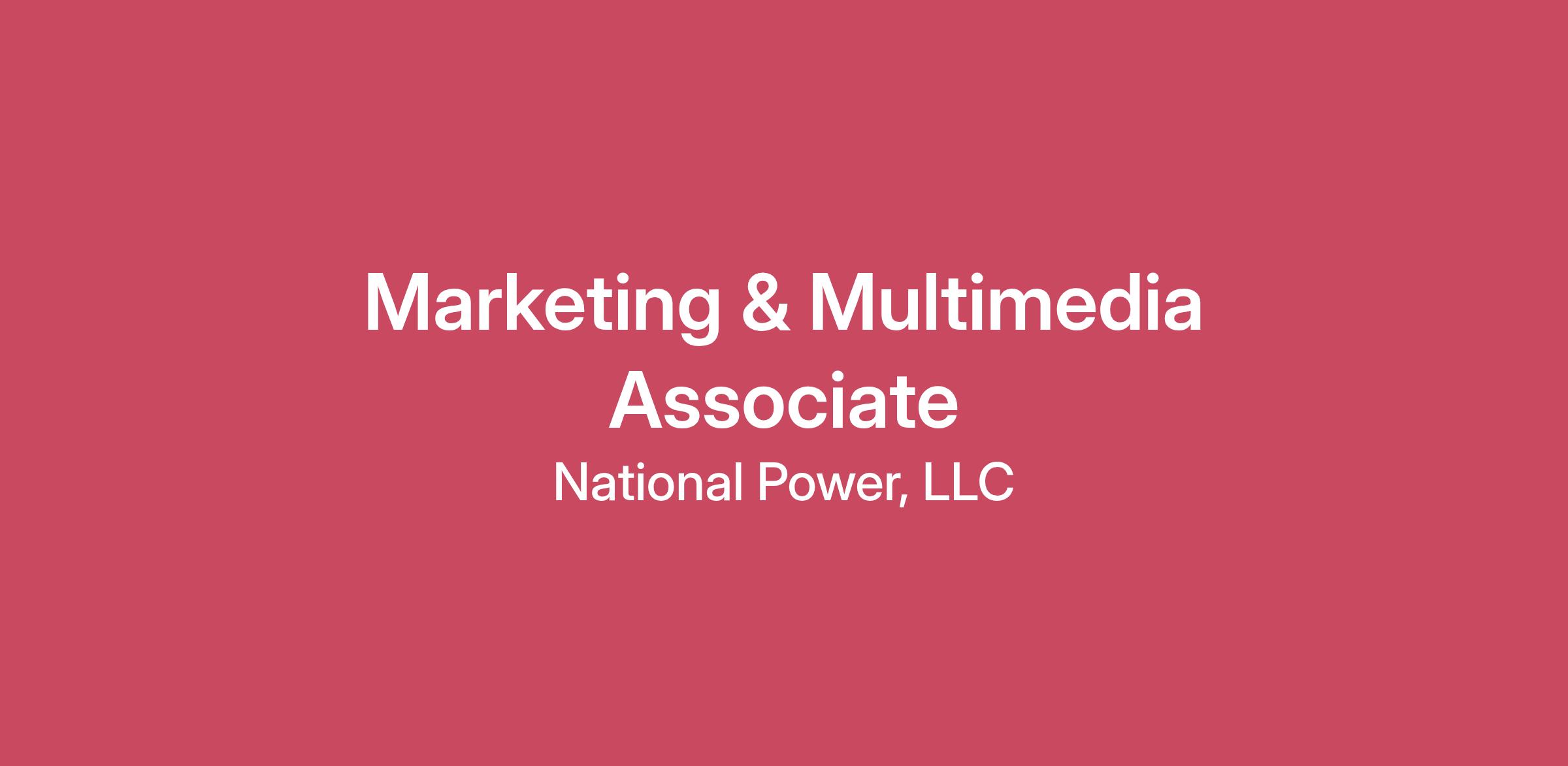 Summary:National Power, LLC is actively seeking a Marketing & Multimedia Associate for our Data Centers Solutions division. Under the general direction of and reporting to VP, Data Centers, you'll be primarily responsible for developing and executing marketing strategies, creating compelling multimedia content, and supporting our brand presence in the data center and sustainable energy markets. This role requires a creative professional with strong marketing fundamentals who can produce high-quality content across multiple channels including digital media, trade shows, and corporate communications.This position is based in the Raleigh-Durham area (RDU). The role includes travel of 30-50% to trade shows and industry events across the 48 contiguous states, where you'll represent our brand, capture content, and engage with customers and partners. Experience in the power/energy sector and a passion for sustainability and green technologies are highly valued.Essential Duties and Responsibilities: Core duties and responsibilities include the following. Other duties may be assigned.Develop and implement comprehensive marketing strategies for the Data Centers Solutions divisionCreate engaging multimedia content including videos, graphics, photography, and written materials for various platformsManage social media presence and digital marketing campaigns across multiple channelsPlan and execute trade show presence, including booth design, materials preparation, and on-site representationTravel to trade shows and industry events (30-50%) to capture content, network, and represent the companyProduce case studies, white papers, blog posts, and other thought leadership contentCollaborate with sales team to develop marketing materials, presentations, and proposalsManage company website content and ensure brand consistency across all platformsAnalyze marketing metrics and campaign performance to optimize strategiesSupport internal communications and employee engagement initiativesStay current on industry trends, sustainability initiatives, and competitive landscapeCoordinate with external vendors, agencies, and partners as neededEducation & Requirements:Bachelor's degree in Marketing, Communications, Multimedia, or related field preferred.1-3 years of marketing experience minimum, with demonstrated success in content creation and campaign execution.Experience or strong interest in power generation, renewable energy, or sustainability sectors preferred.Proficiency in Adobe Creative Suite (Photoshop, Illustrator, Premiere Pro, etc.) or similar tools.Strong photography and videography skills with portfolio demonstrating multimedia capabilities.Experience with social media management, email marketing platforms, and analytics tools.Excellent written and verbal communication skills.Ability to manage multiple projects simultaneously and meet deadlines.Compensation and Benefits:Three weeks of paid vacation after 90 days (first year is pro-rated based on start date)Up to 9 paid company holidaysPaid sick timeCompany-paid Life Insurance ($75,000)Company-paid Short-term and Long-term Disability InsuranceMedical, Dental, and Vision Insurance: Offering four medical plan options, with one plan fully covered at 100% by the company.401(k) retirement savings plan with company matchingHealth Savings Account (HSA)Flexible Spending Accounts (FSA)Additional Info:Criminal background check and pre-employment drug screen are required.This is a remote position and will require the employee to work from home.Equal Opportunity Employer:National Power, LLC is an Equal Opportunity Employer and VEVRAA federal contractor. National Power affords equal opportunity to all applicants for all positions without regard to race, color, religion, gender, national origin, age, disability, veteran status, gender identity or any other status protected under local, state or federal laws.